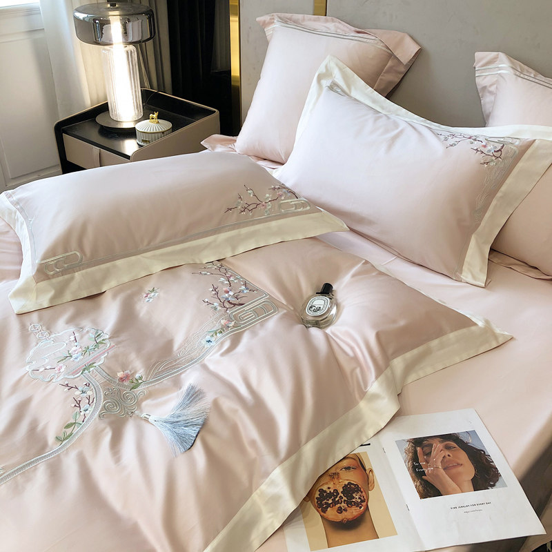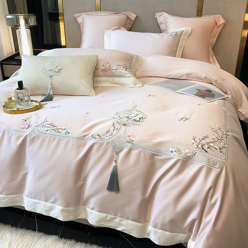 Хлопковый комплект, хлопковое одеяло, пододеяльник, покрывало, китайский стиль, 140 шт, 4 предмета, с вышивкой