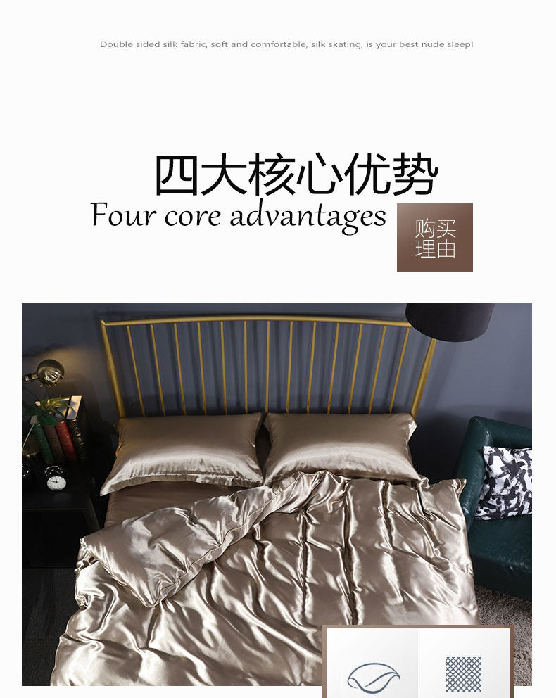 Шелковый комплект, пододеяльник, простыня, двусторонная наволочка, 4 предмета, делается под заказ