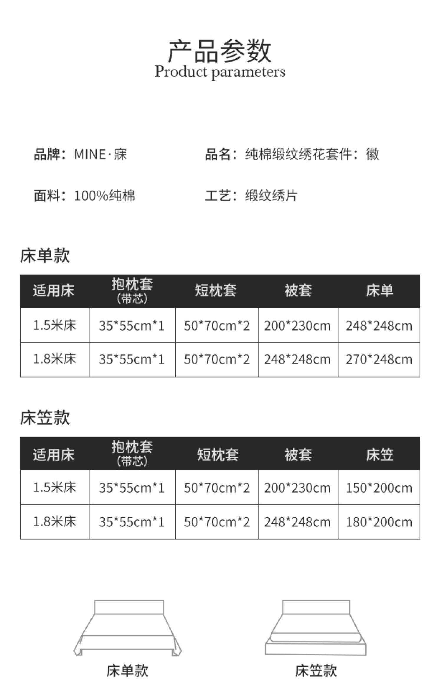 | Ширина кровати: | Пододеяльник, простыня, подушка, 1.5м, 200×230см, Пододеяльник, простыня, подушка, 1.5м, 200×230см, Пододеяльник, простыня, подушка, 1.8м, 248×248см, Пододеяльник, простыня, подушка, 1.8м, 248×248см |