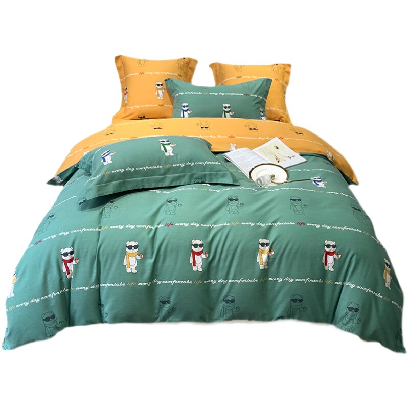 Хлопковый экологичный комплект, демисезонное удерживающее тепло хлопковое одеяло, пододеяльник, мультяшная простыня, 4 предмета, увеличенная толщина, 1.8м