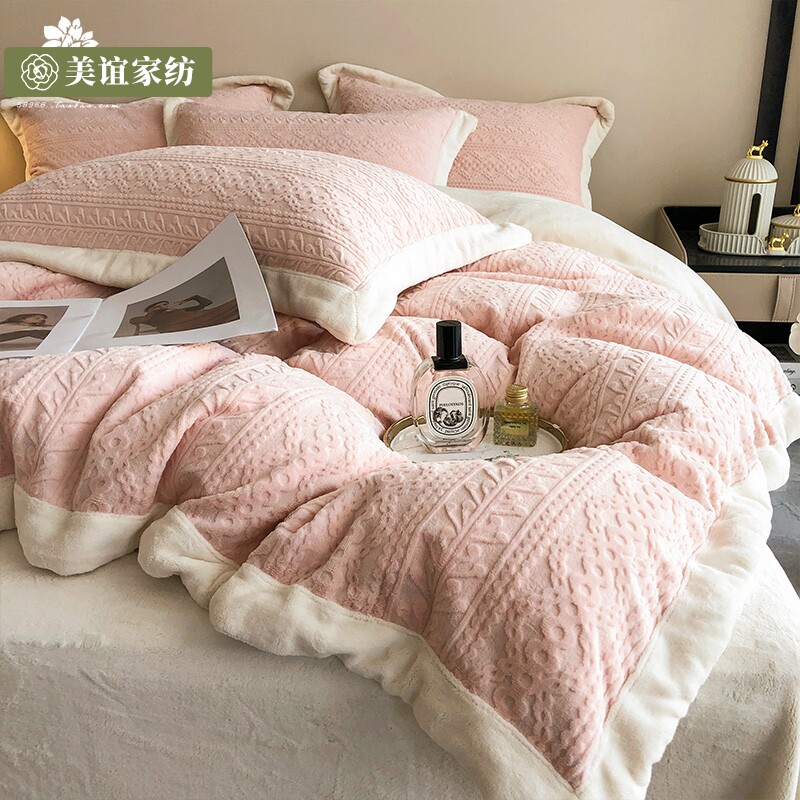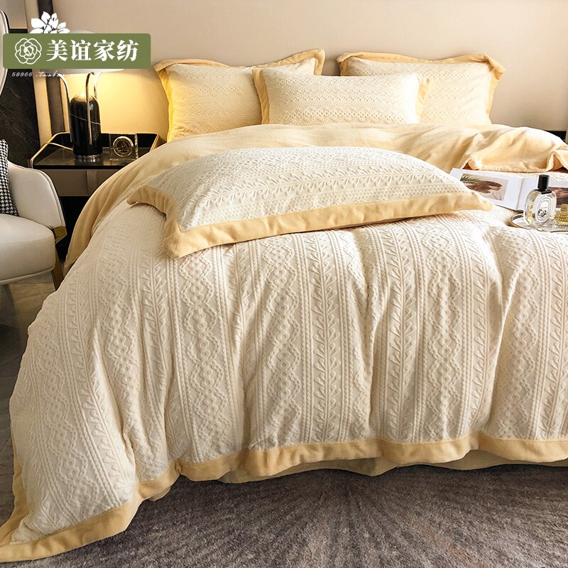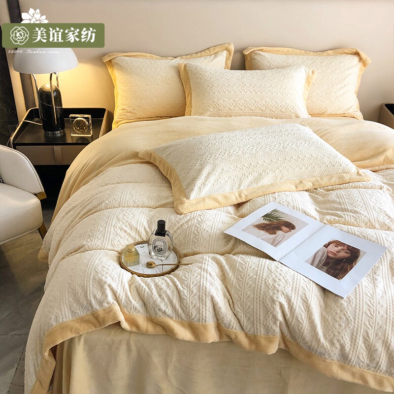 Японский бархатный зимний коралловый комплект, удерживающий тепло комфортный пододеяльник, джинсы с начесом, бархатное покрывало, 4 предмета