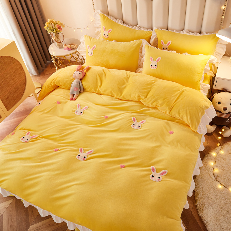 Зимние коралловые бархатные джинсы с начесом, фланелевое покрывало, комплект, 4 предмета, коллекция 2023