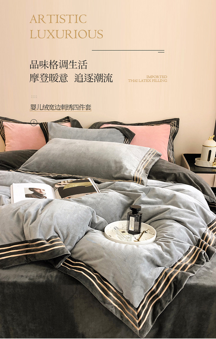 Демисезонный двусторонний коралловый удерживающий тепло комплект, простыня, покрывало, легкий роскошный стиль, 4 предмета