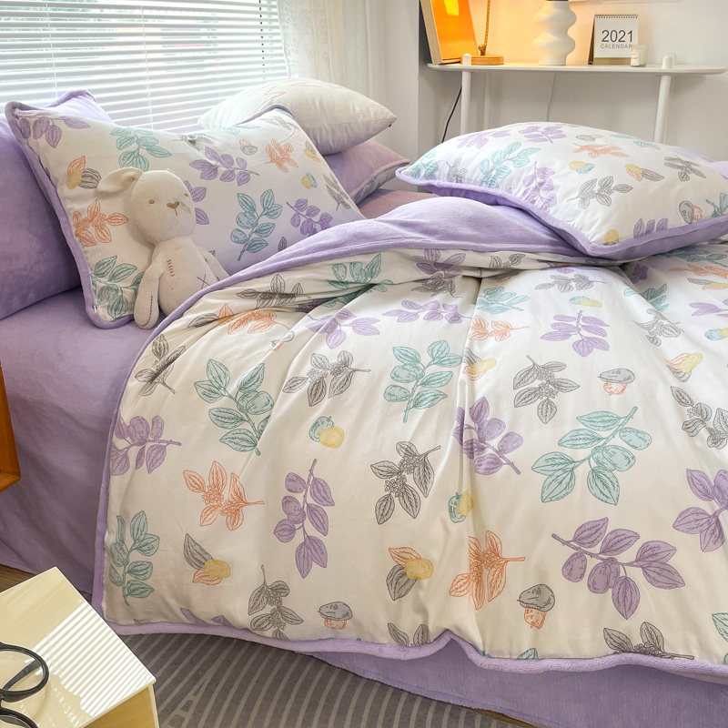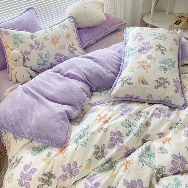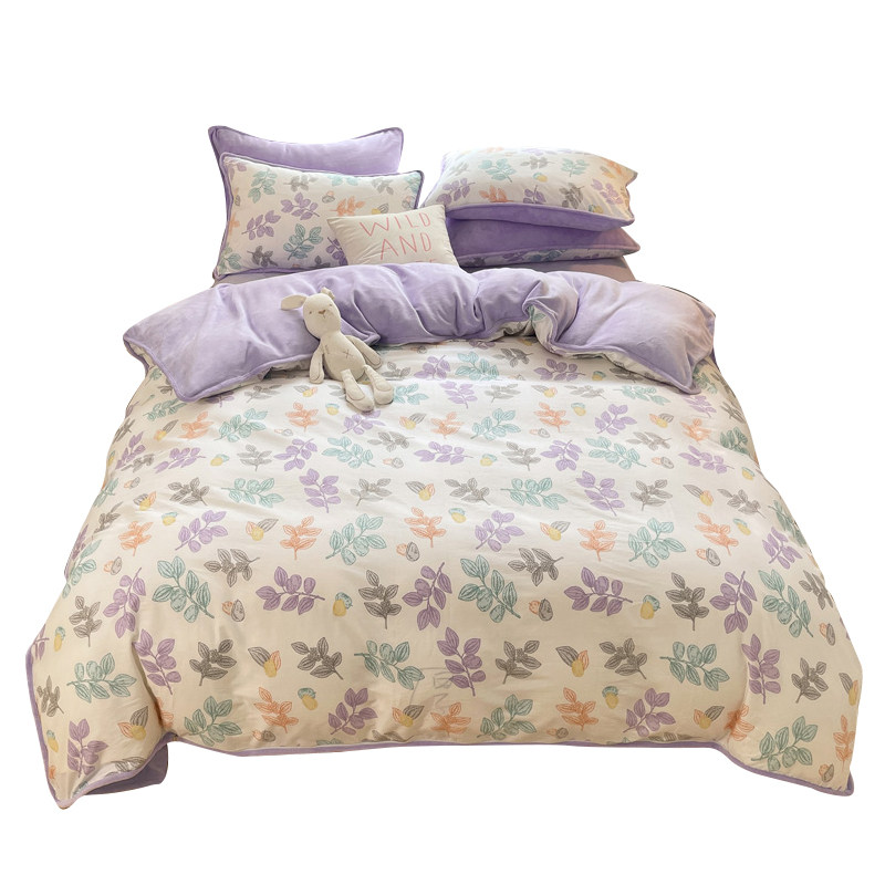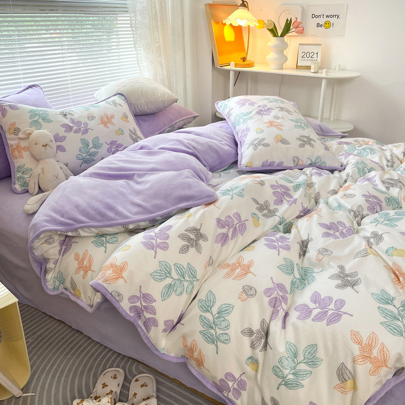 Бархатные джинсы с начесом, хлопковый коралловый комплект, флисовый бархатный зимний пододеяльник, простыня, 4 предмета, 3 предмета