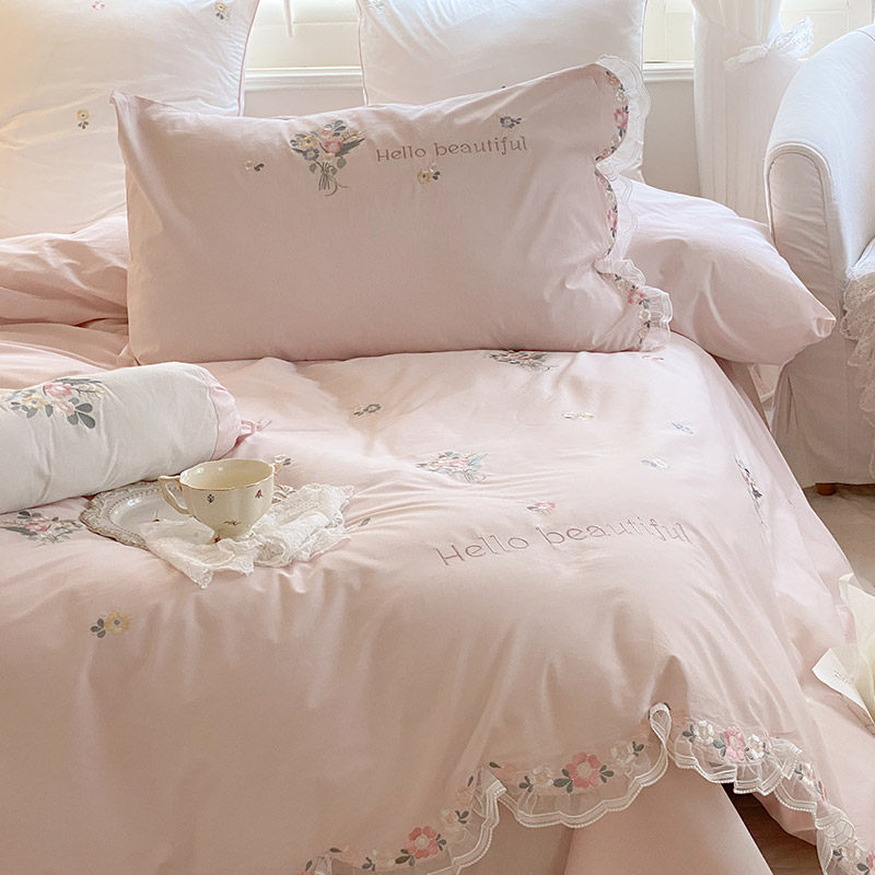Демисезонный свежий хлопковый комплект, пододеяльник, простыня, покрывало, 80 шт, 4 предмета, с вышивкой, увеличенная толщина