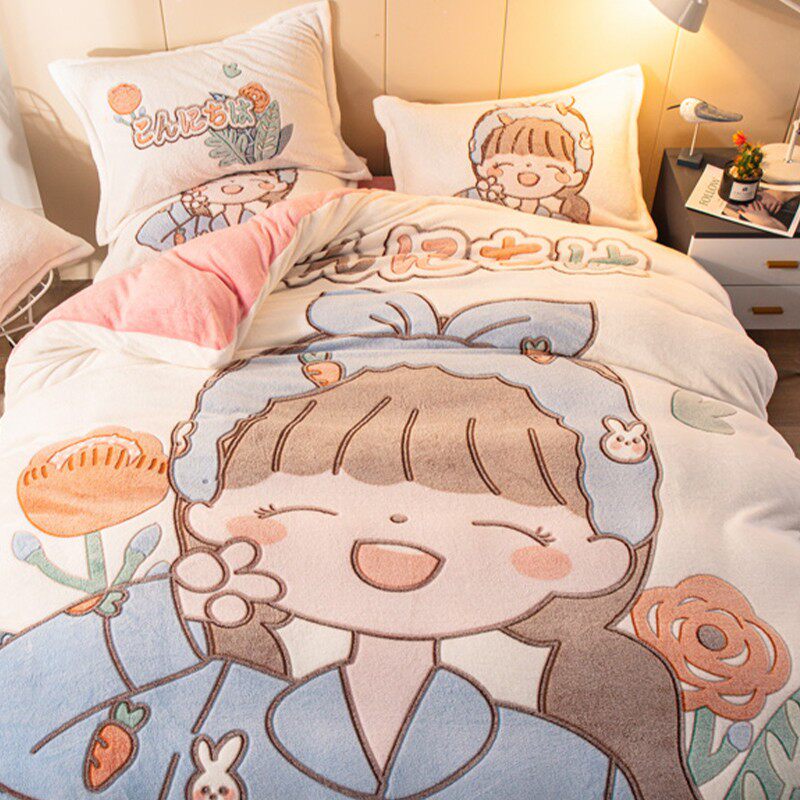 Демисезонный трехмерный удерживающий тепло комплект, двусторонний утепленный коралловый пододеяльник, со снежинками, 4 предмета