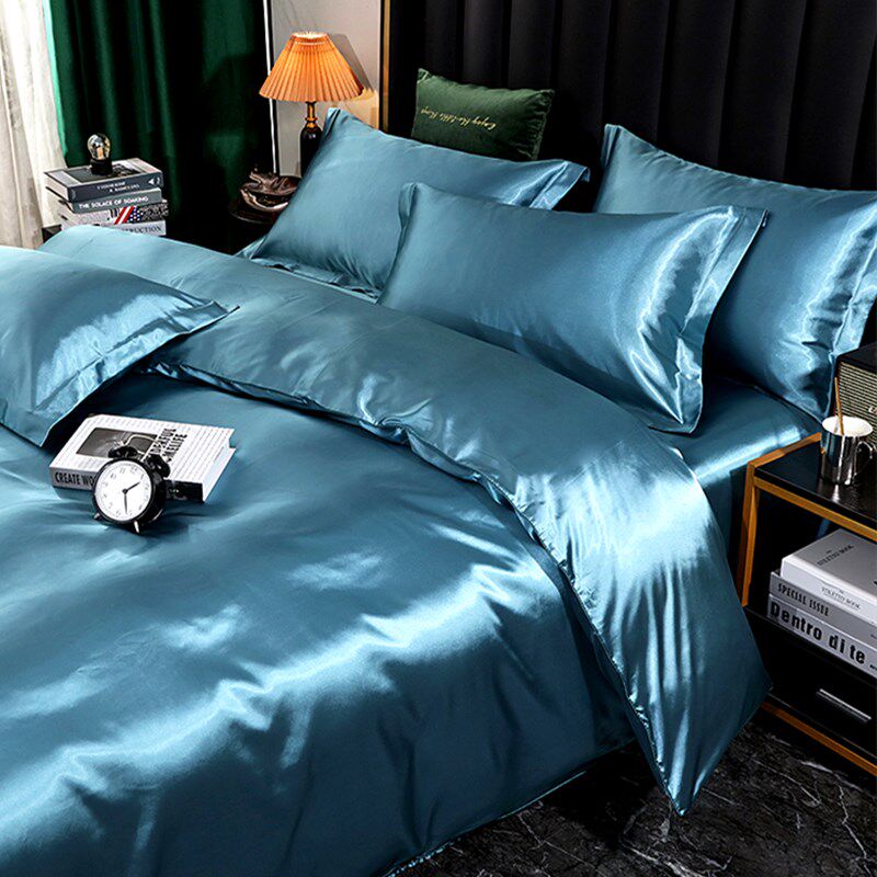 Шелковый комплект, пододеяльник, шелковая простыня, шелковистая кровать, покрывало, 4 предмета