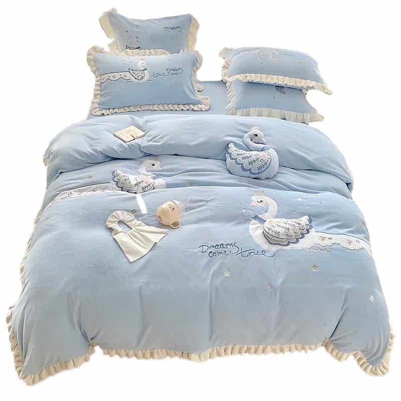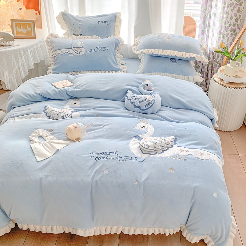 Демисезонная флисовая коралловая простыня, пододеяльник, детский комплект, покрывало, 300G, 4 предмета
