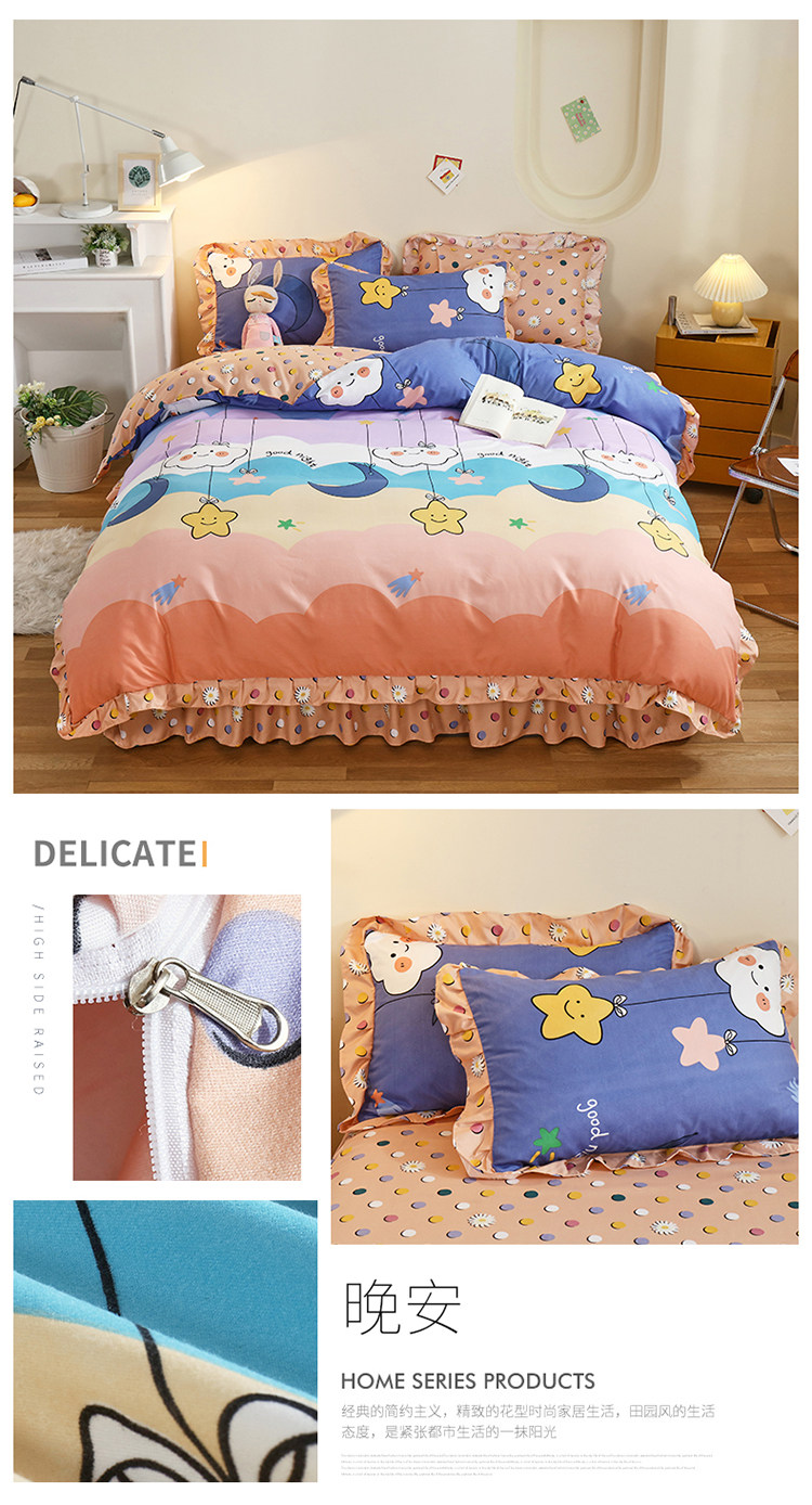 Комплект для принцессы, простыня, хлопковый пододеяльник, зимнее покрывало, увеличенная толщина, 4 предмета, 3 предмета