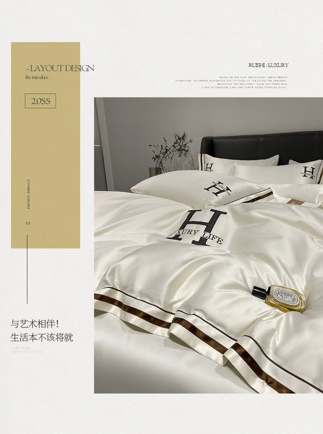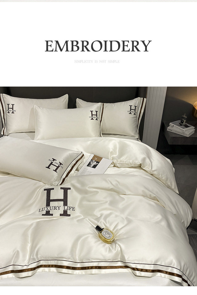 Шелковый шелковистый комплект, кровать, шелковая простыня, летний пододеяльник, 4 предмета, европейский стиль, легкий роскошный стиль, изысканный стиль