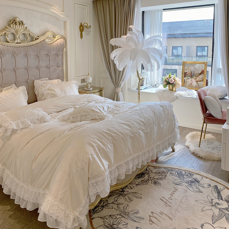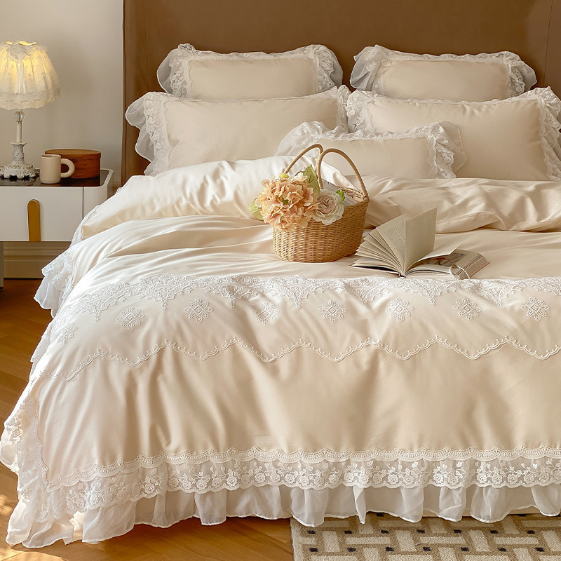 Хлопковый комплект, покрывало, пододеяльник, простыня, 140 шт, 4 предмета, французский стиль