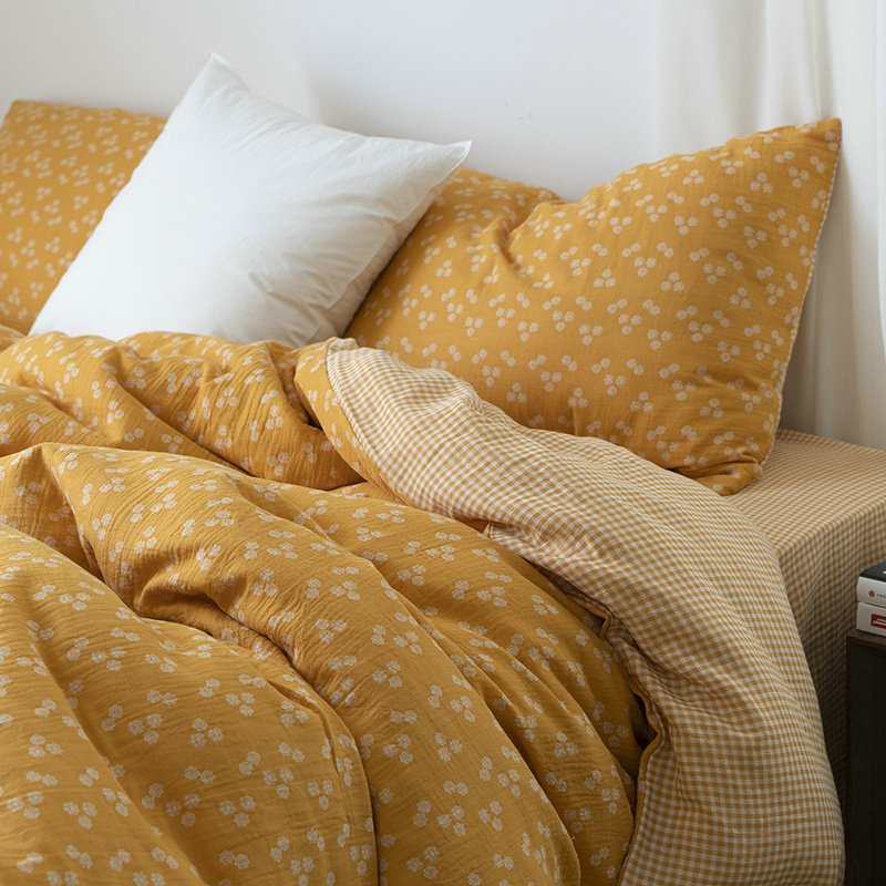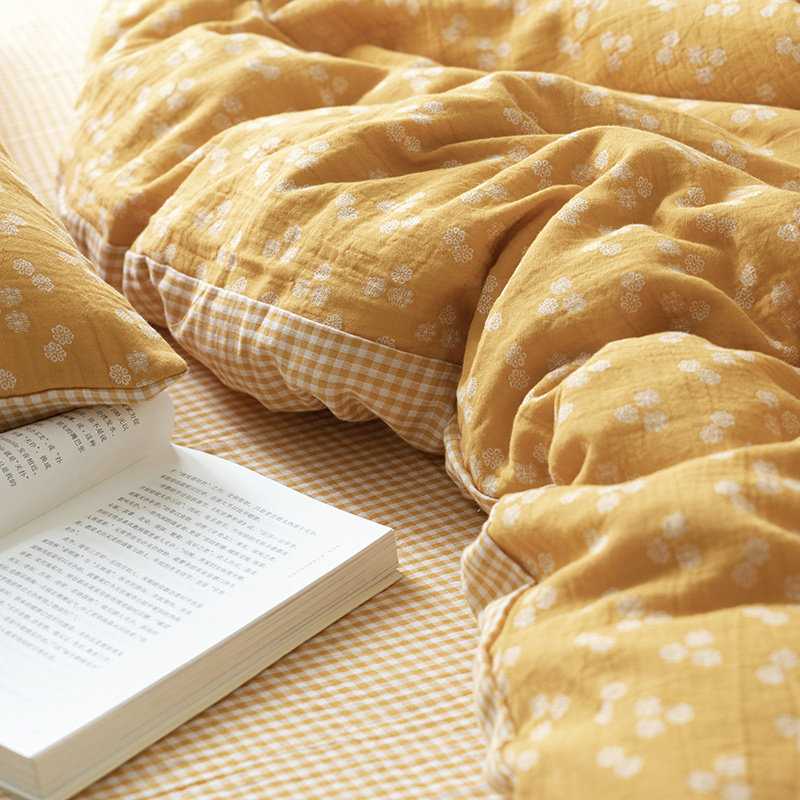 Хлопковый двухэтажный марлевый комплект, кровать, простыня, пододеяльник, ретро покрывало, 4 предмета