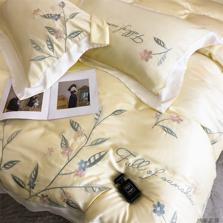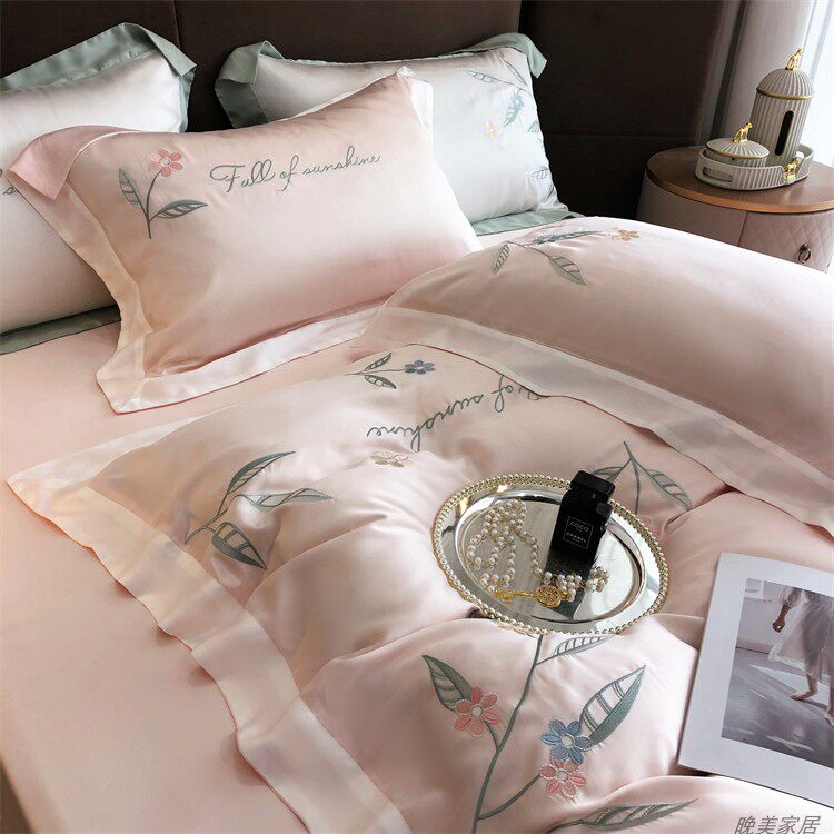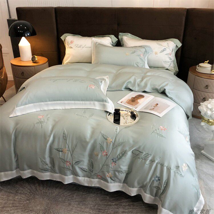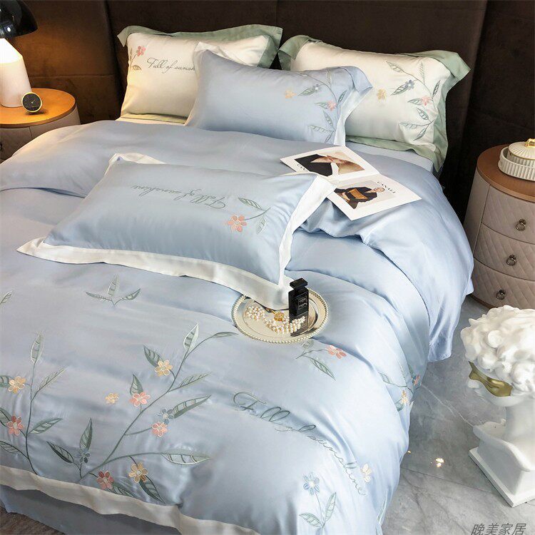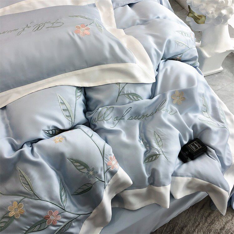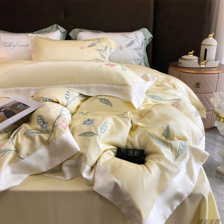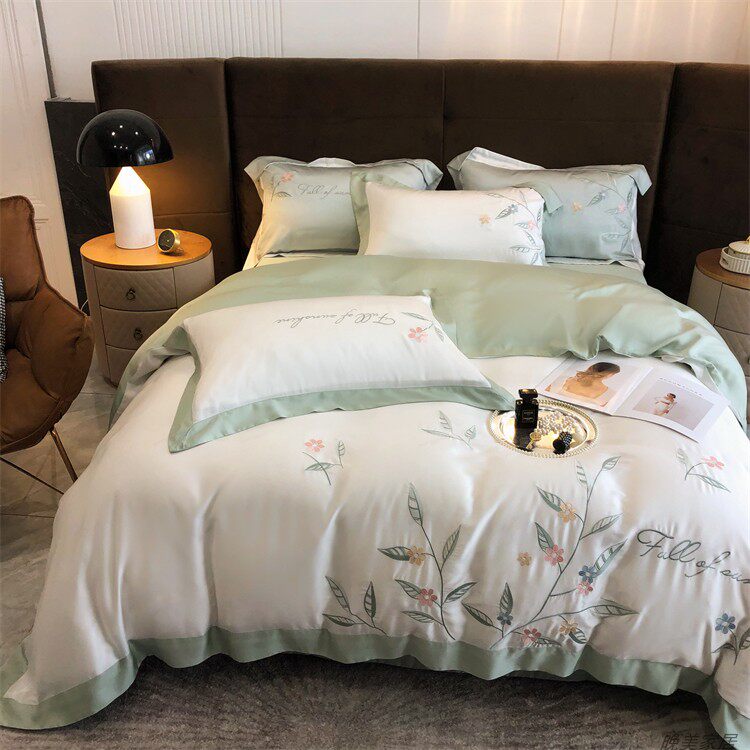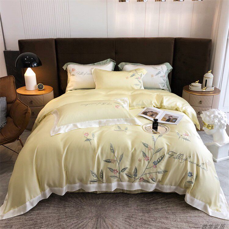 Комплект, шелковистый пододеяльник, простыня, покрывало, простой и элегантный дизайн, 100 шт, 4 предмета
