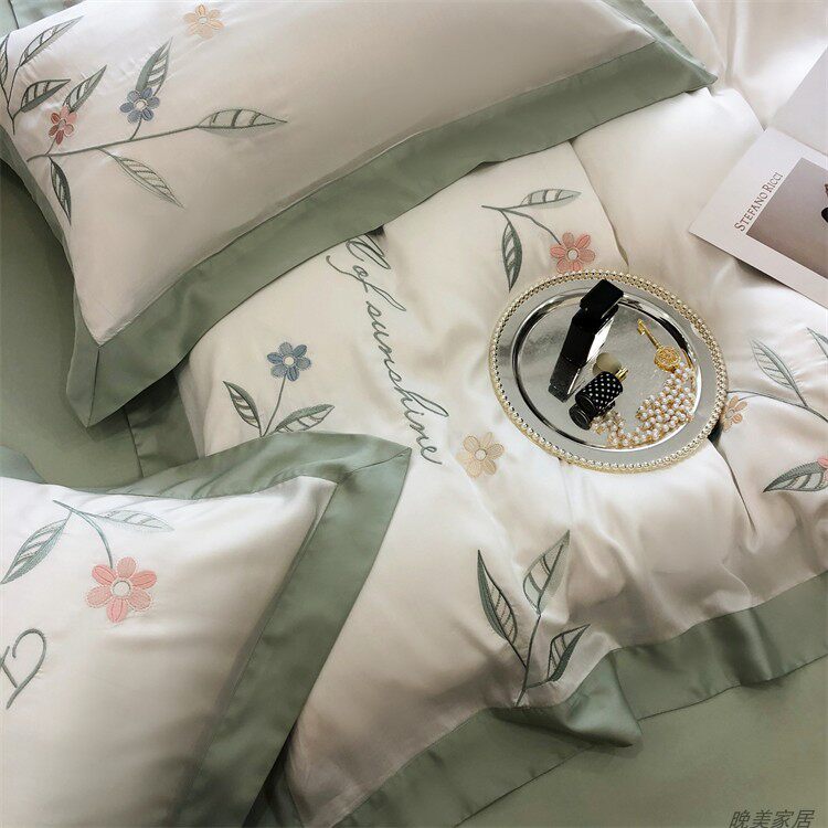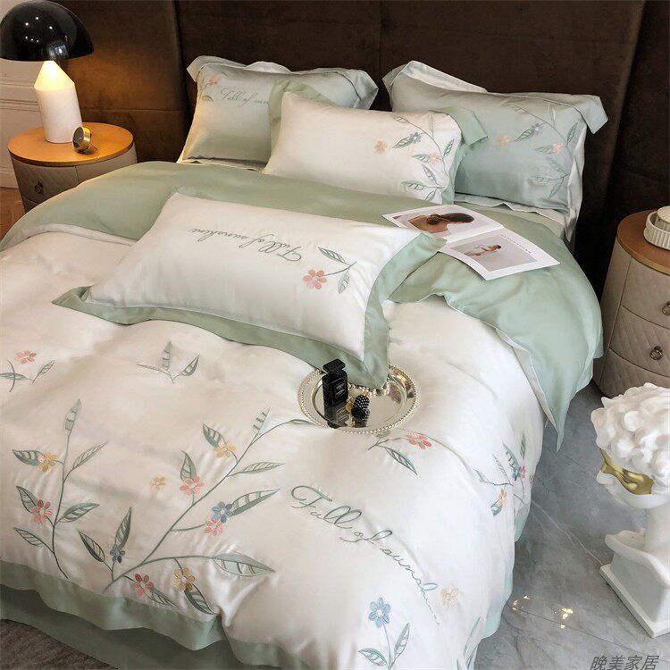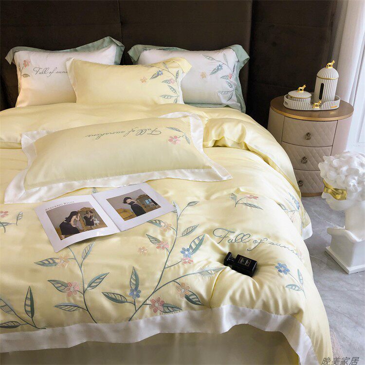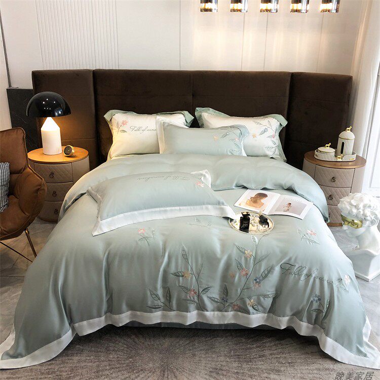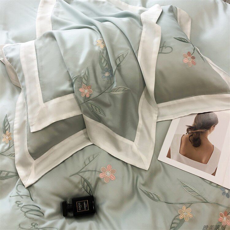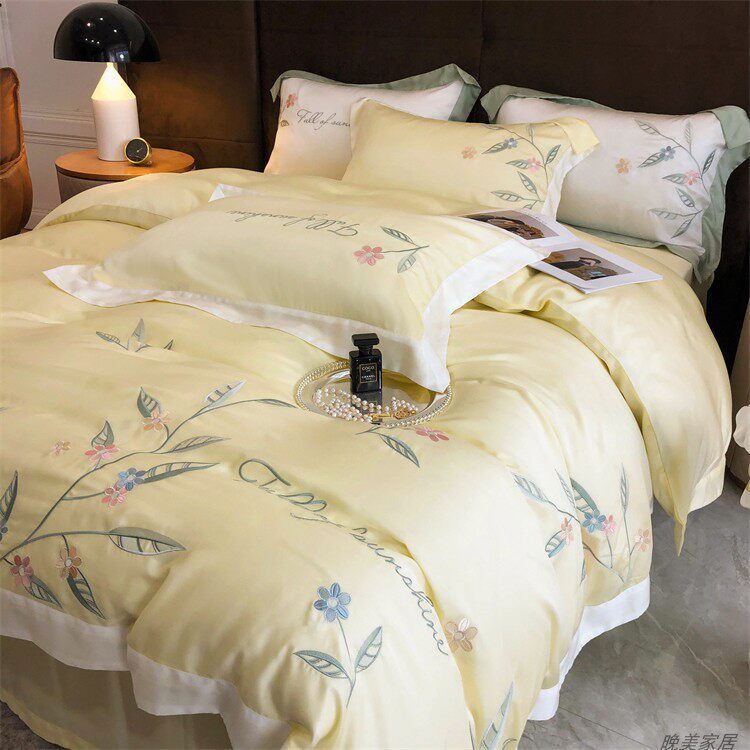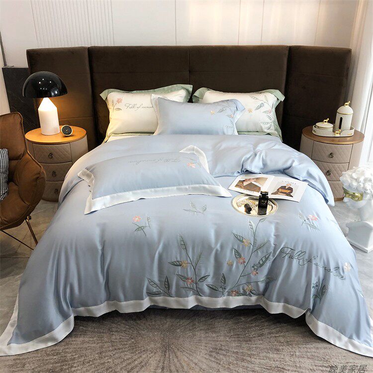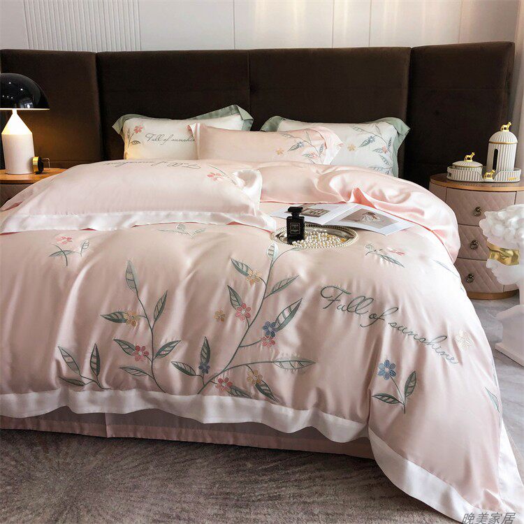 Комплект, шелковистый пододеяльник, простыня, покрывало, простой и элегантный дизайн, 100 шт, 4 предмета