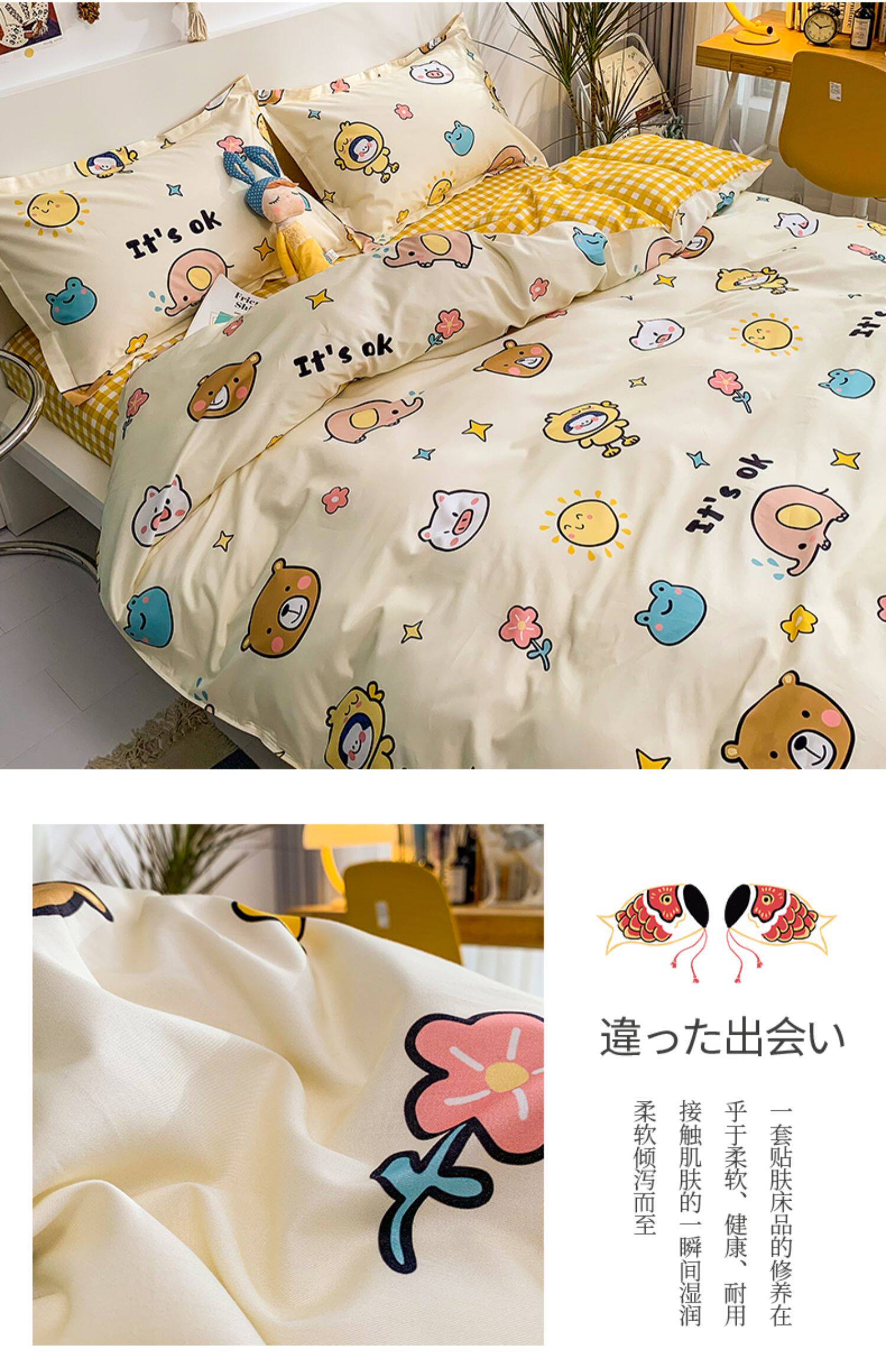 Брендовый хлопковый комплект, мультяшная простыня, пододеяльник для школьников, 4 предмета, постельные принадлежности, 3 предмета