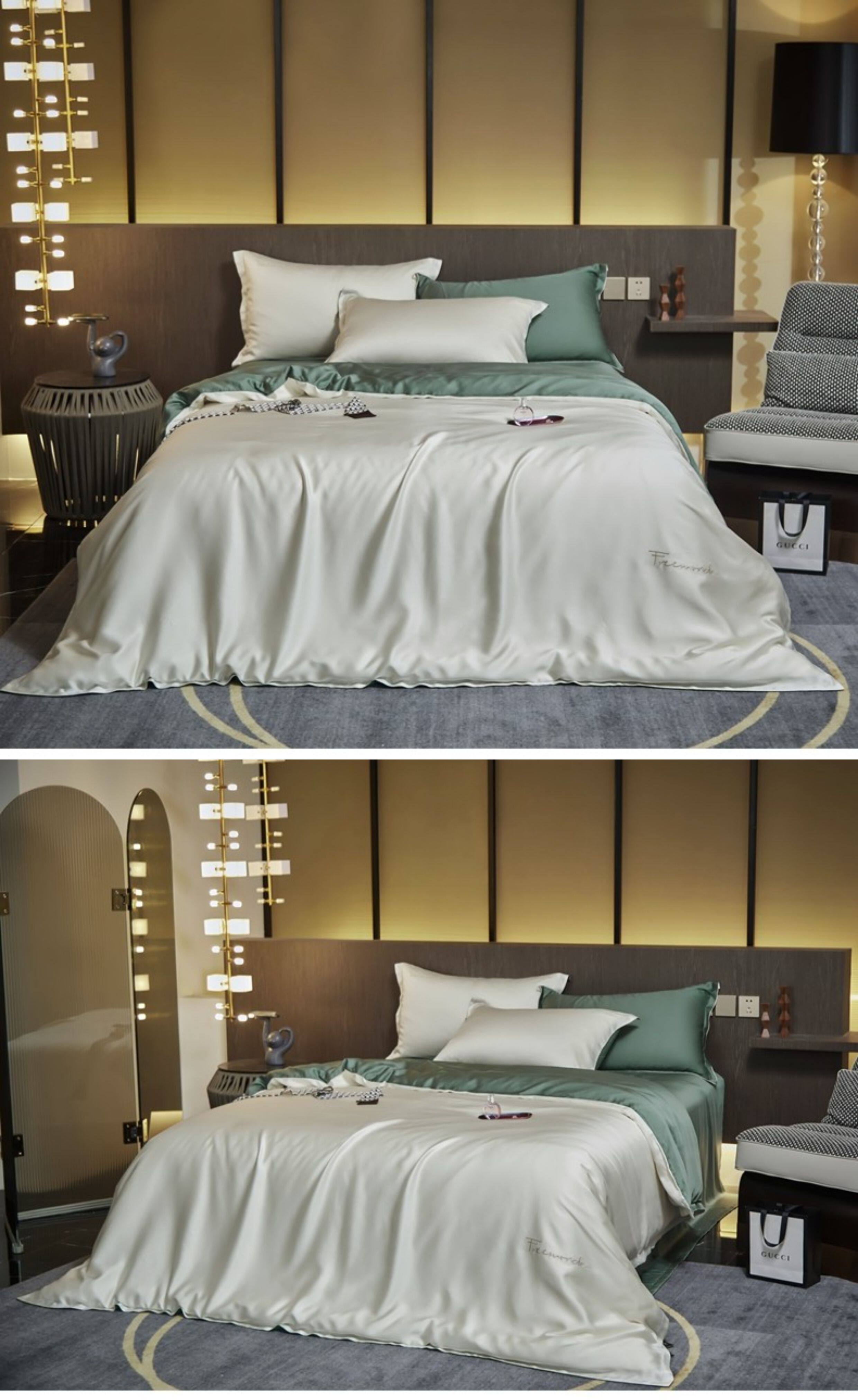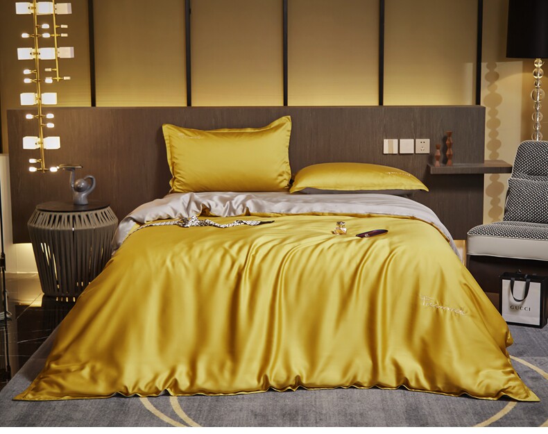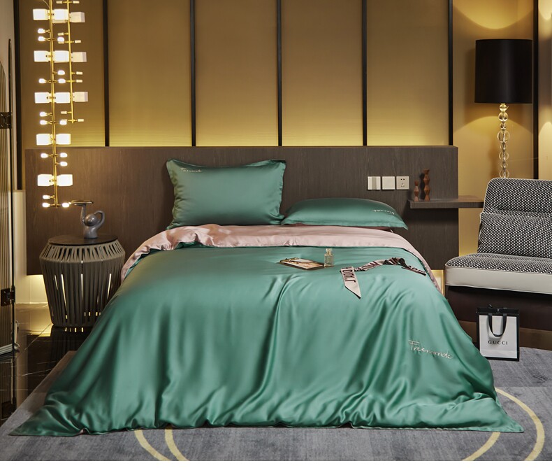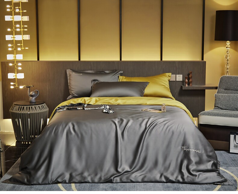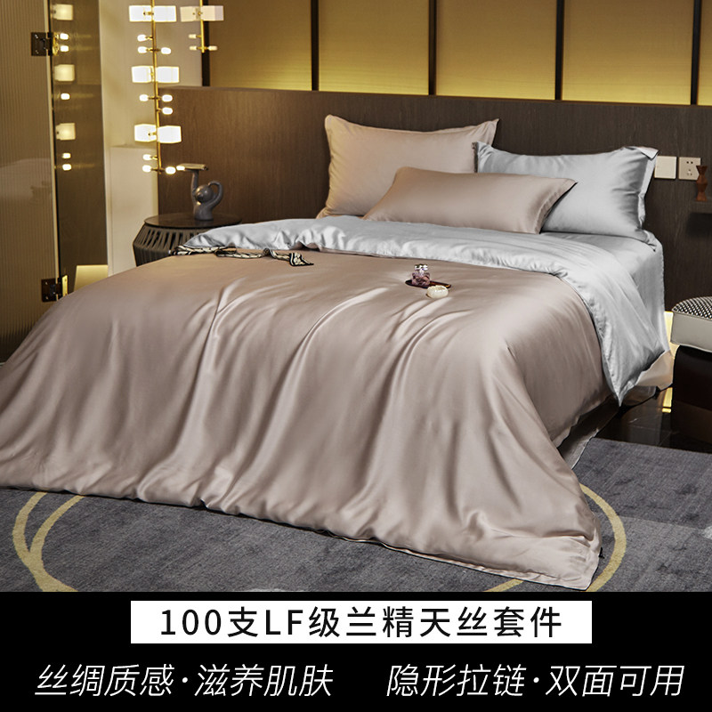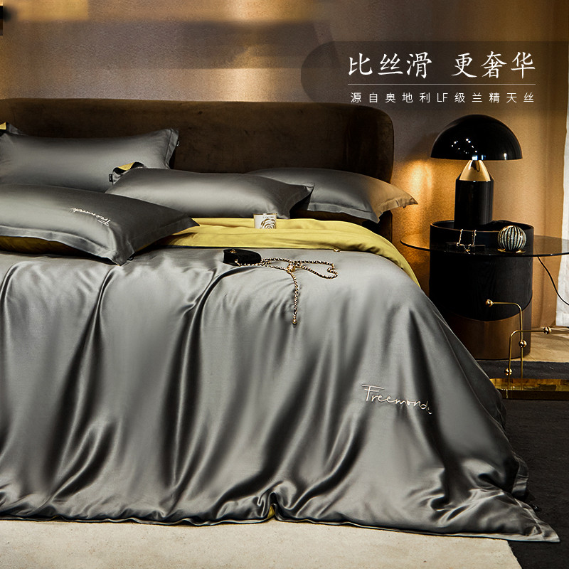 无印良品 Летний комплект, кровать, простыня, шелковый шелковистый пододеяльник, постельные принадлежности, 4 предмета, 100 шт, европейский стиль