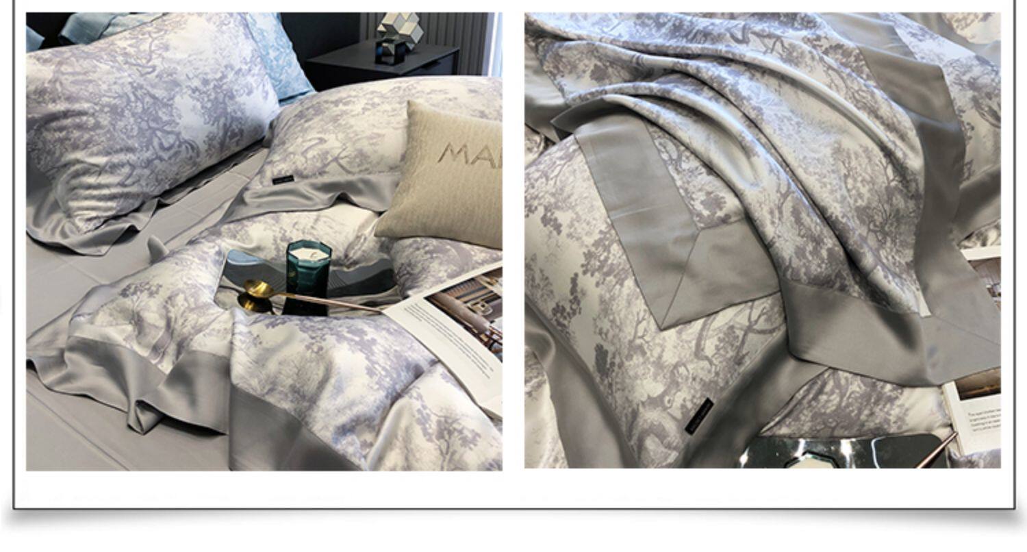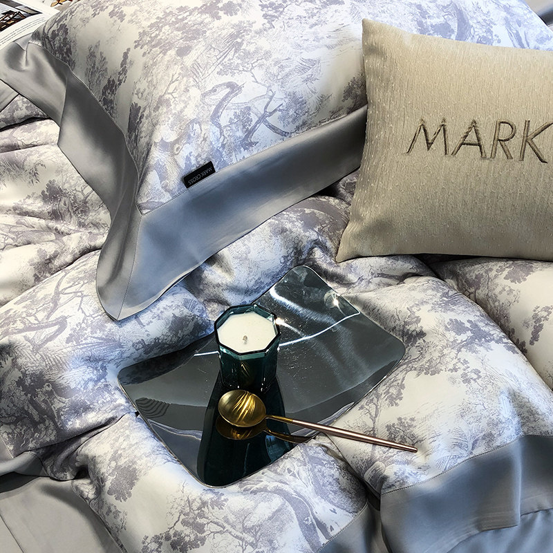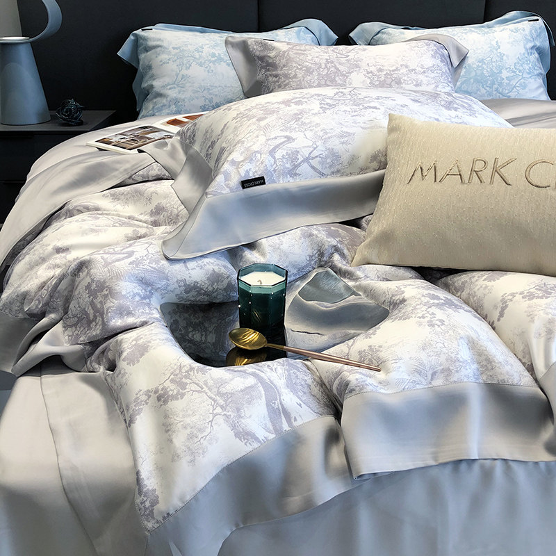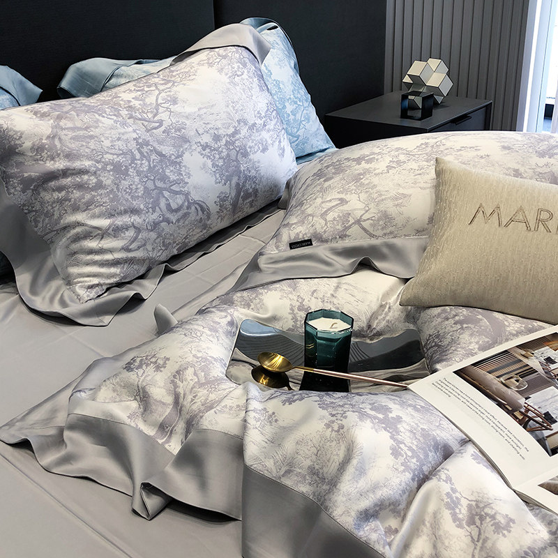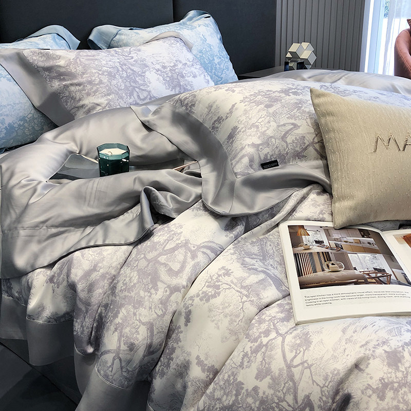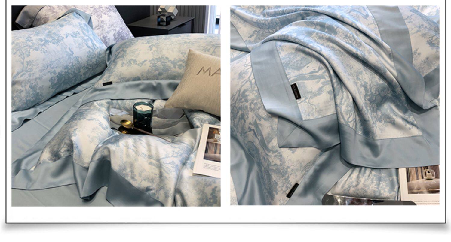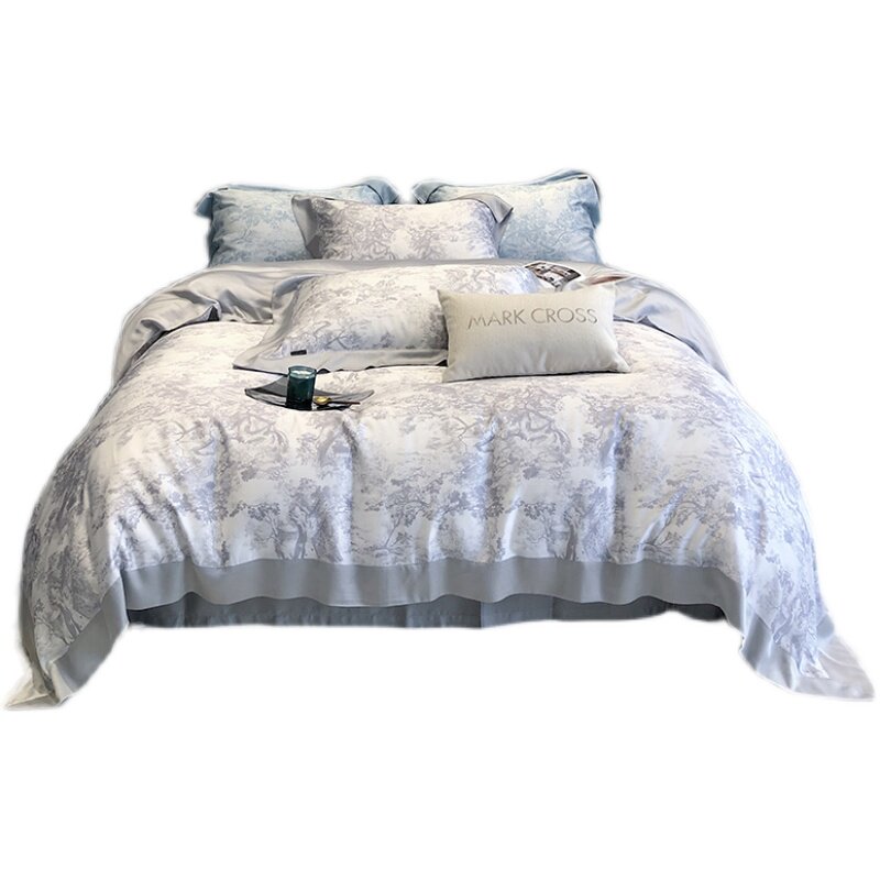 Ретро импортный шелковый комплект, шелковистый летний пододеяльник, кровать, простыня, покрывало, французский стиль, 4 предмета