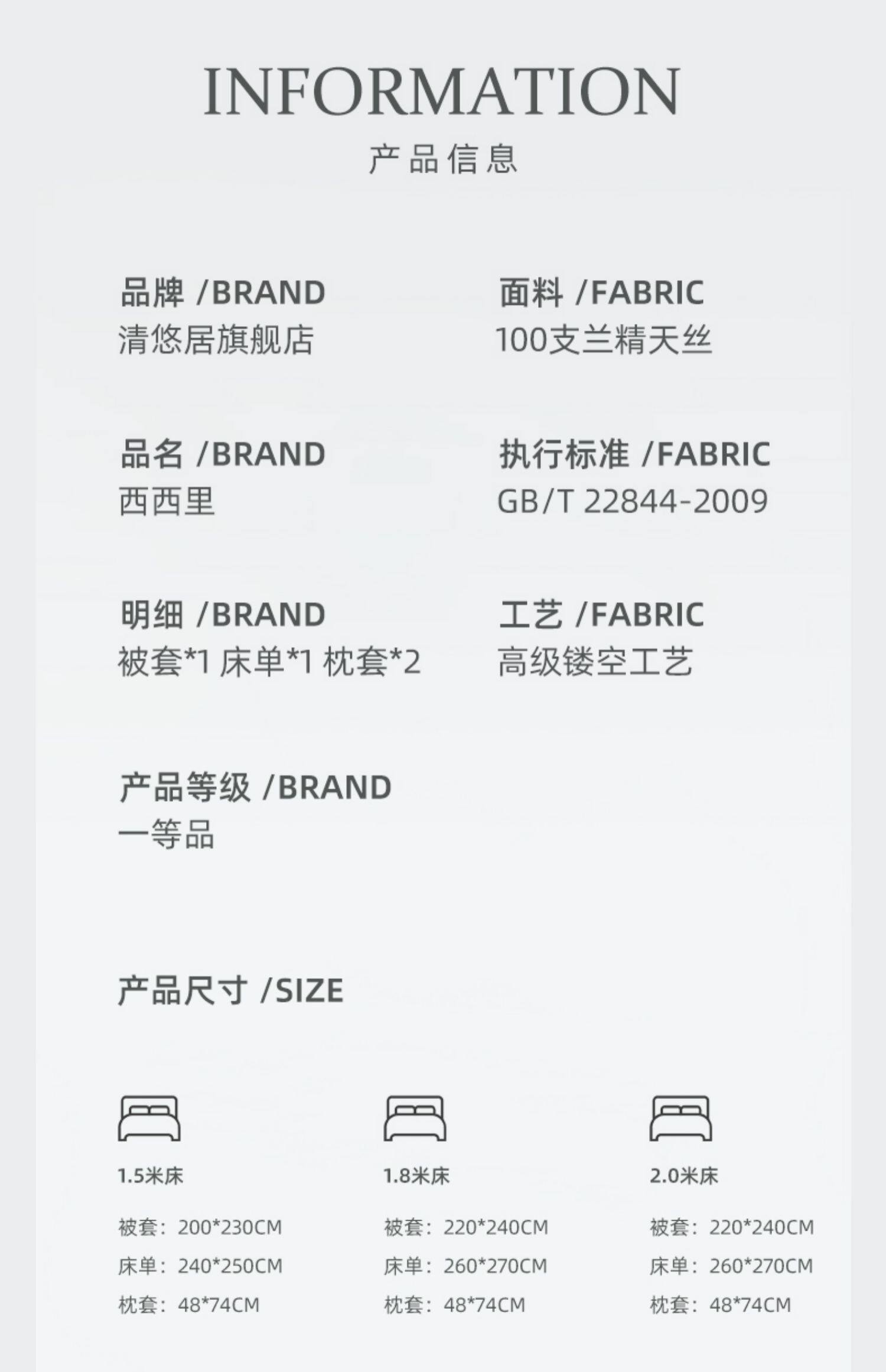- Подходит для 2,0 -метровых кроватей, рекомендуется носить ядро стеганого одеяла 220*240 см.
