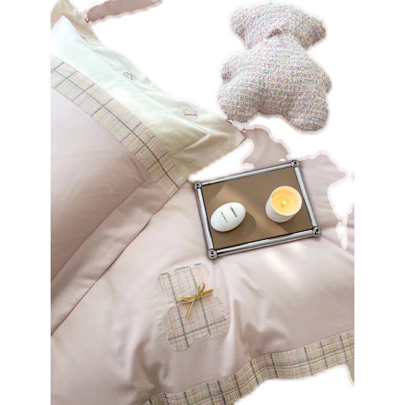 Комплект из четырех предметов с вышивкой из хлопка пима, высокая плотность и плотность, легкий роскошный стиль