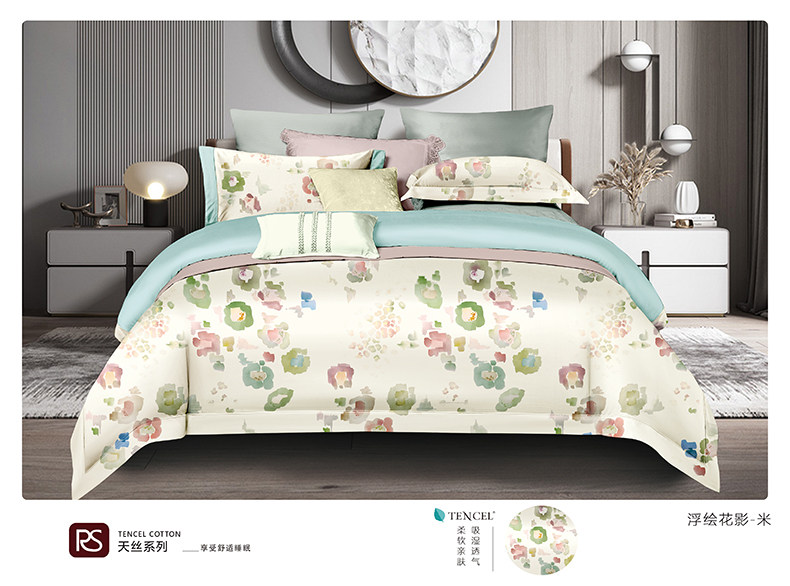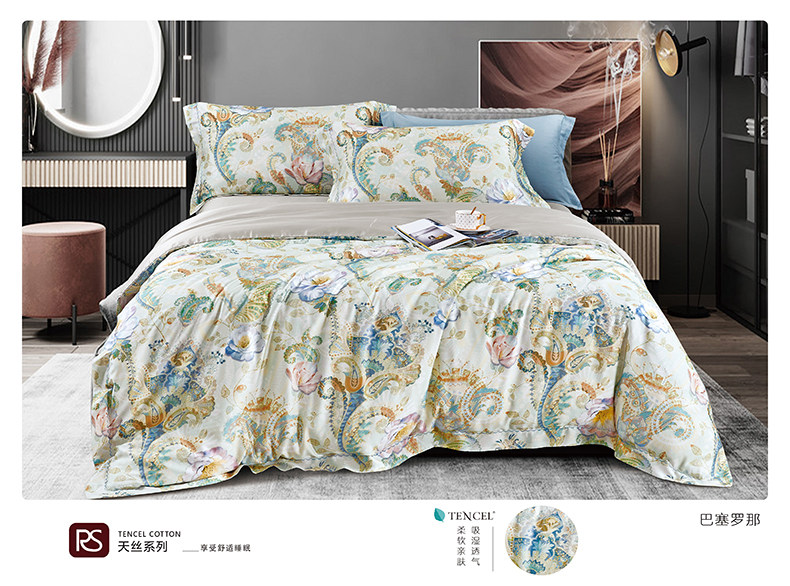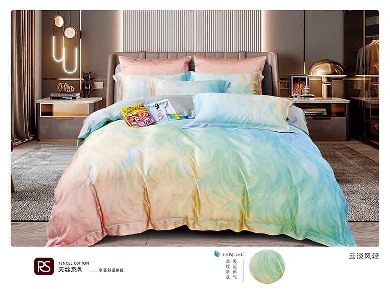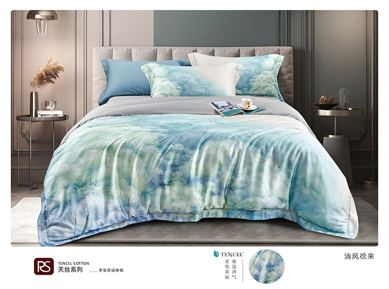 帛典 Двусторонний шелковистый комплект, шелковая простыня, пододеяльник, покрывало, 60 шт, 4 предмета, легкий роскошный стиль
