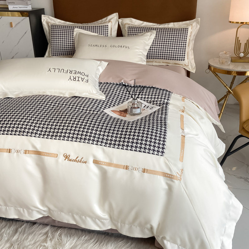 Осенний хлопковый комплект, простыня, 4 предмета, с вышивкой, простой и элегантный дизайн, легкий роскошный стиль, изысканный стиль, 1.5м, 1.8м