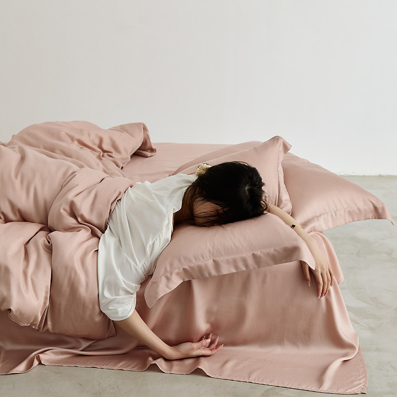 Розовый двусторонний комплект, шелковистая шелковая простыня, простой и элегантный дизайн, 60 шт, 4 предмета