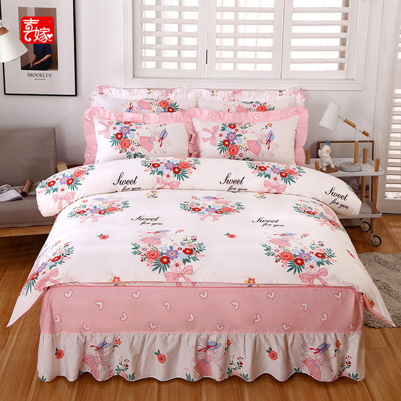 Хлопковый комплект, одеяло, пододеяльник, розовый наряд маленькой принцессы, стиль, 4 предмета, постельные принадлежности