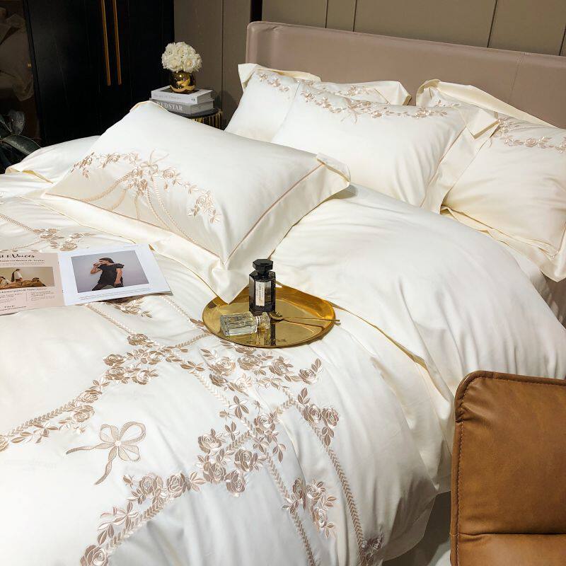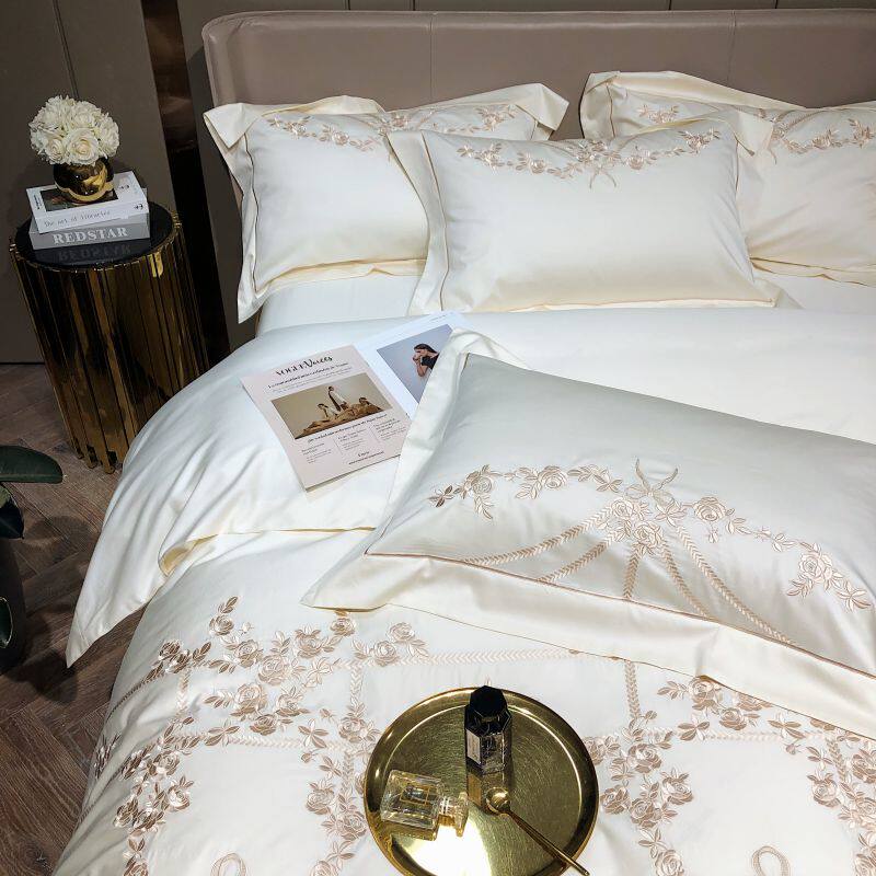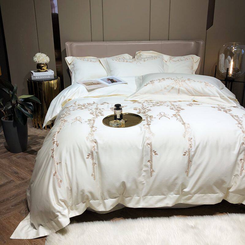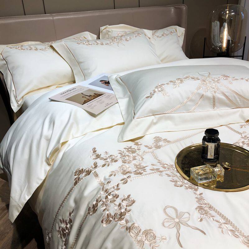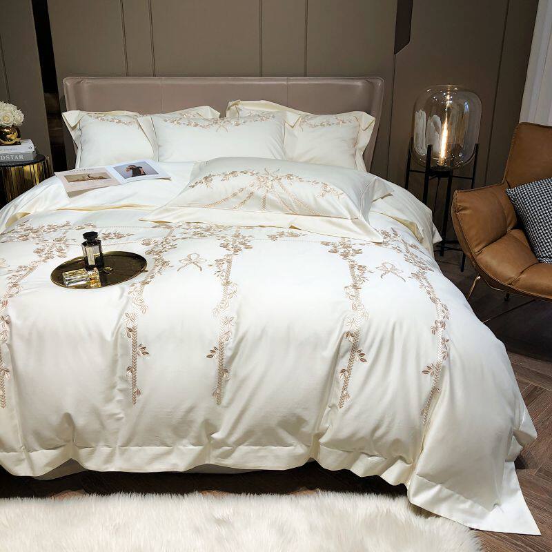 Хлопковый комплект, хлопковая простыня, пододеяльник, покрывало, с вышивкой, 4 предмета