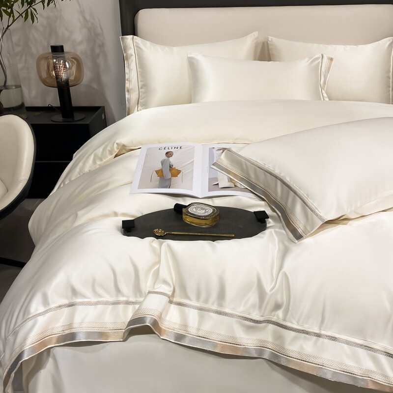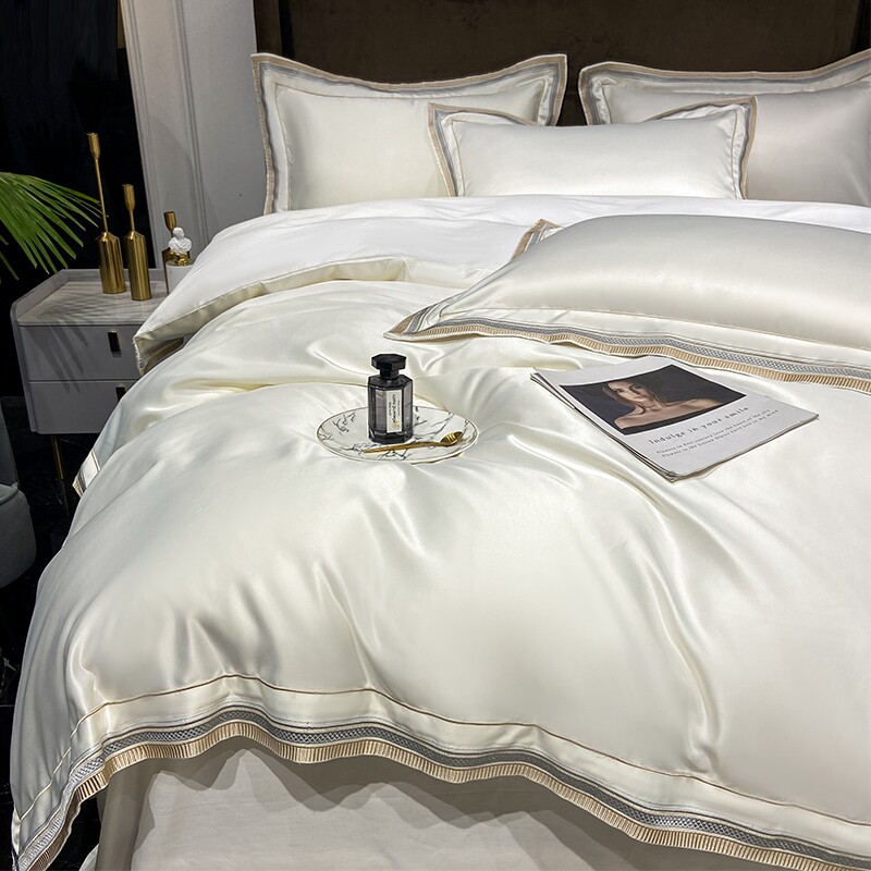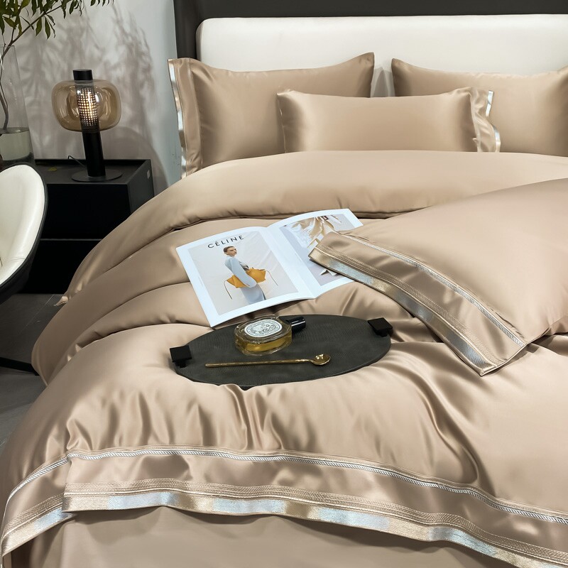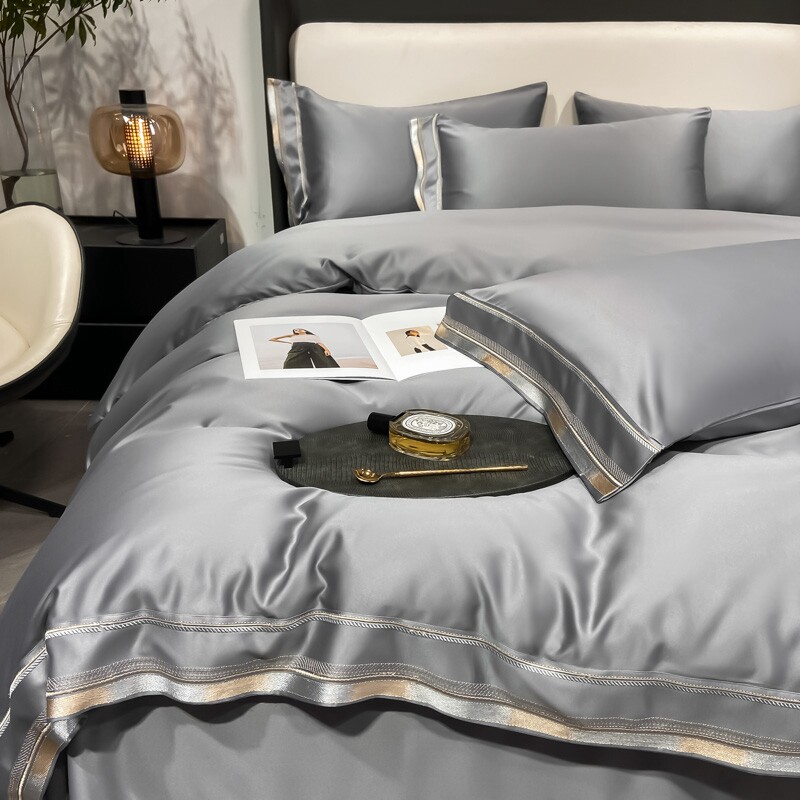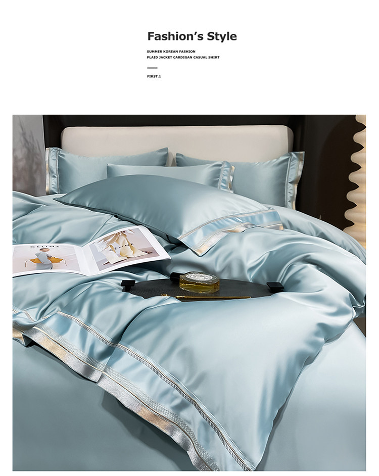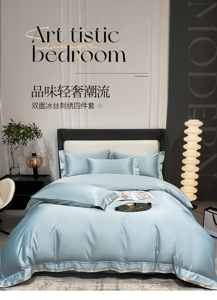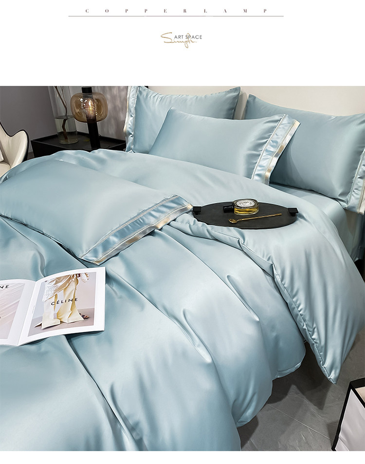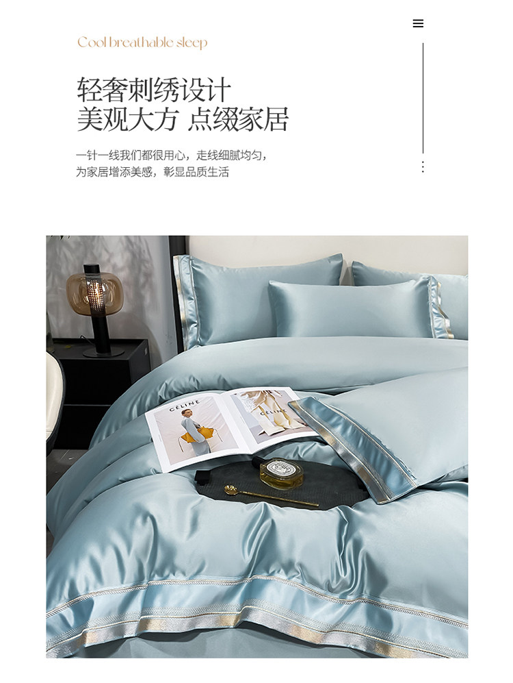 Двусторонний шелковый шелковистый комплект, летний пододеяльник, простыня, покрывало, легкий роскошный стиль, европейский стиль, 4 предмета