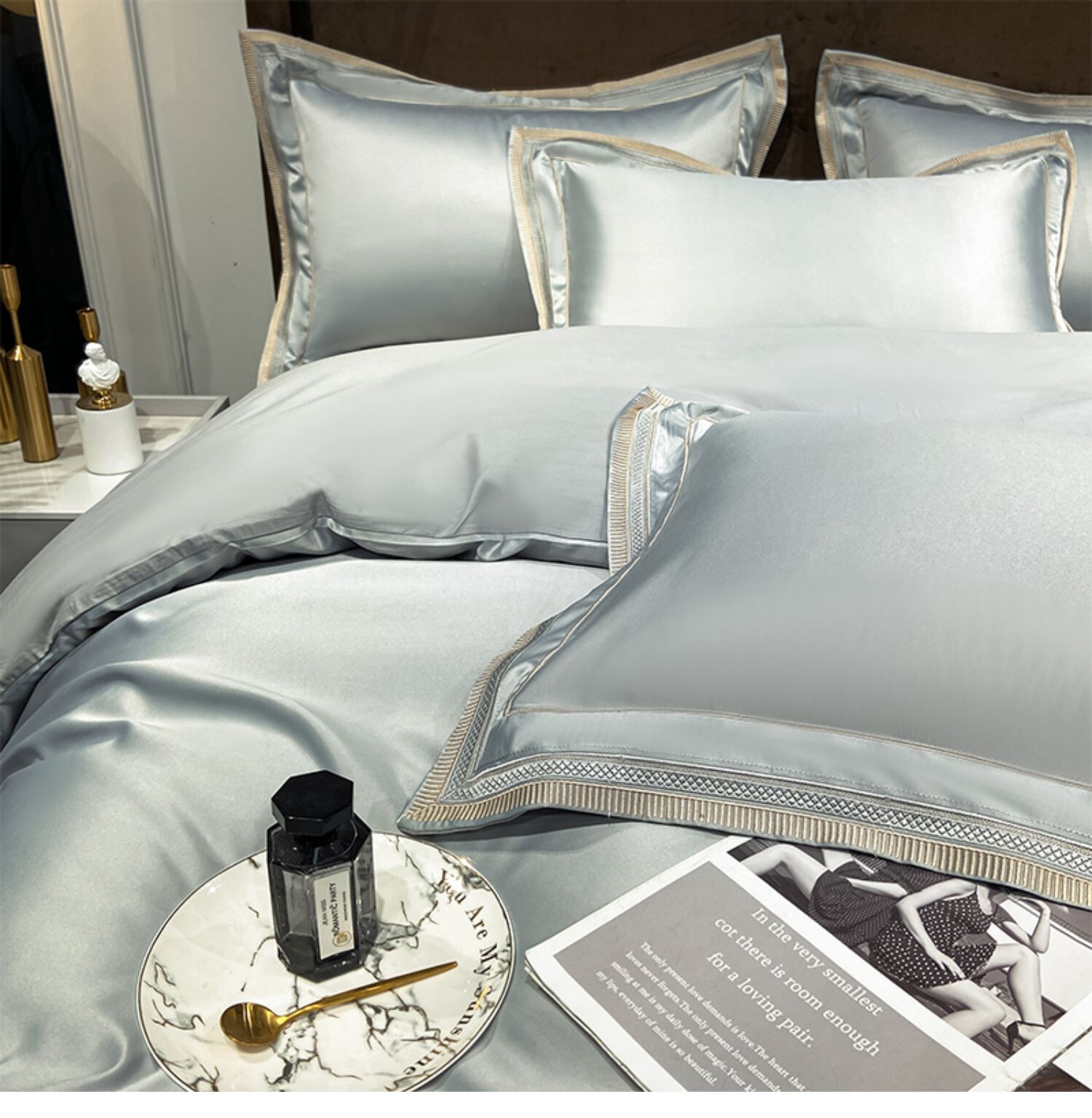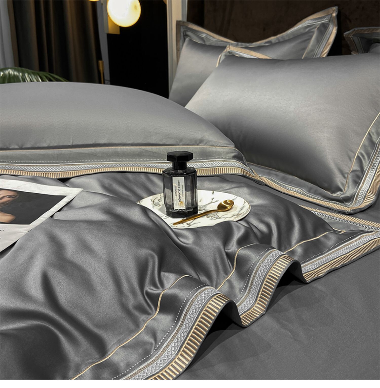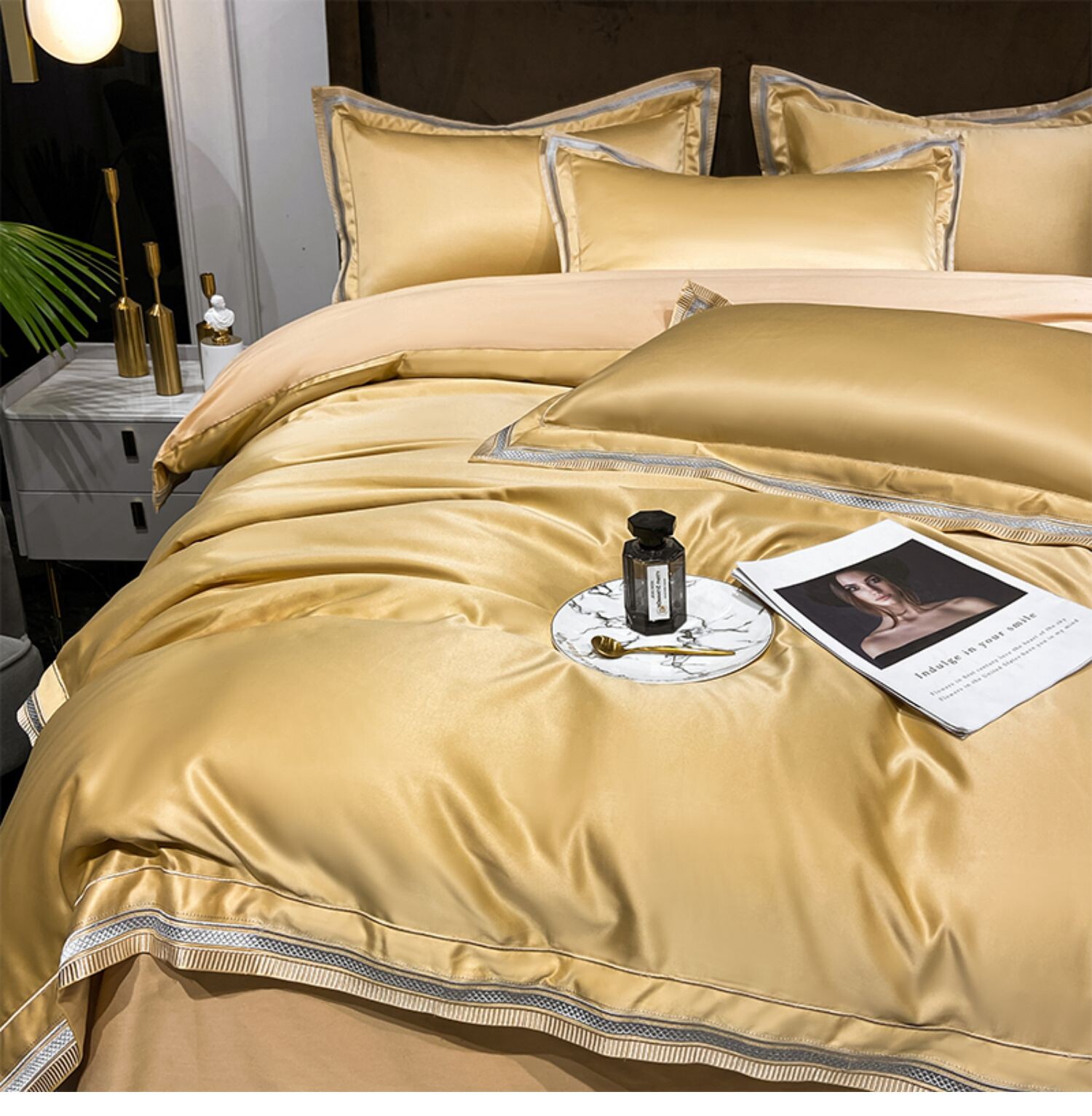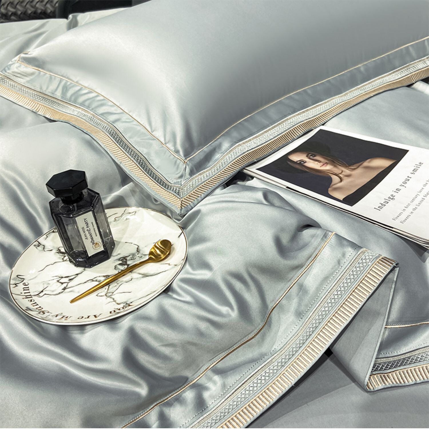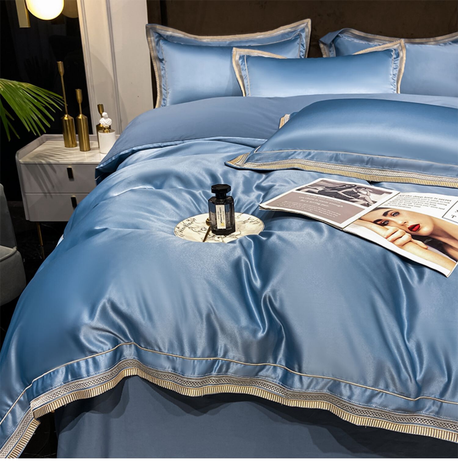 Двусторонний шелковый шелковистый комплект, летний пододеяльник, простыня, покрывало, легкий роскошный стиль, европейский стиль, 4 предмета