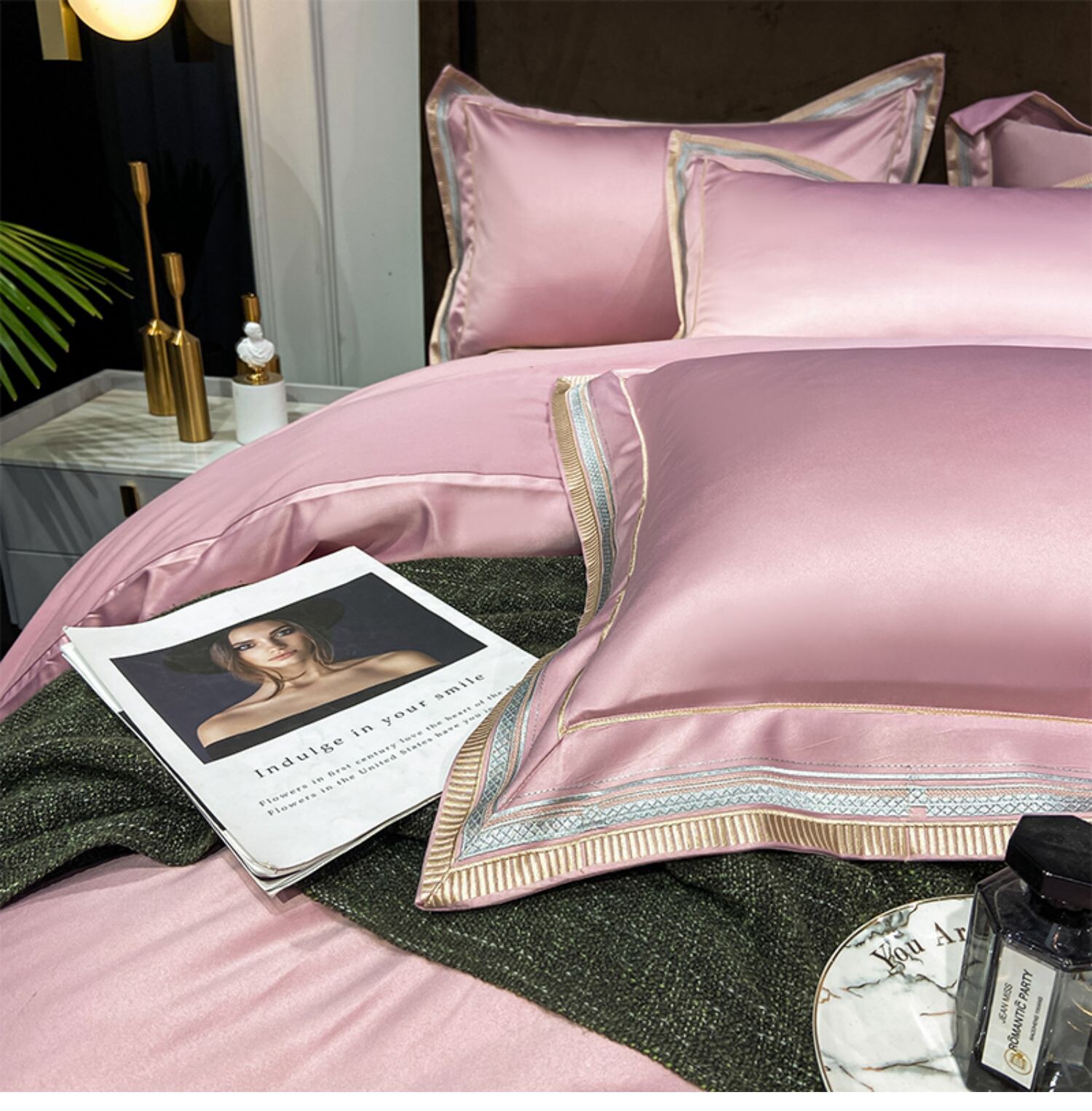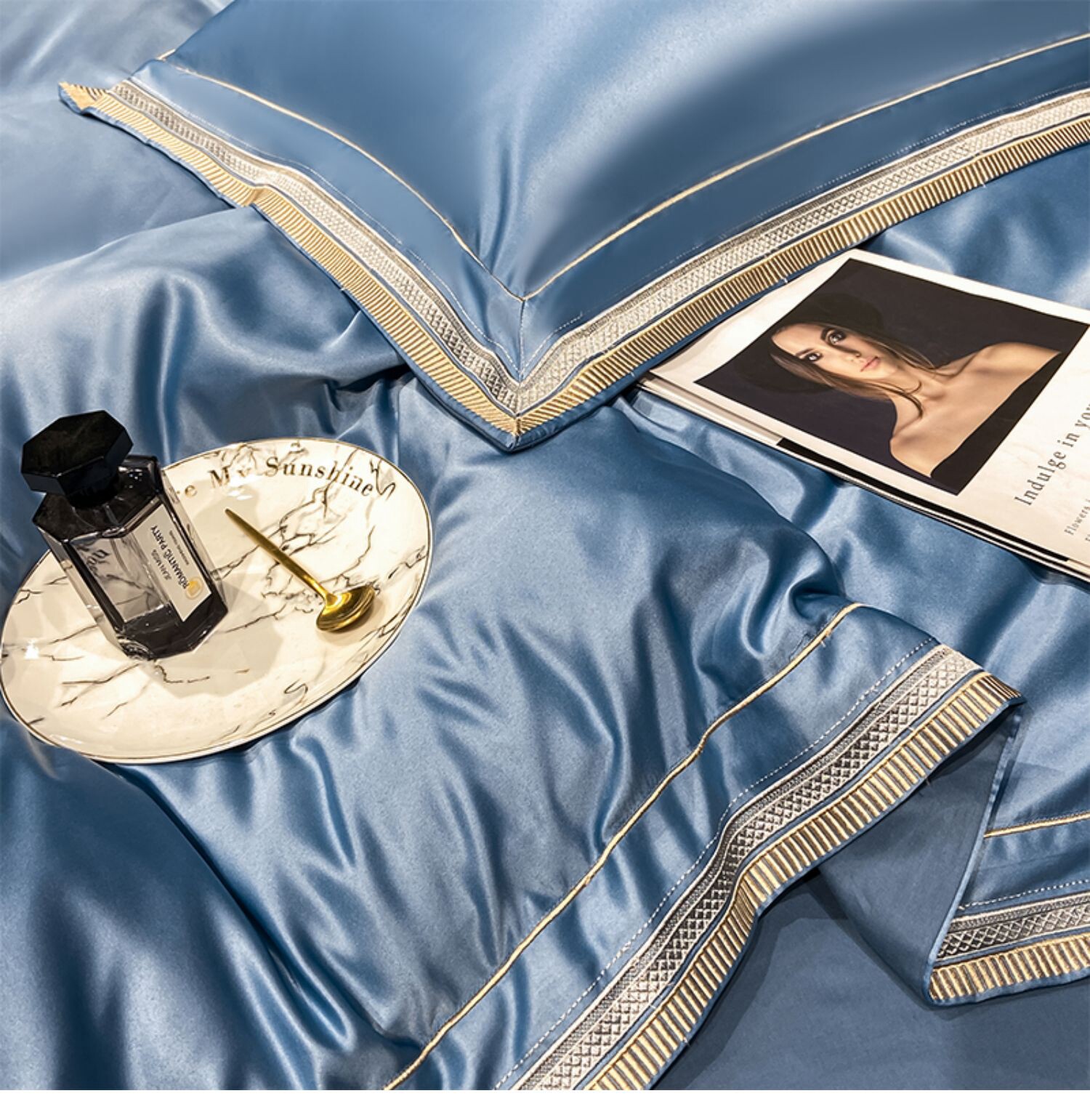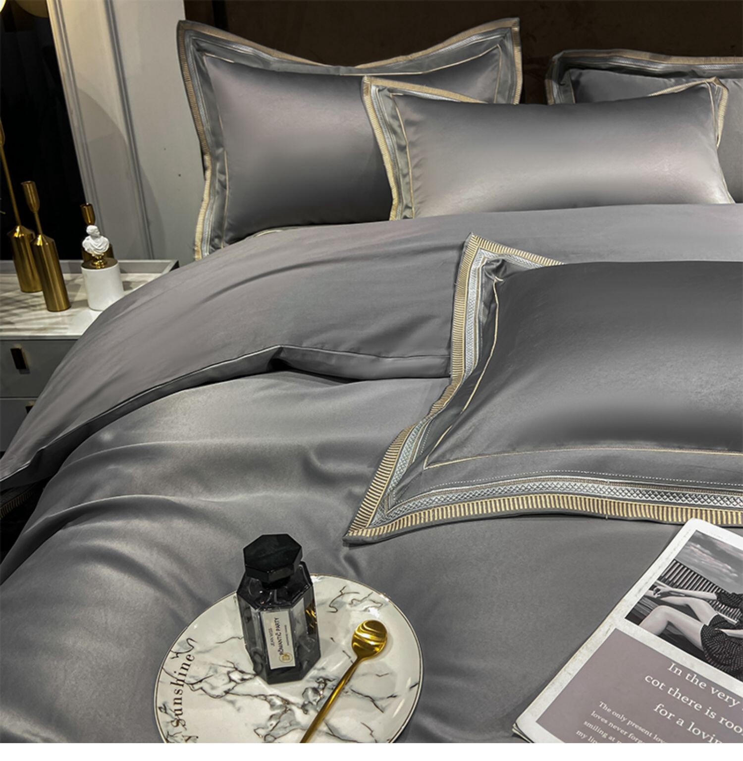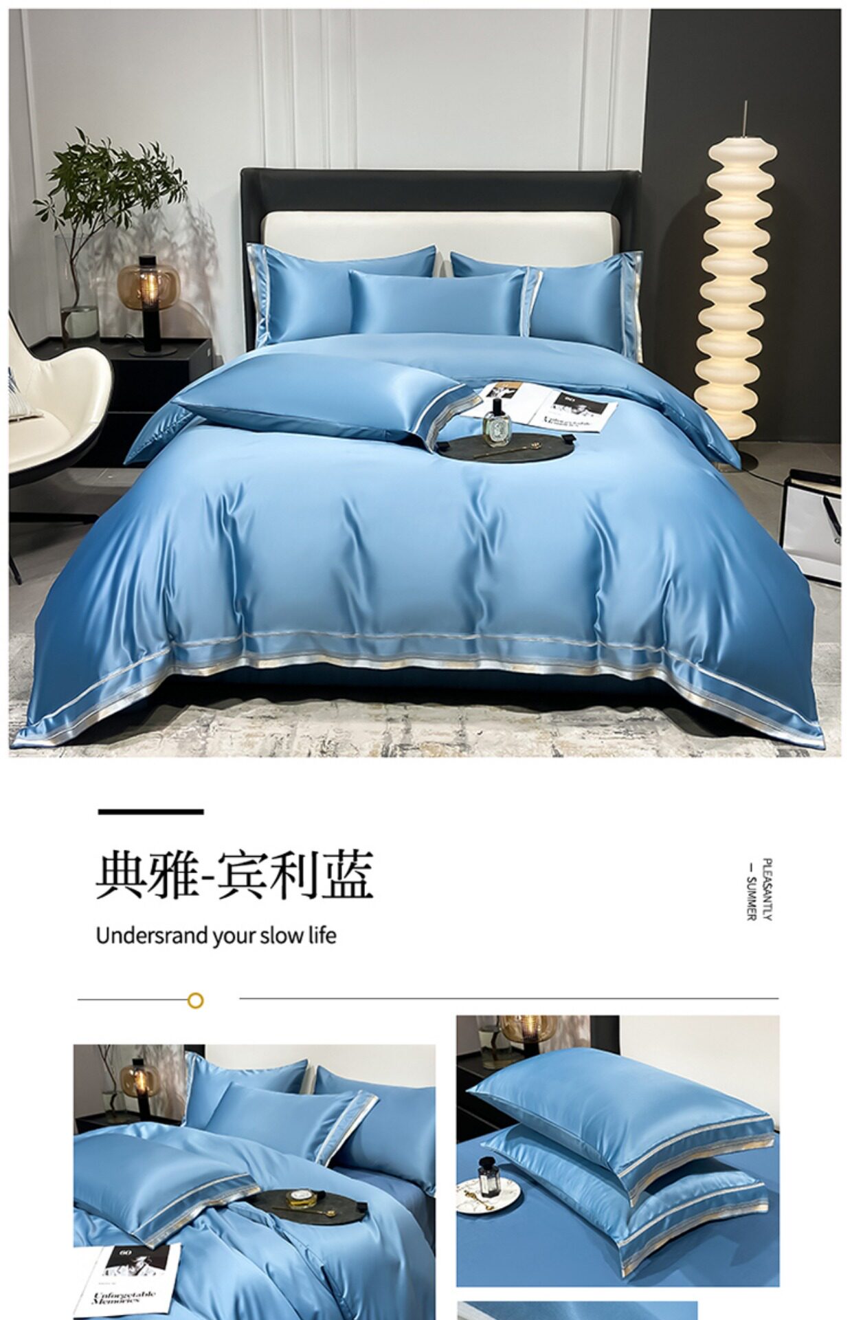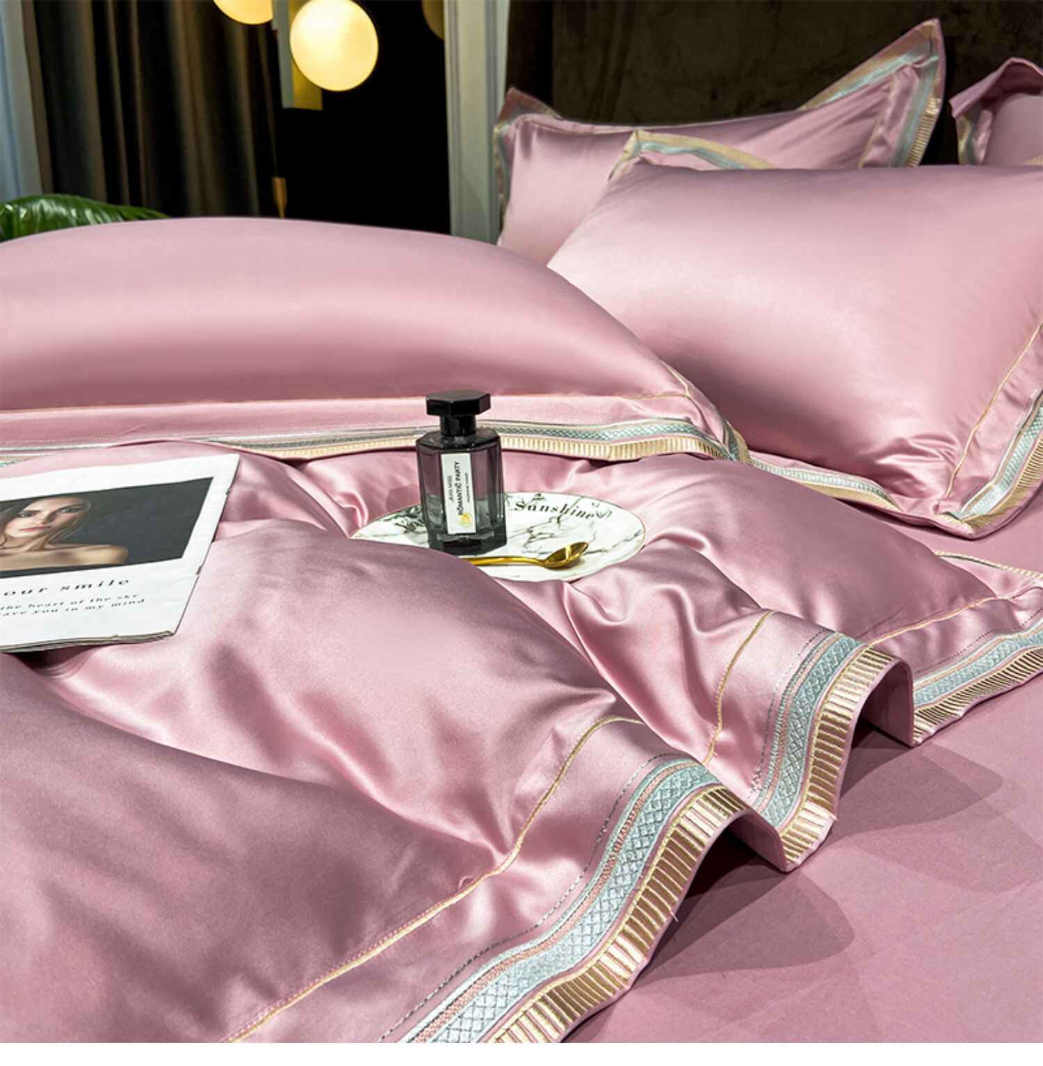 Двусторонний шелковый шелковистый комплект, летний пододеяльник, простыня, покрывало, легкий роскошный стиль, европейский стиль, 4 предмета