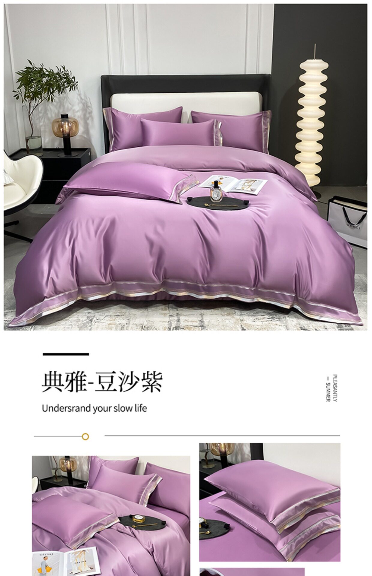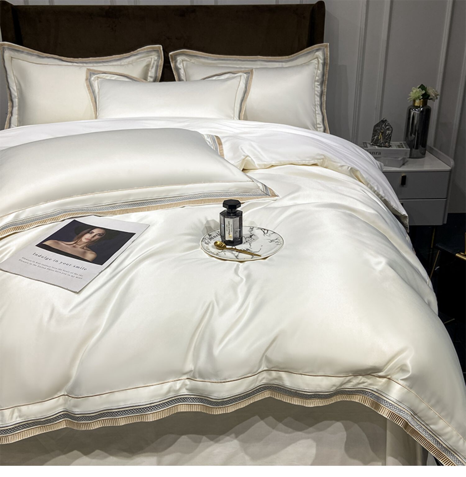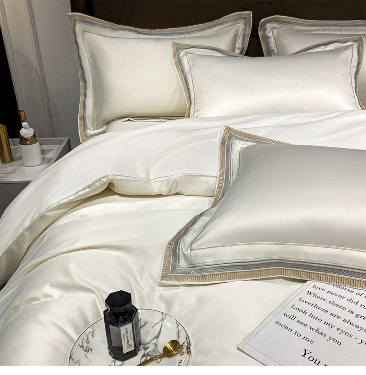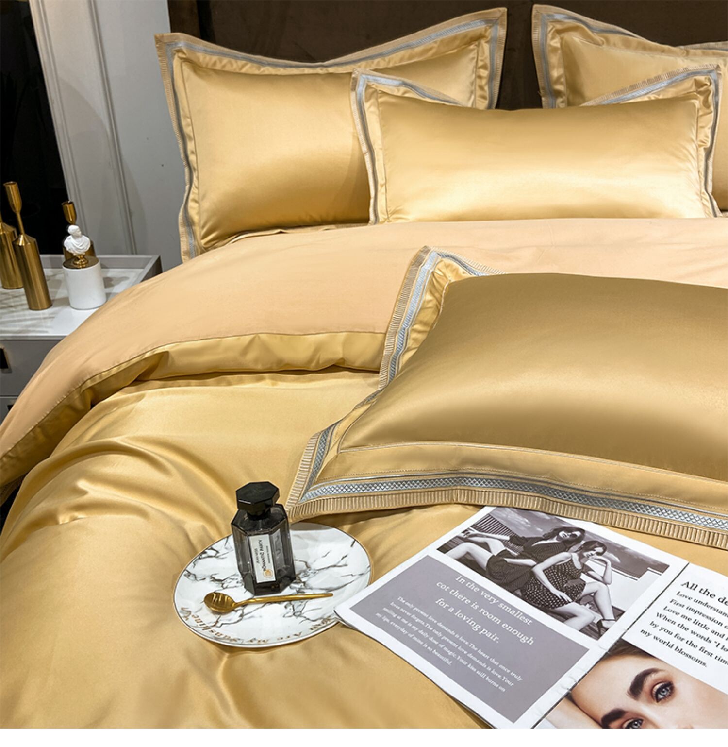 Двусторонний шелковый шелковистый комплект, летний пододеяльник, простыня, покрывало, легкий роскошный стиль, европейский стиль, 4 предмета