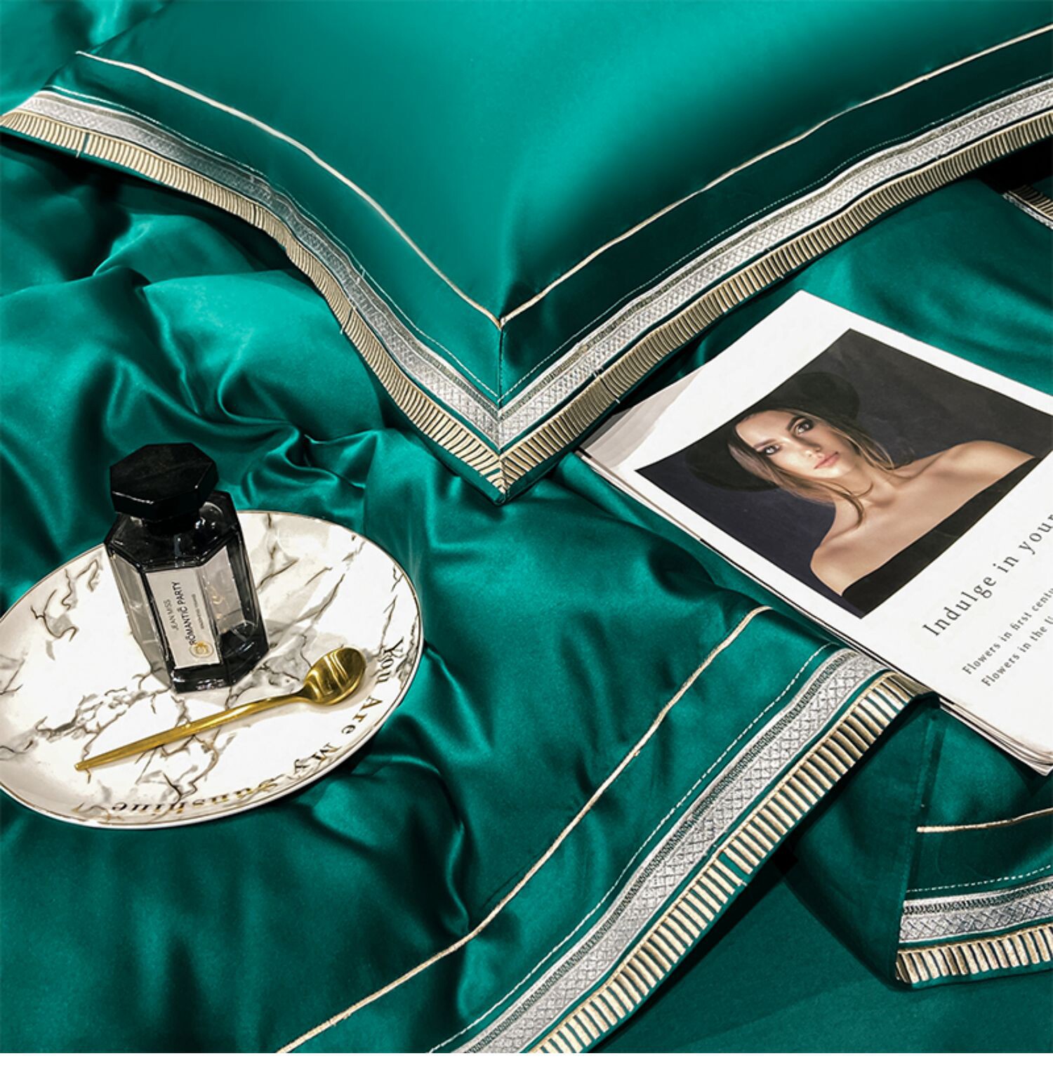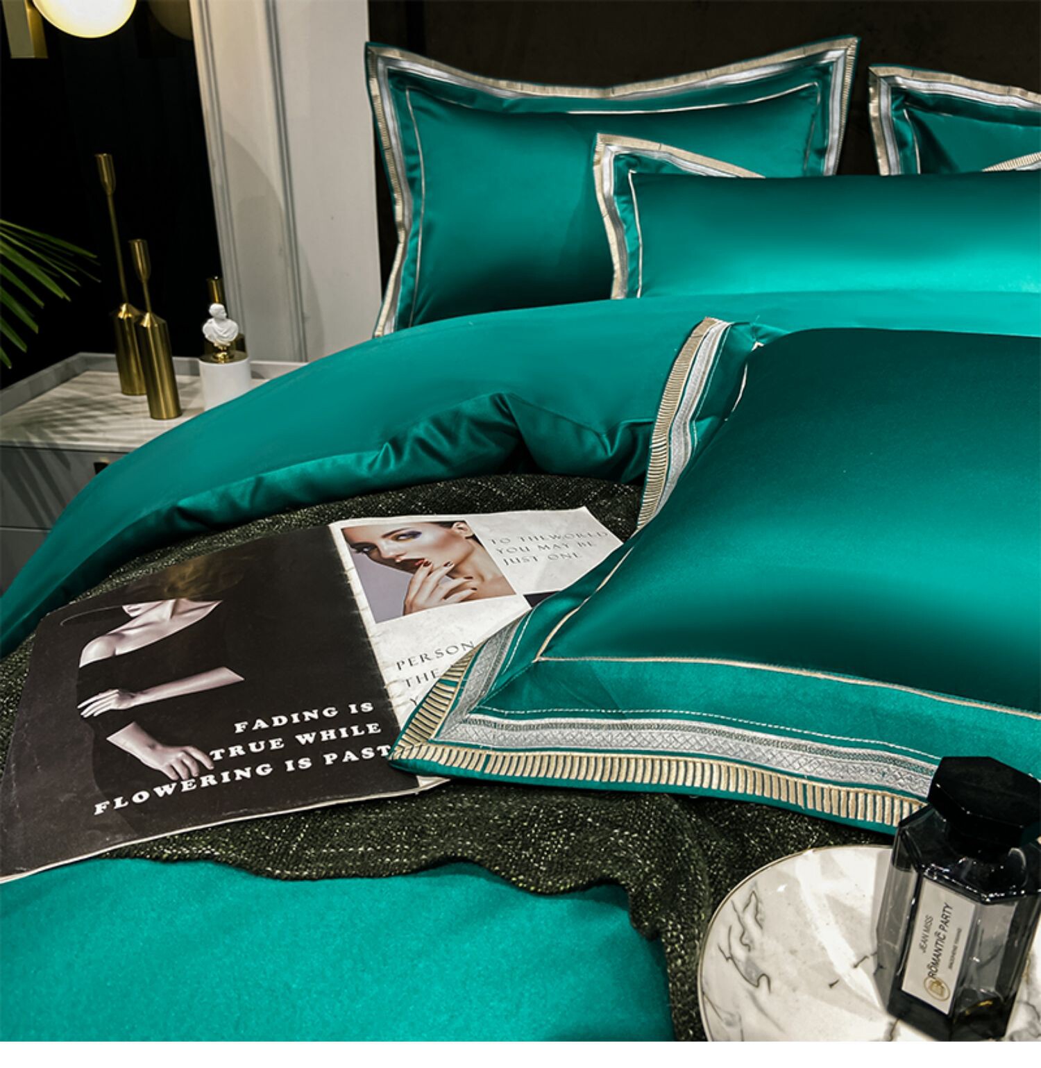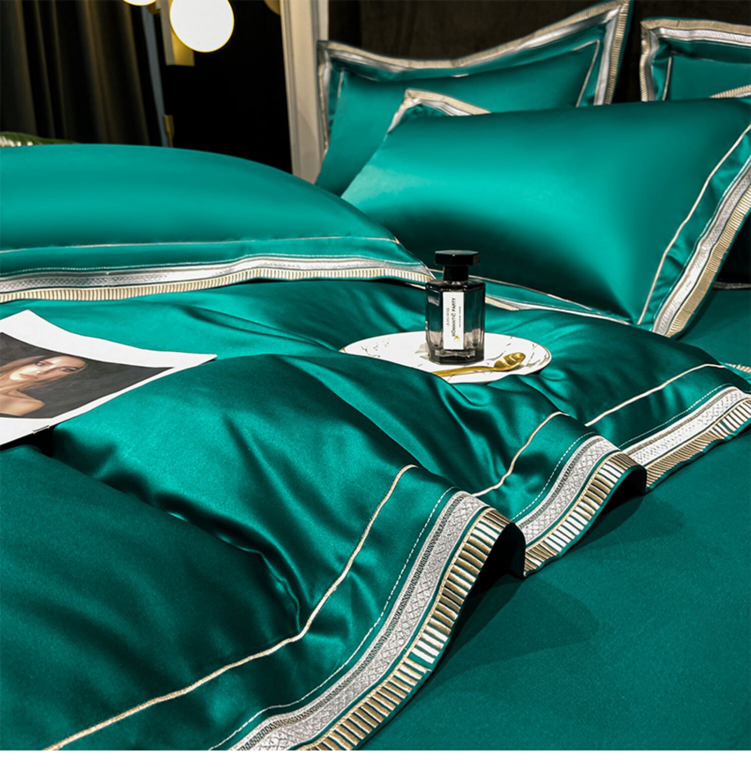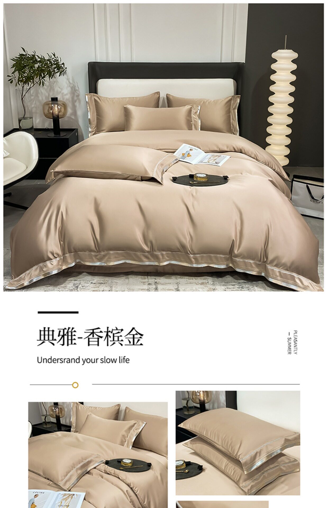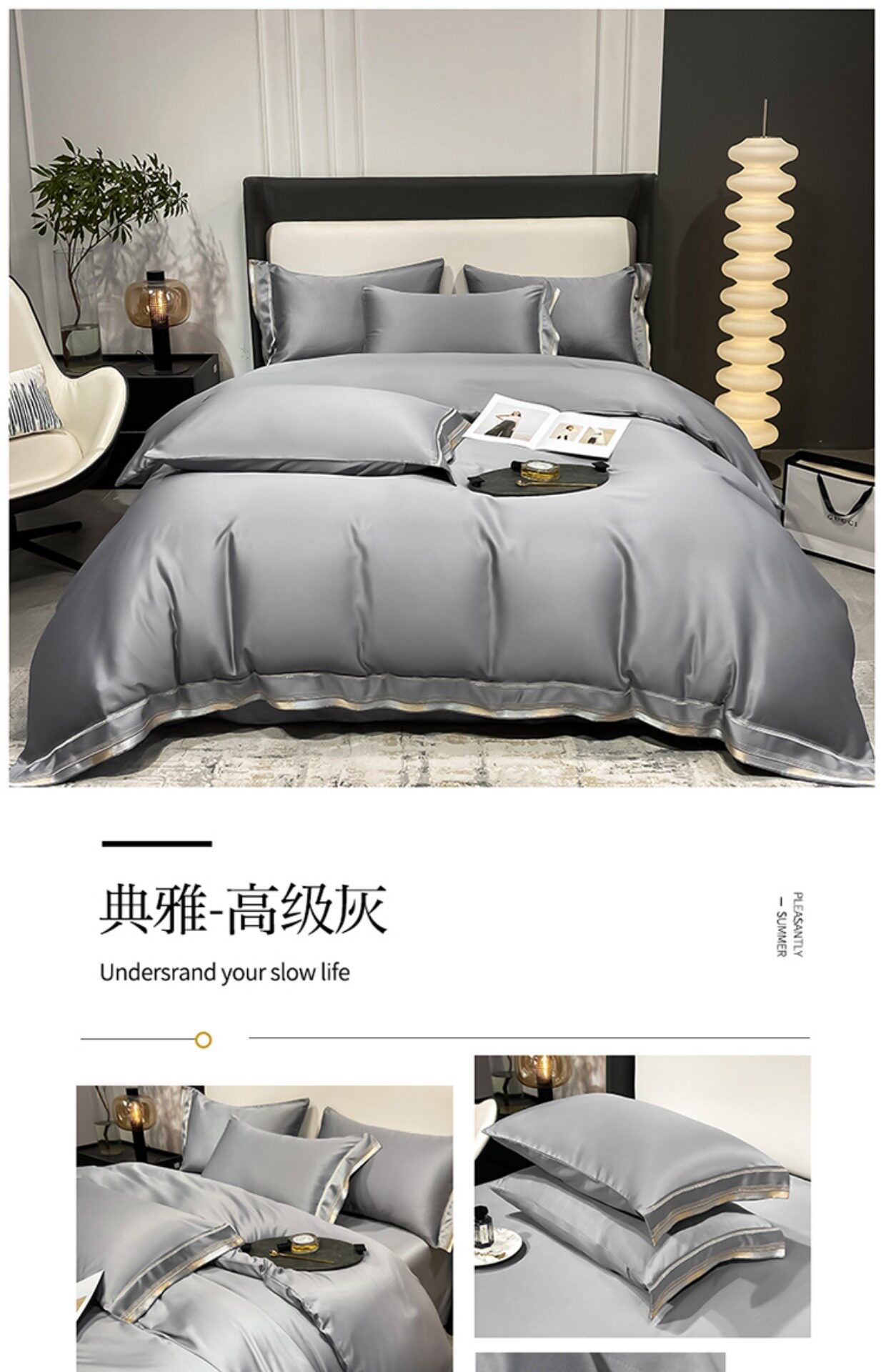 Двусторонний шелковый шелковистый комплект, летний пододеяльник, простыня, покрывало, легкий роскошный стиль, европейский стиль, 4 предмета