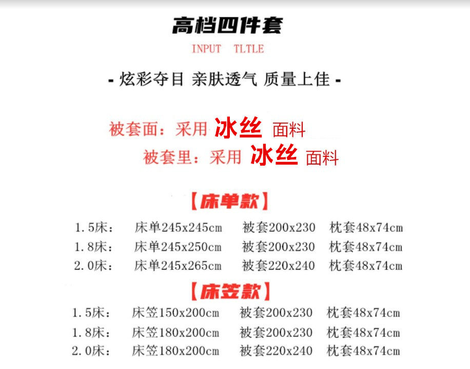 | Ширина кровати: | 1.5 Single Four -Piece Set: Course с 200*230, 1,8 четырехэтажные набор кроватей: 200*230, 2,0 кровати набор четырех -купюр: установка с 220*240, 2.2 Single Four -Piece Set: Set 220*240, 1,5 кровати четыре -купюры: курс с 200*230, 1,8 кровати четыре -купюры: курс с 200*230, Специальные 1,8 кровати: стеганое одеяло 220*240 Увеличение |