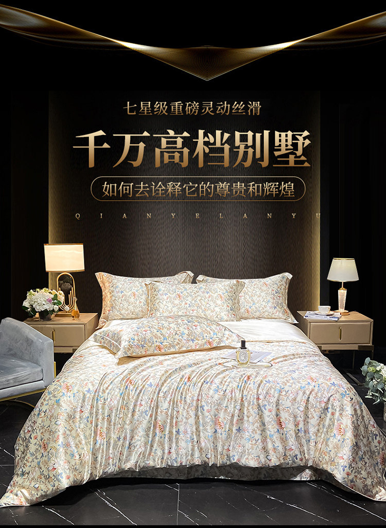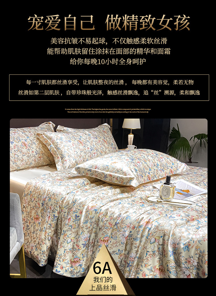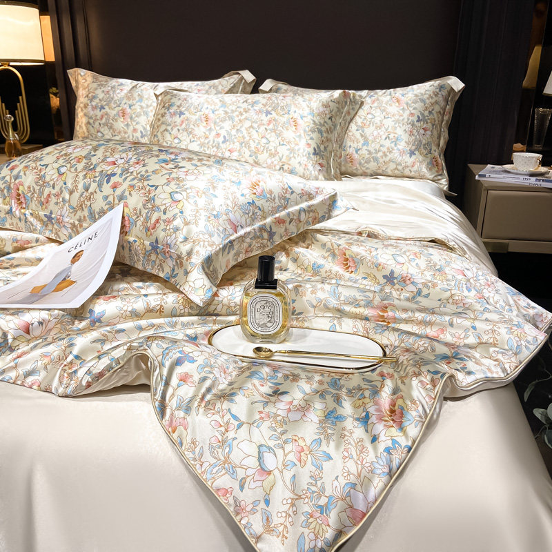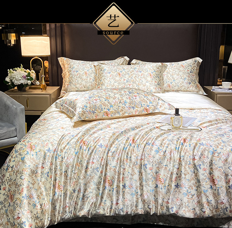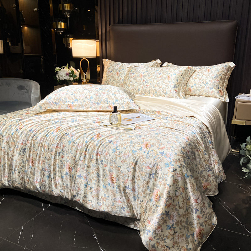 Элитный летний шелковый комплект, шелковистый пододеяльник, кровать, простыня, 4 предмета