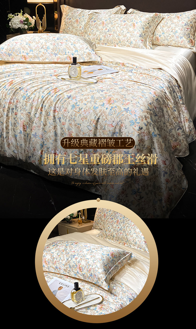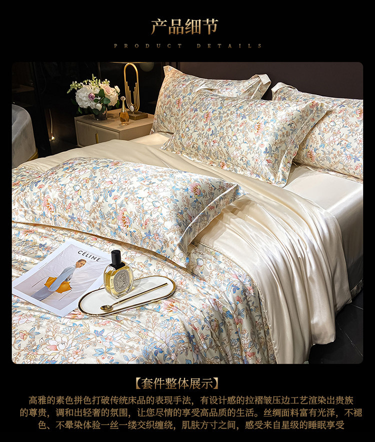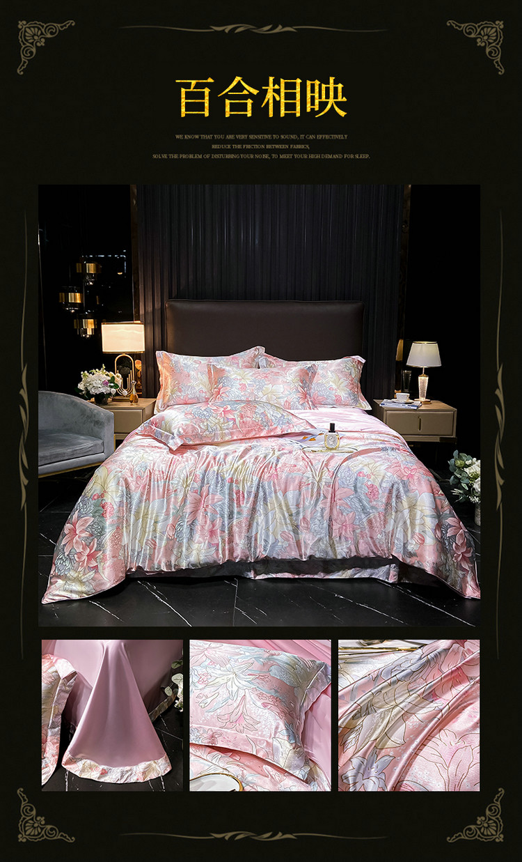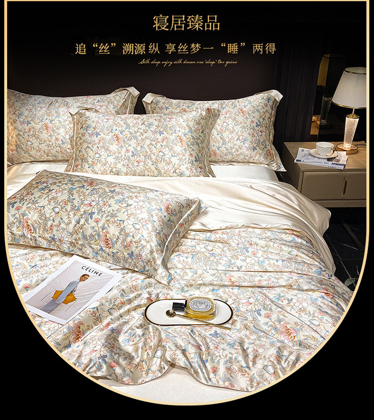 Элитный летний шелковый комплект, шелковистый пододеяльник, кровать, простыня, 4 предмета