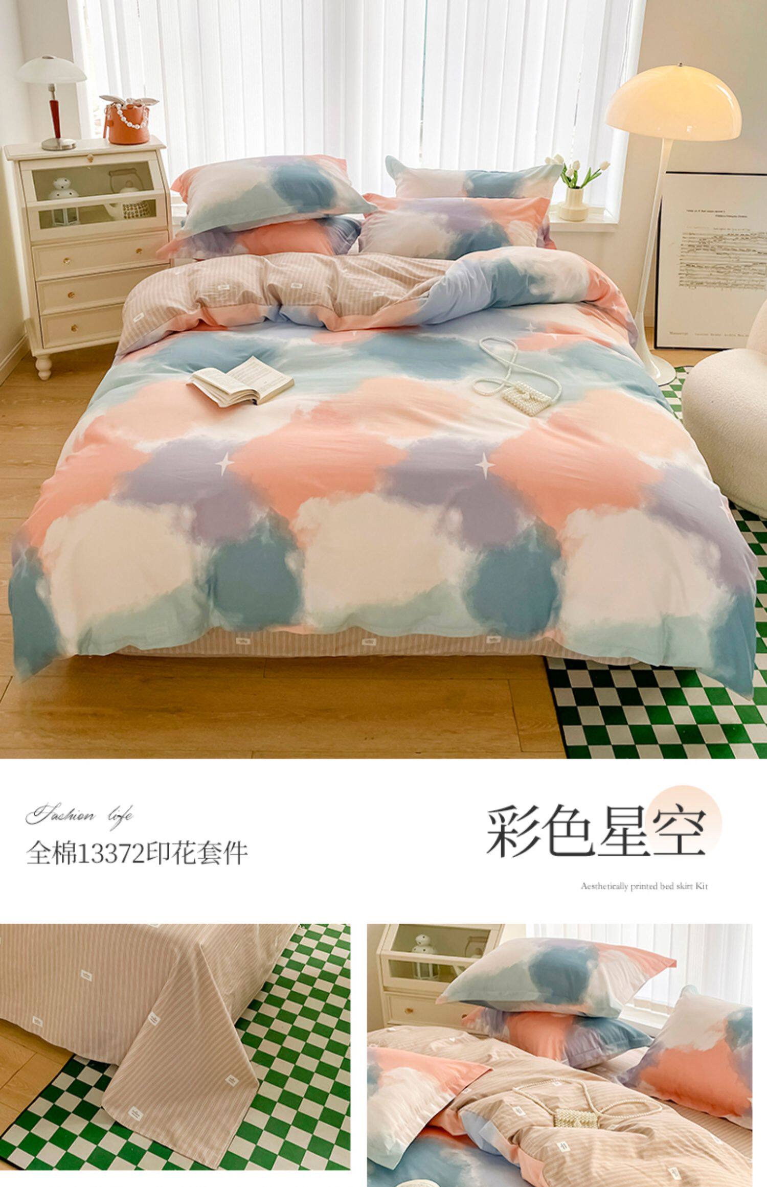 Хлопковый комплект, простыня, свежий летний пододеяльник, 4 предмета, 3 предмета, постельные принадлежности