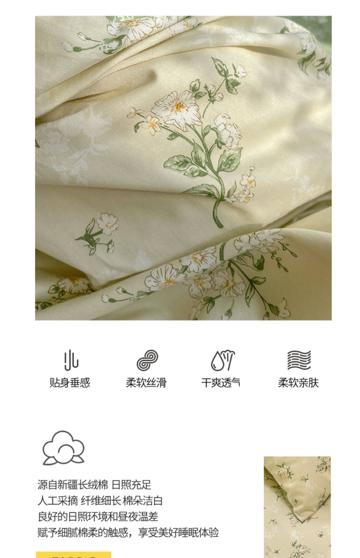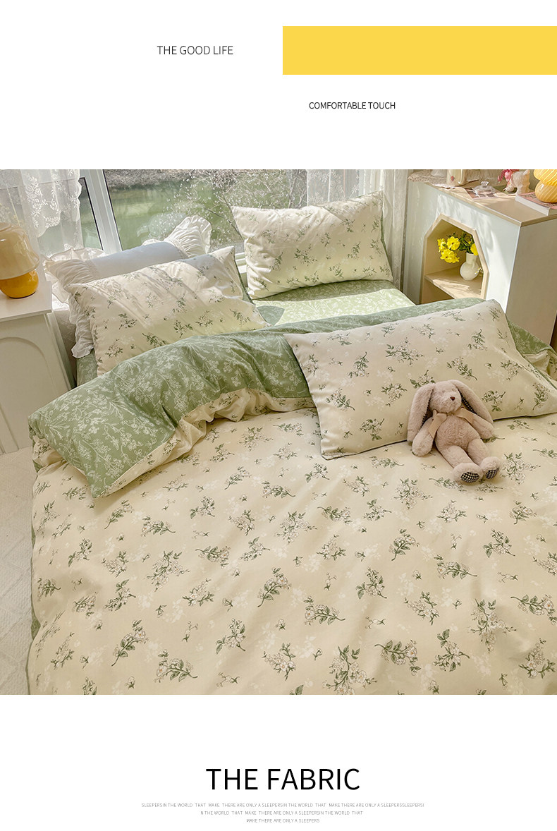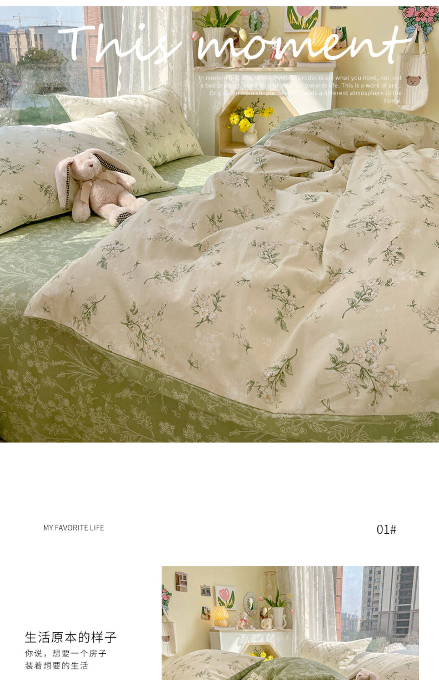 Хлопковый комплект, свежий пододеяльник, простыня, цветочный принт, 4 предмета, 3 предмета
