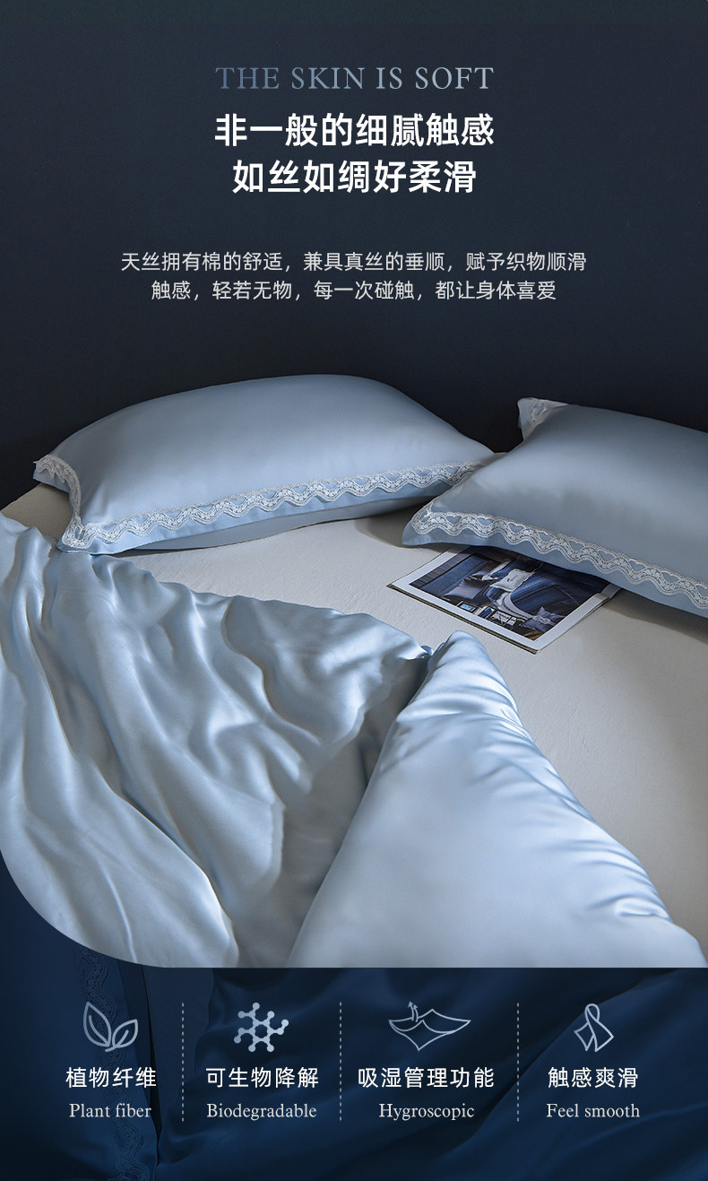 Простыни и приталенные простыни Avon Ting Tencel, однотонные, для легкого сезона, набор из четырех предметов, однотонный, количество пряжи 60
