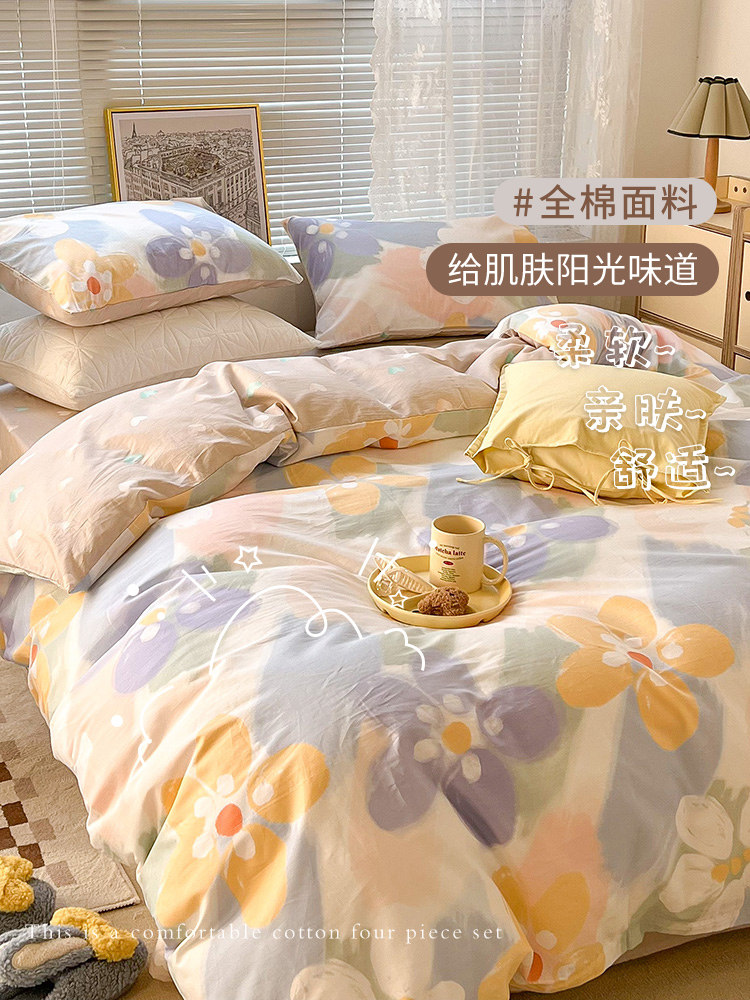 Брендовый хлопковый комплект для принцессы, свежая простыня, пододеяльник, 4 предмета, постельные принадлежности, 3 предмета