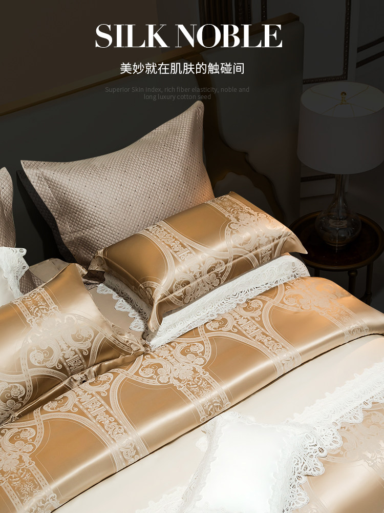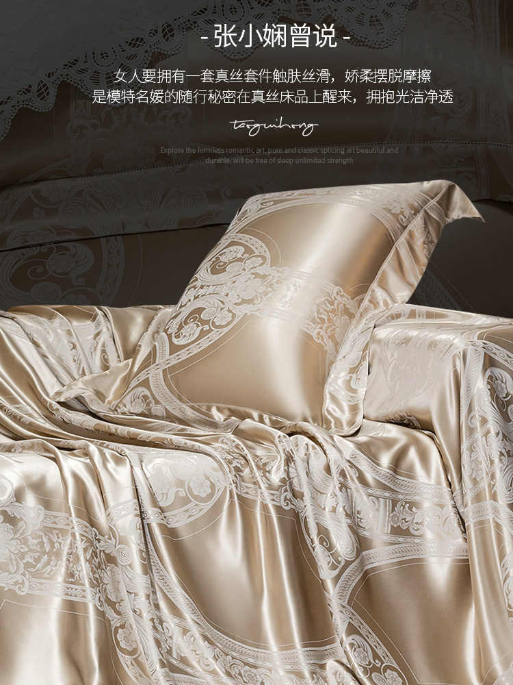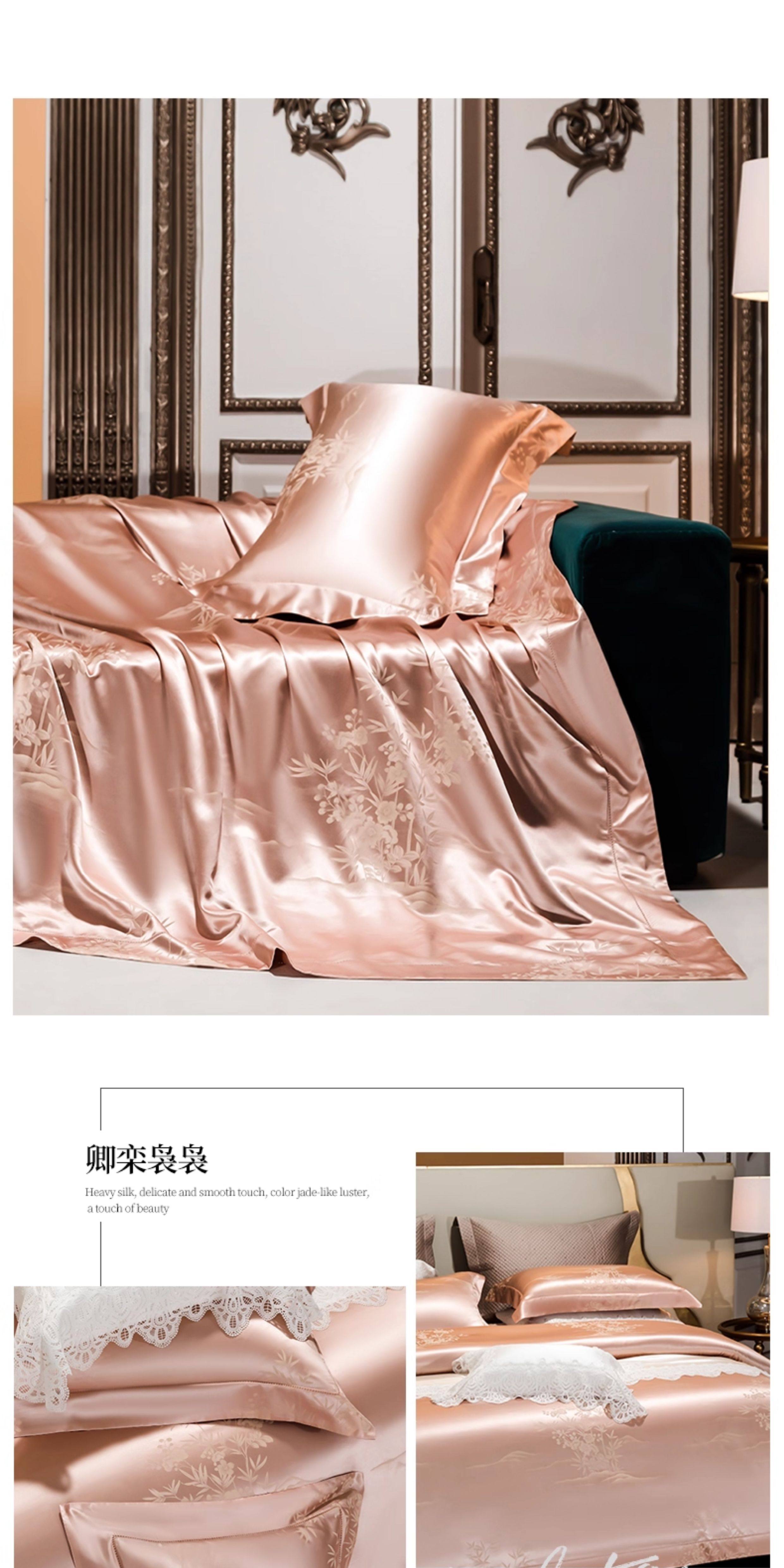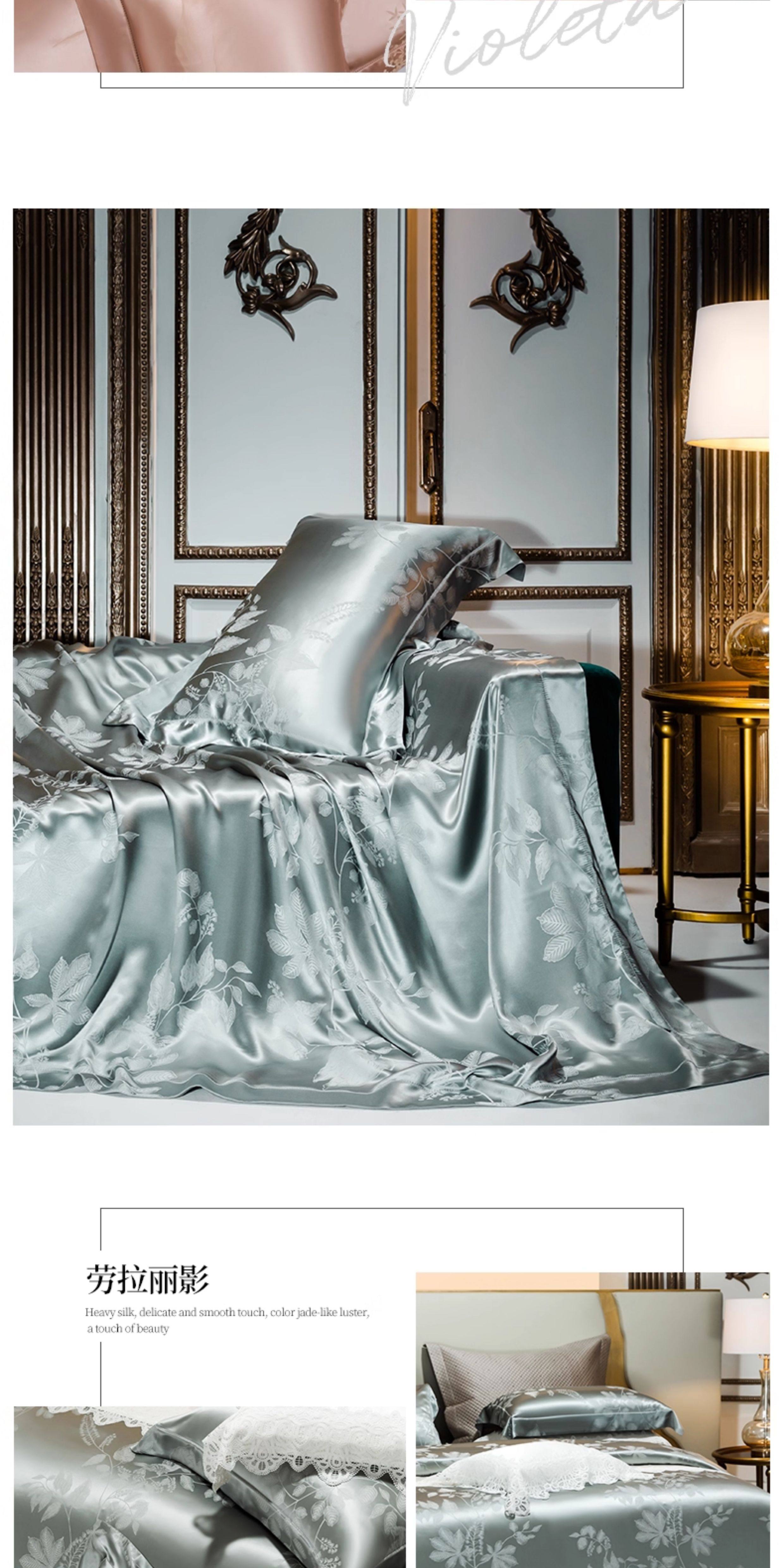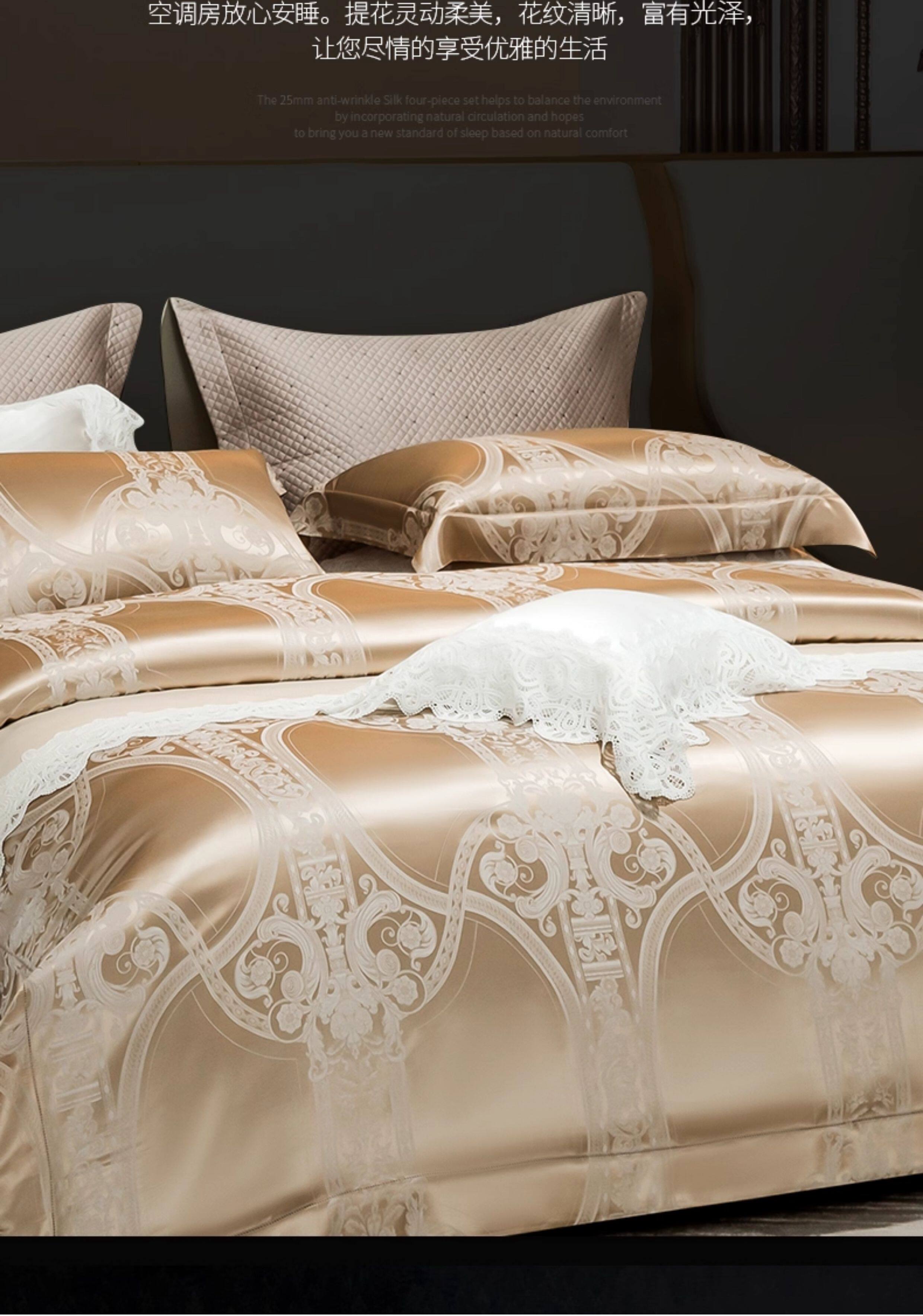 Шелковый комплект, шелковая простыня, пододеяльник, элитное летнее покрывало, 4 предмета, легкий роскошный стиль