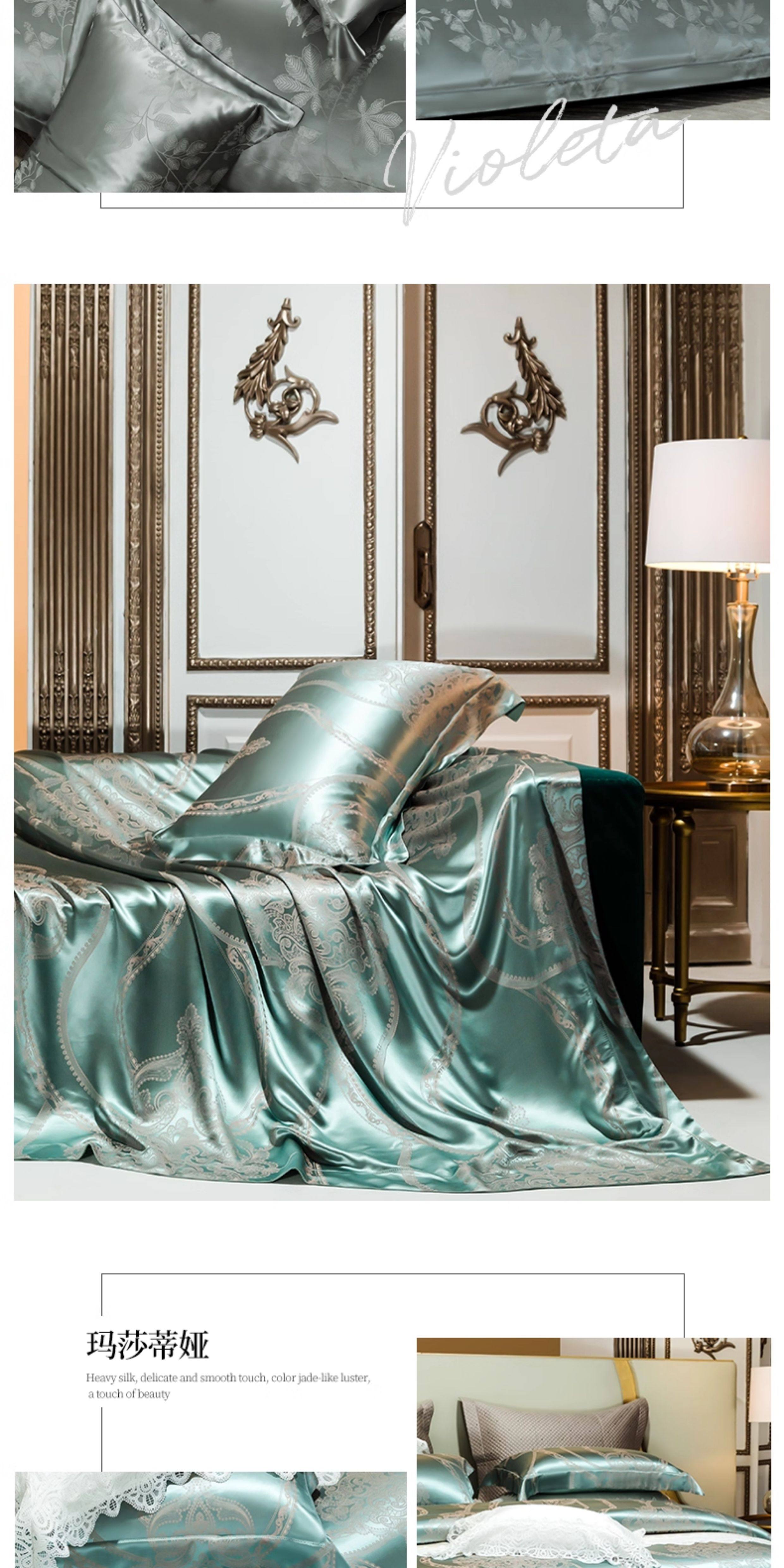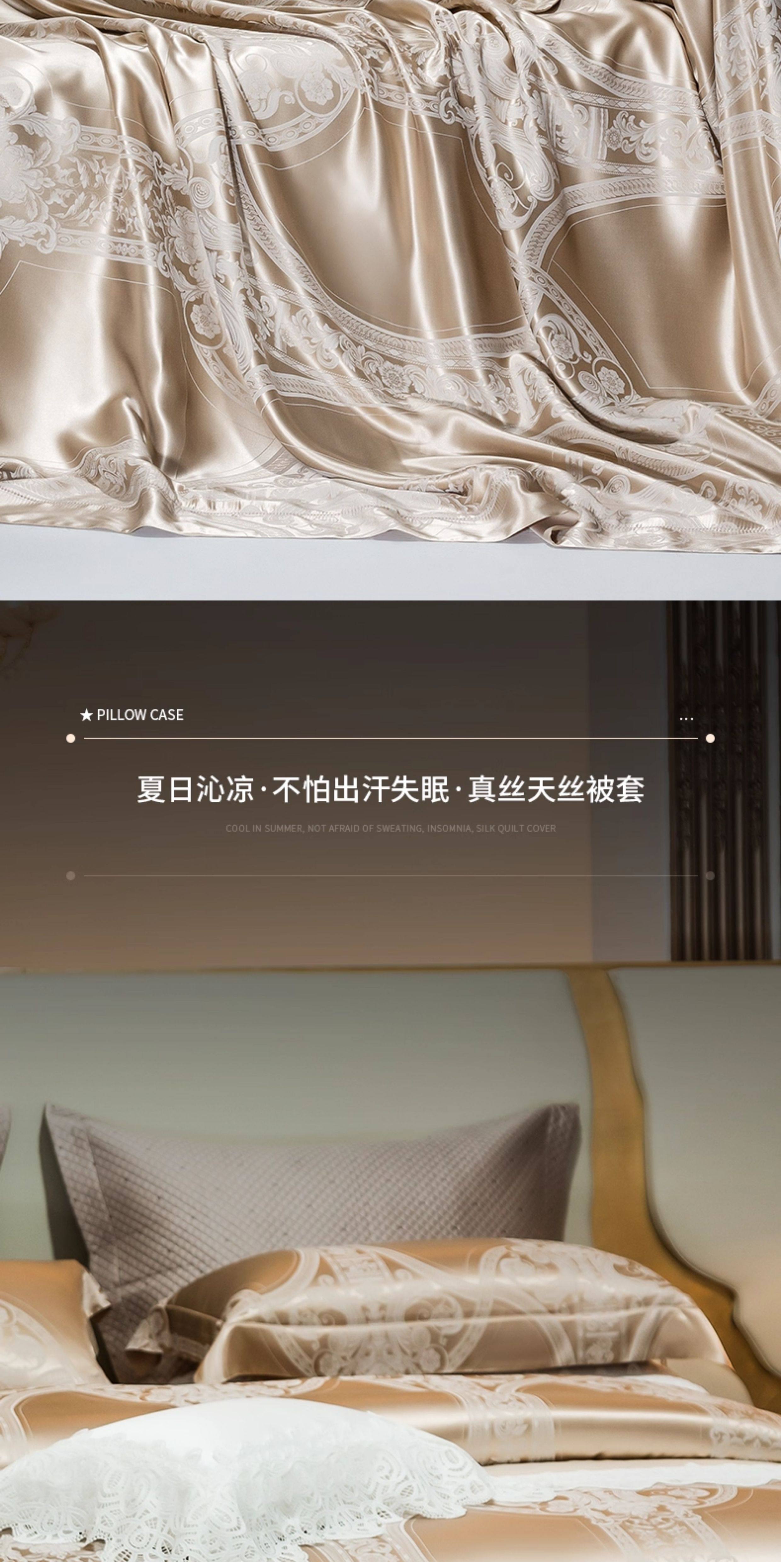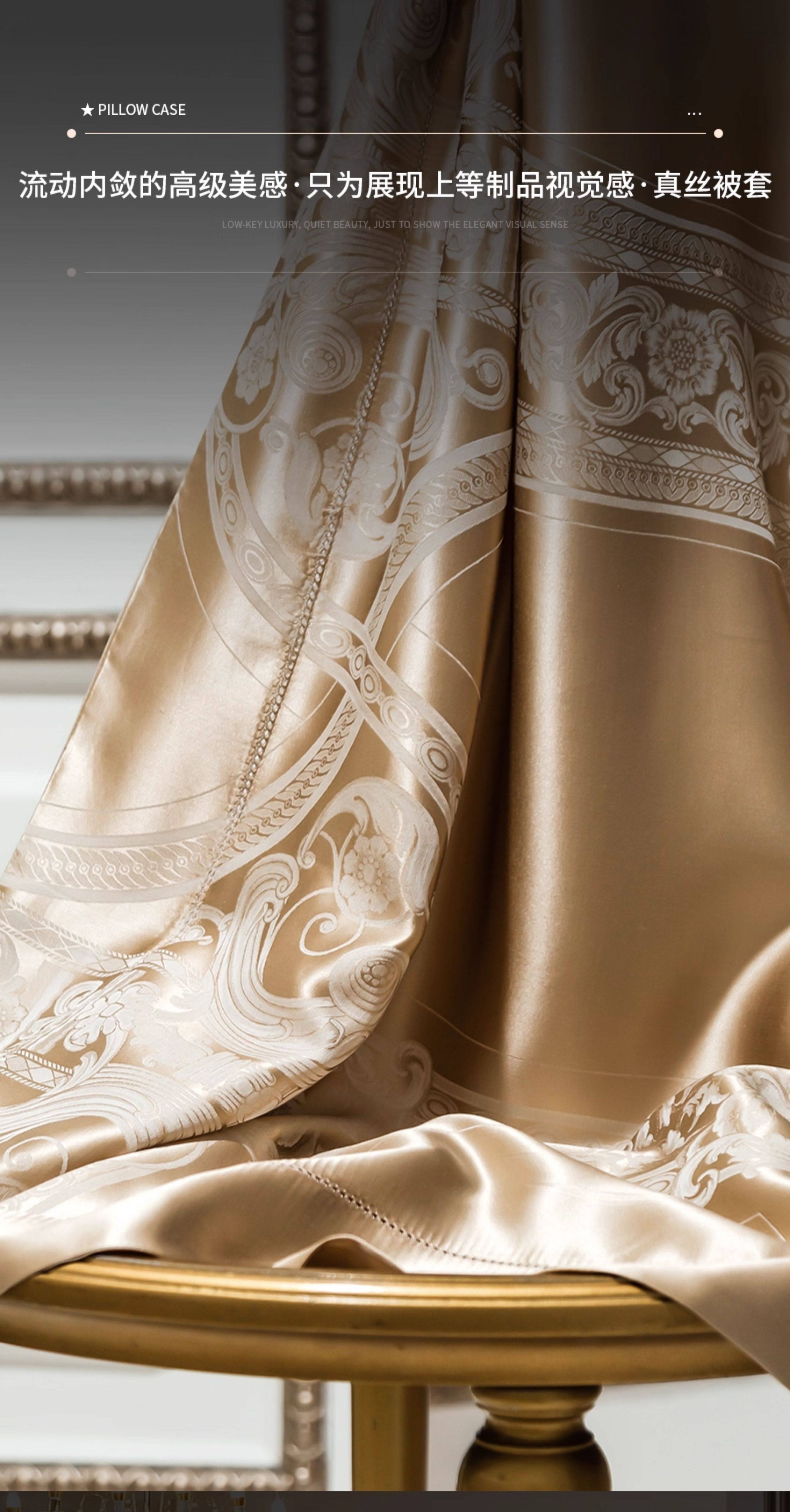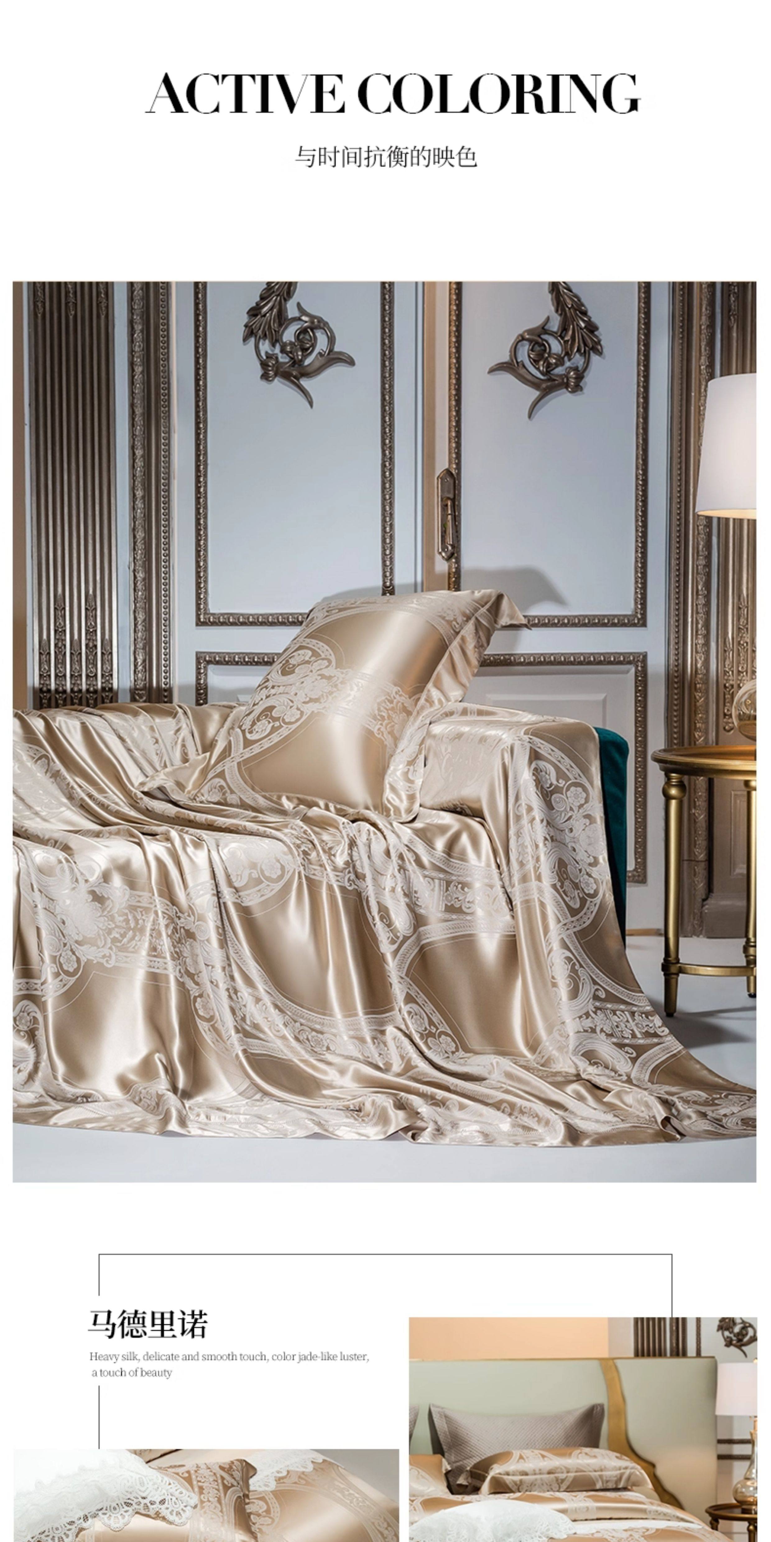 Шелковый комплект, шелковая простыня, пододеяльник, элитное летнее покрывало, 4 предмета, легкий роскошный стиль