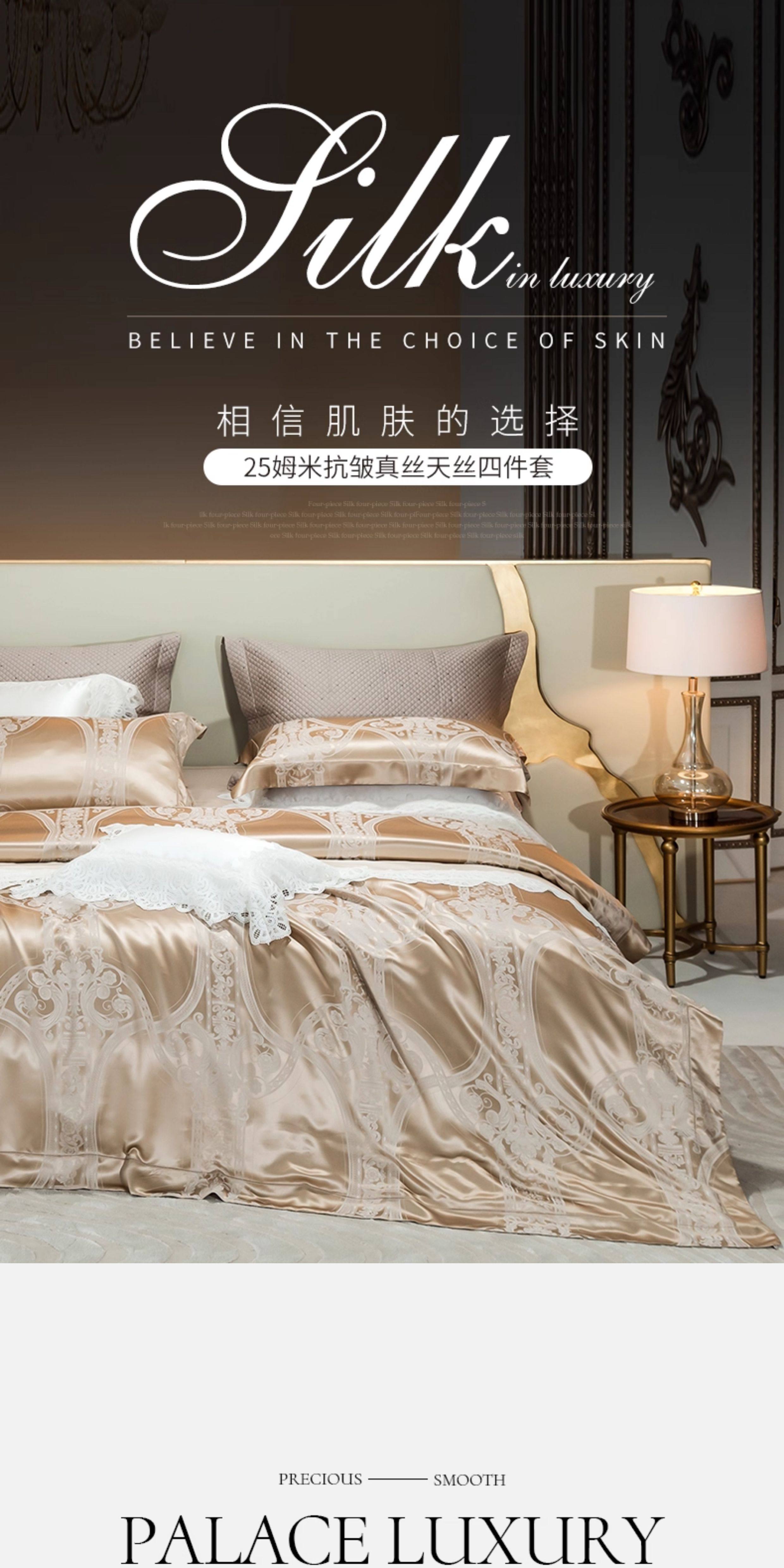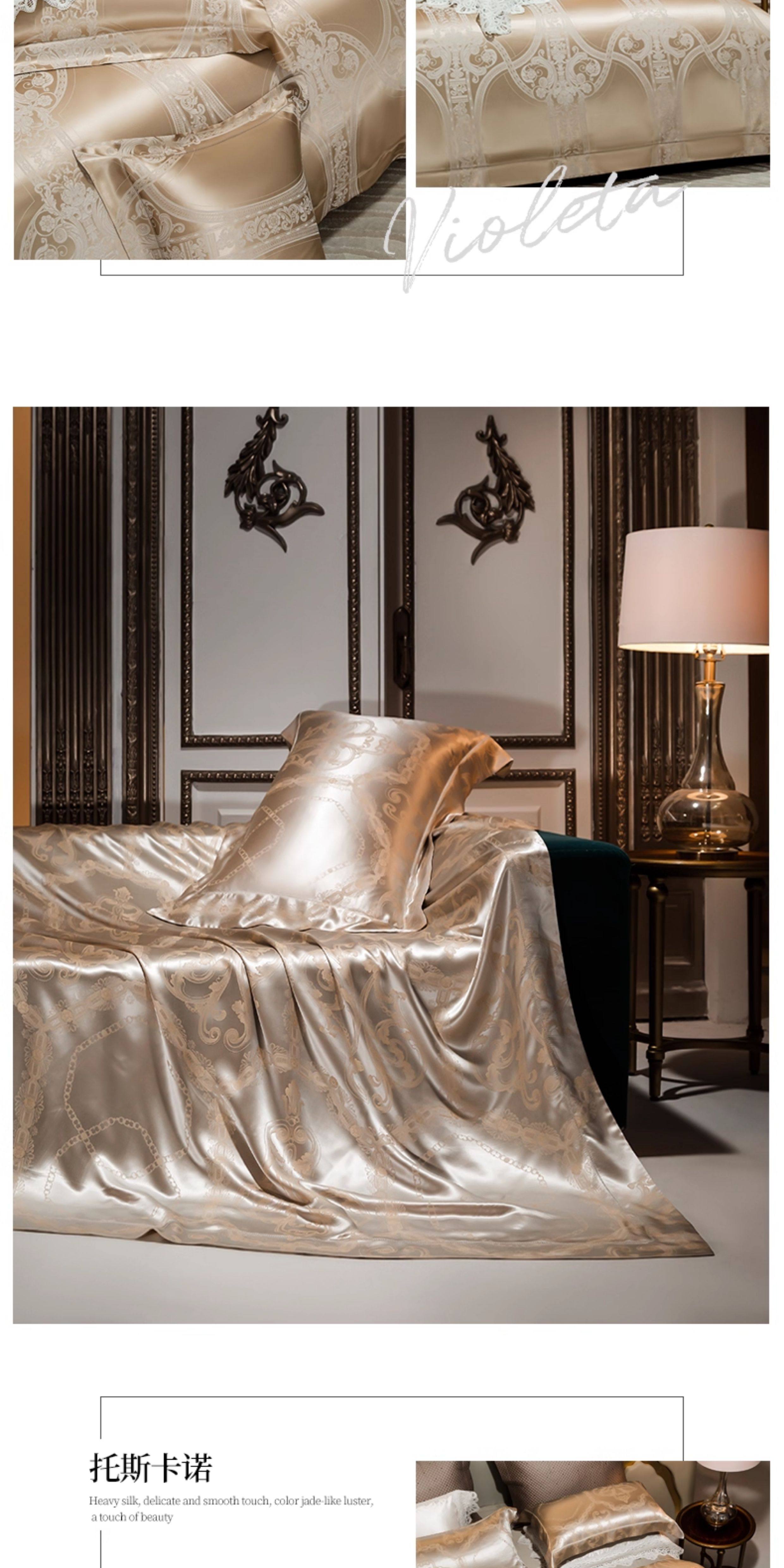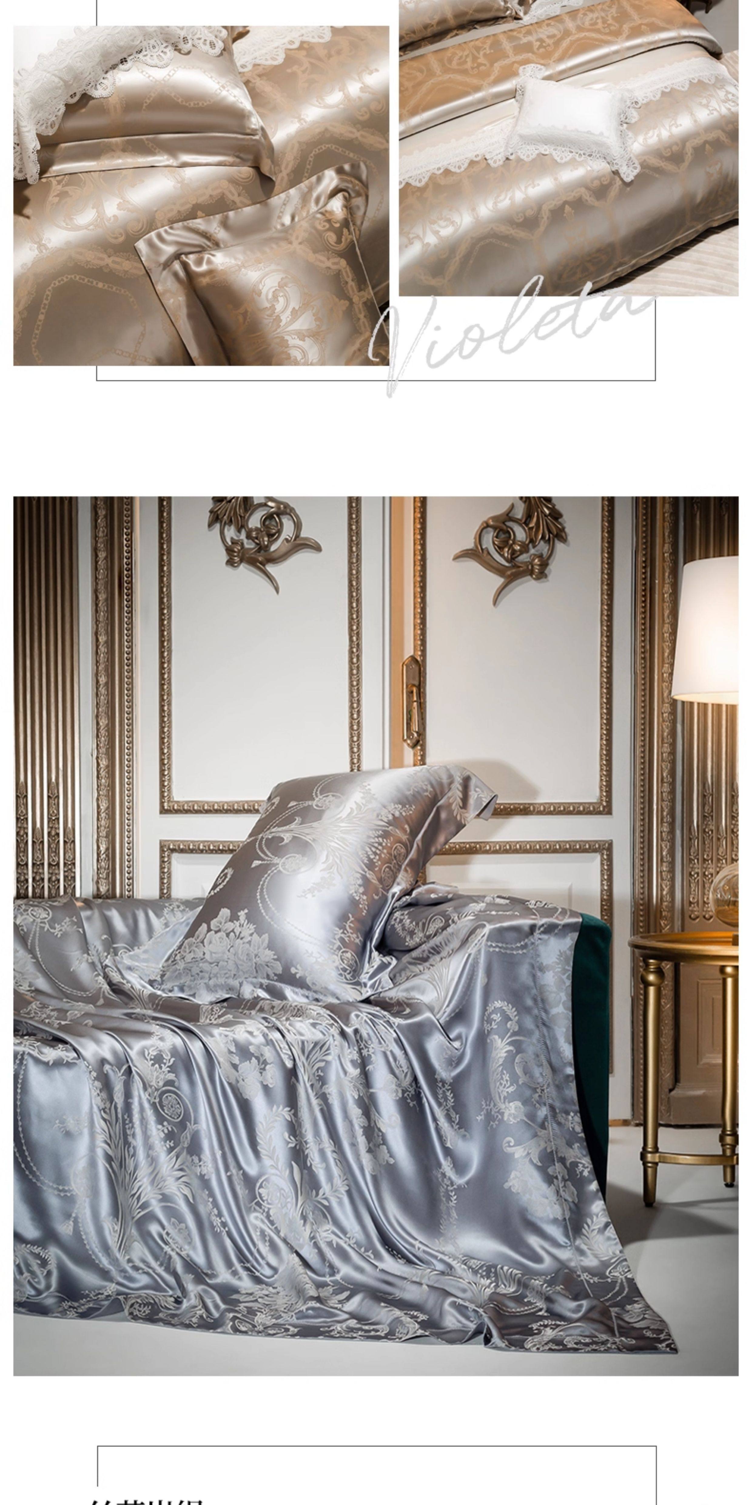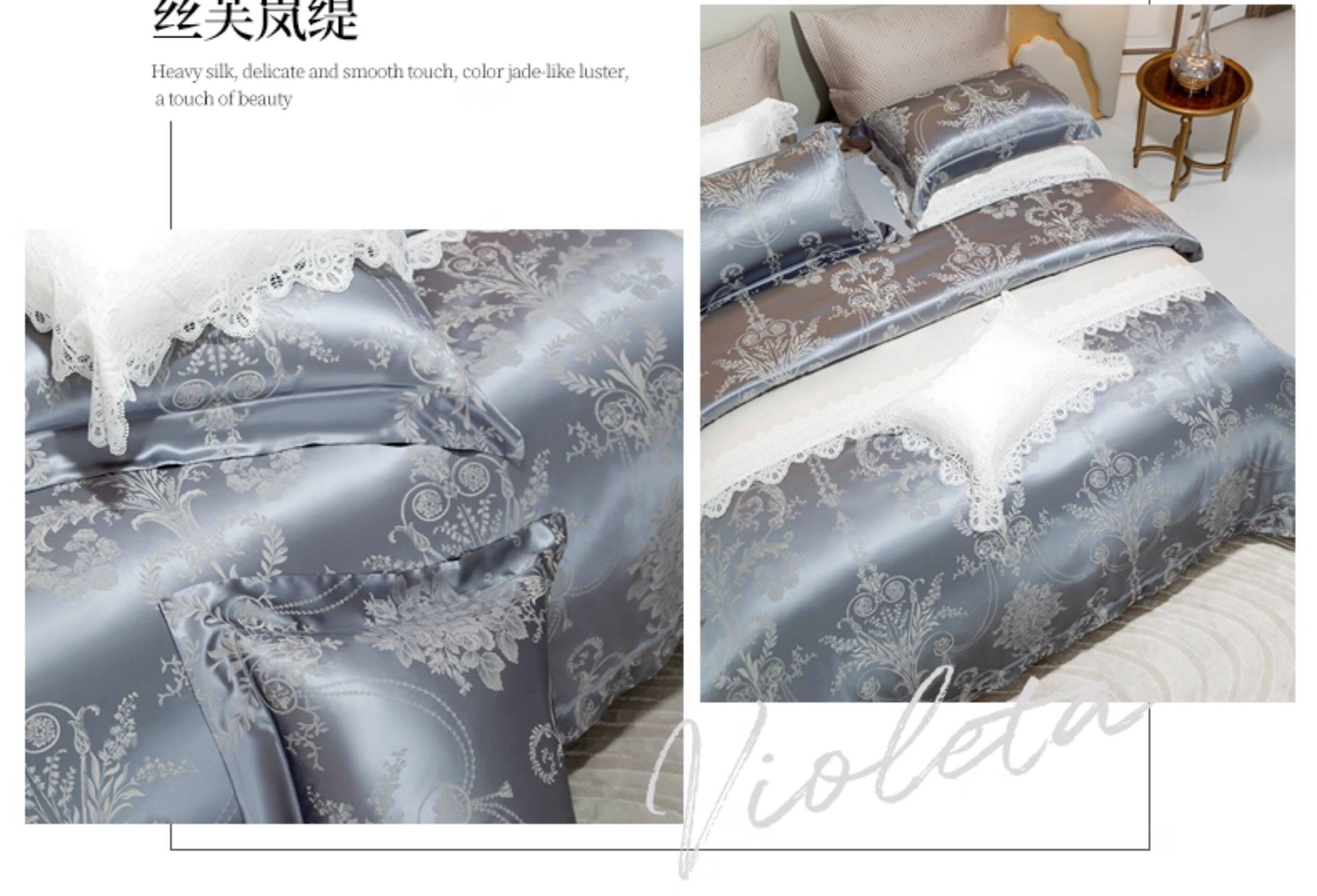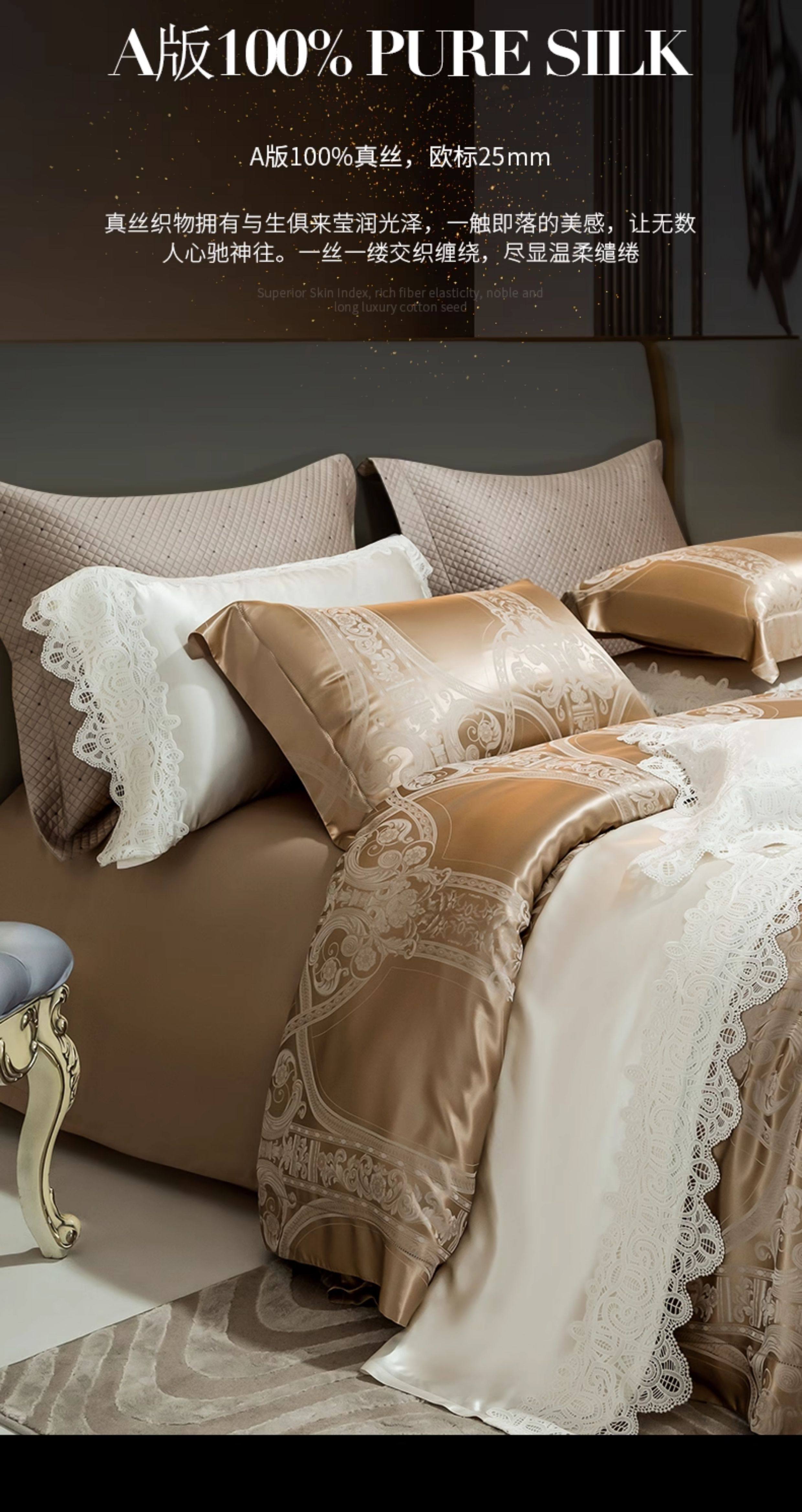 Шелковый комплект, шелковая простыня, пододеяльник, элитное летнее покрывало, 4 предмета, легкий роскошный стиль