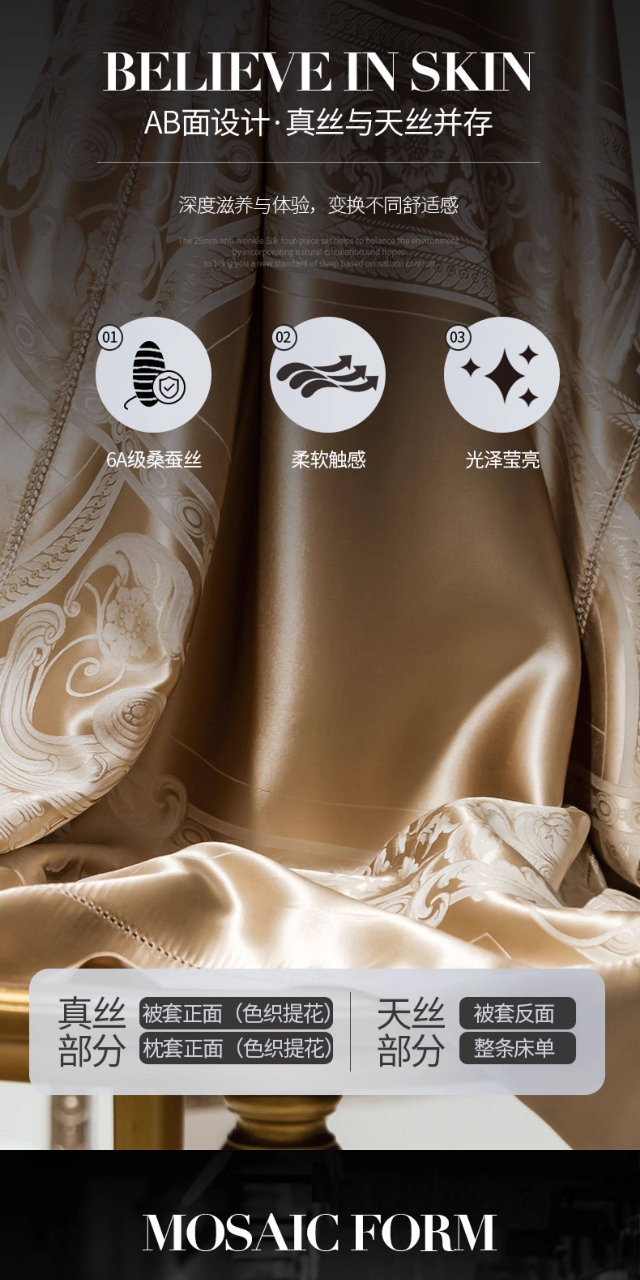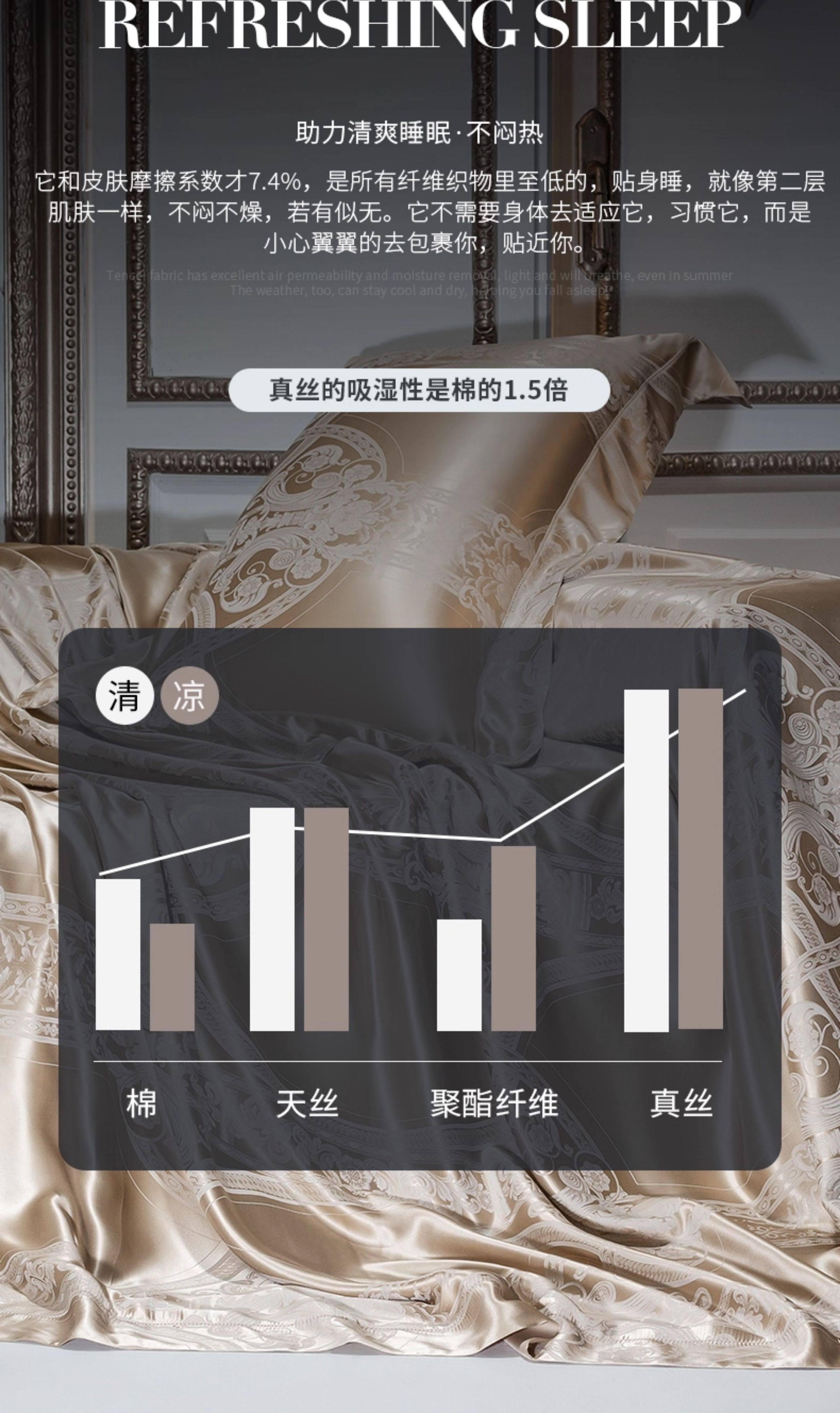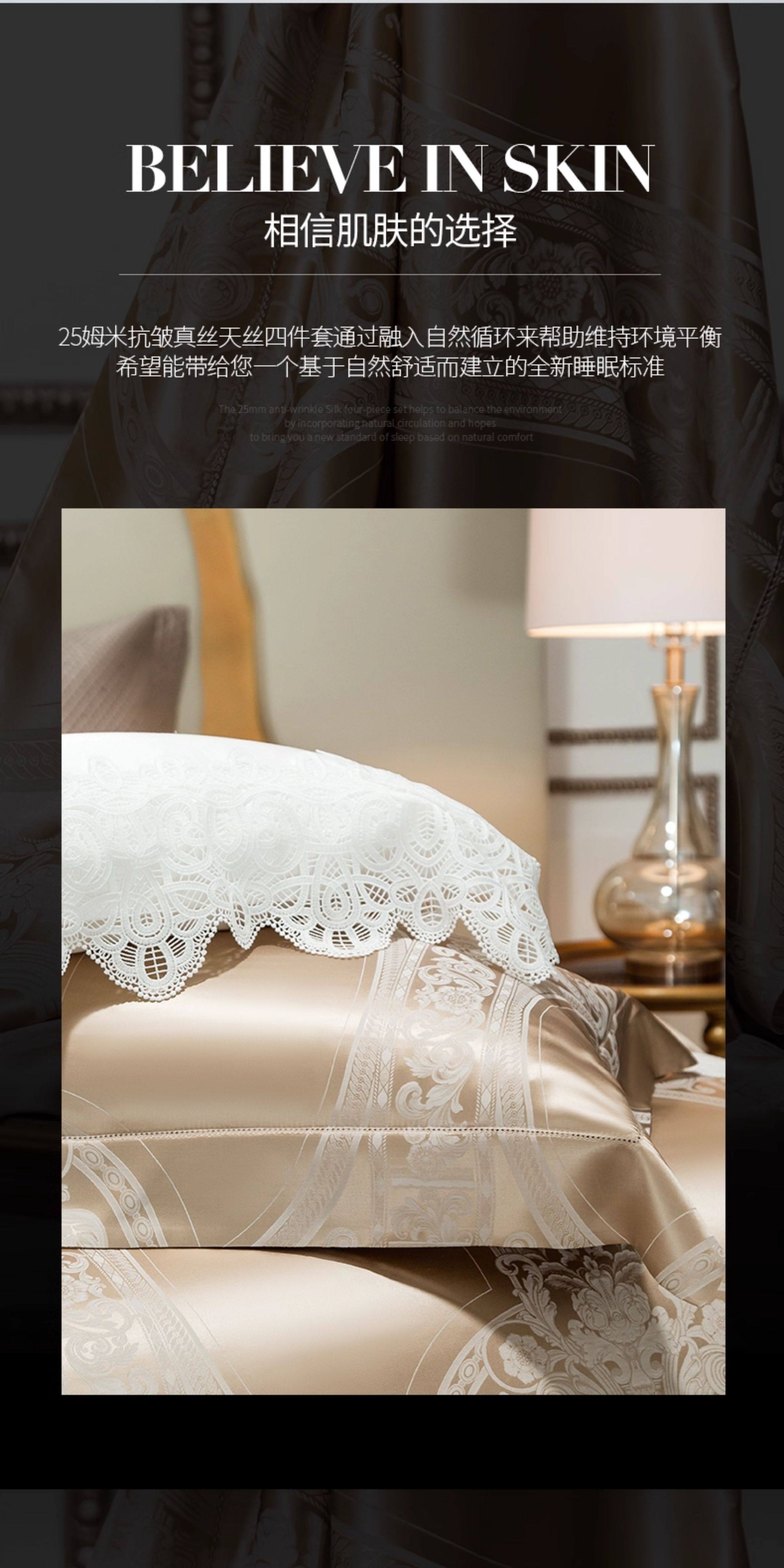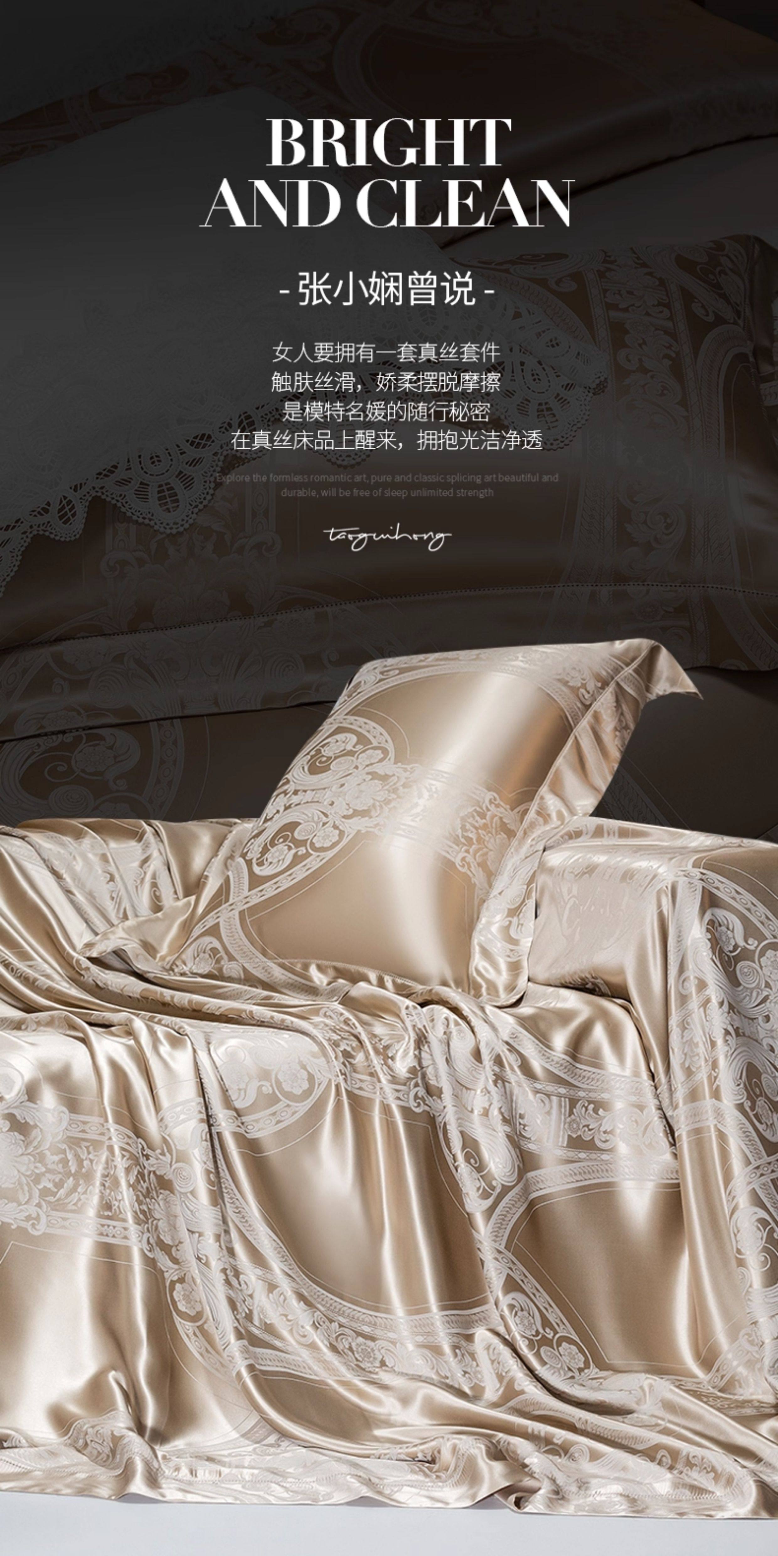 Шелковый комплект, шелковая простыня, пододеяльник, элитное летнее покрывало, 4 предмета, легкий роскошный стиль