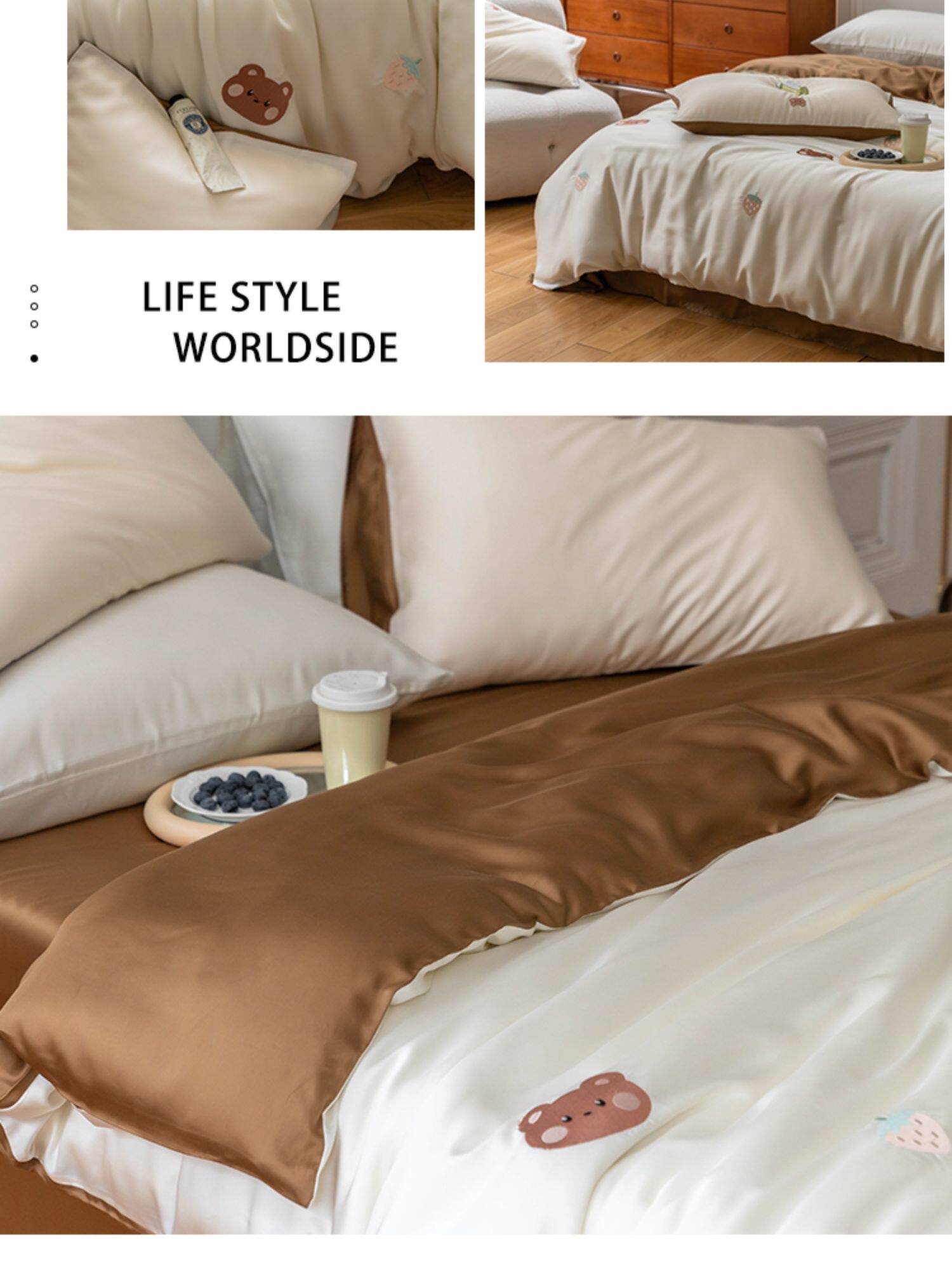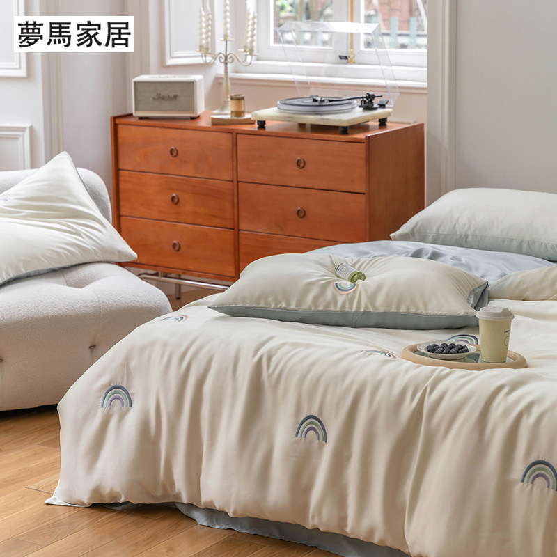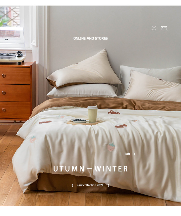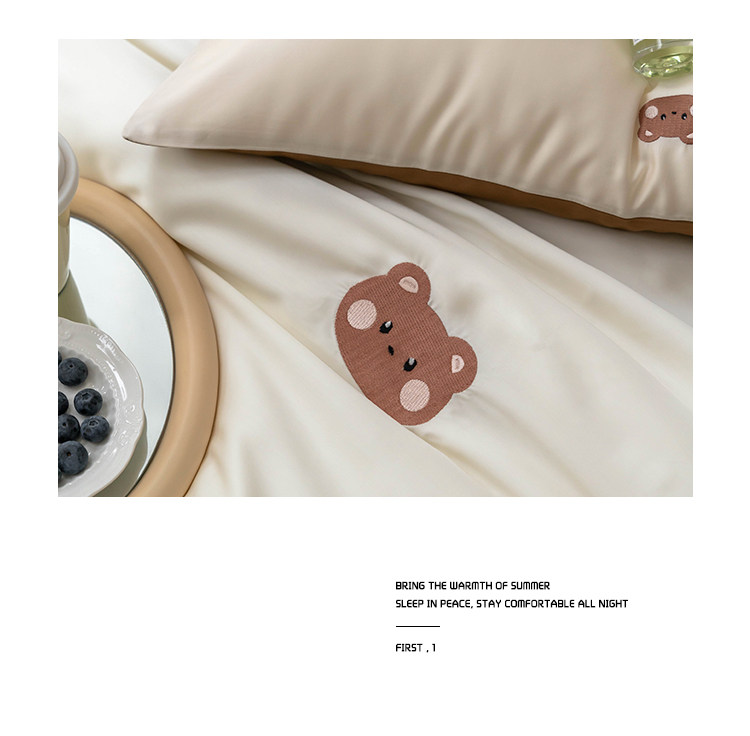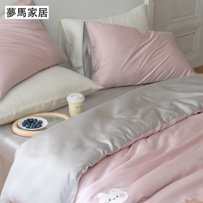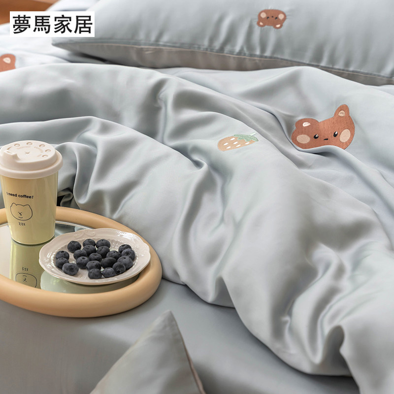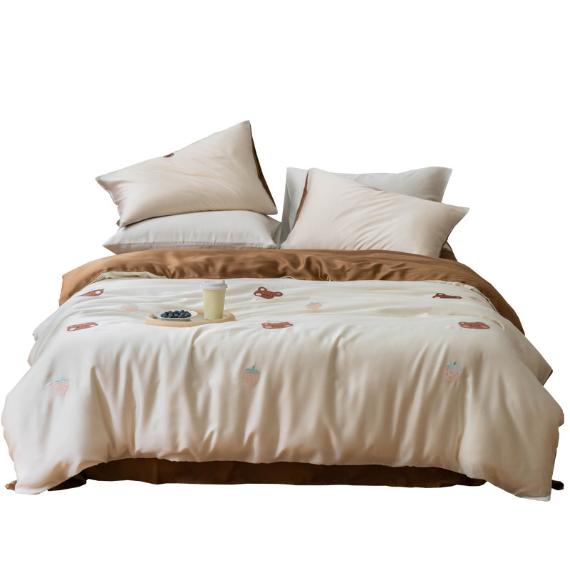 Брендовый мультяшный свежий комплект, шелковистый пододеяльник, простыня, с вышивкой, 4 предмета, постельные принадлежности