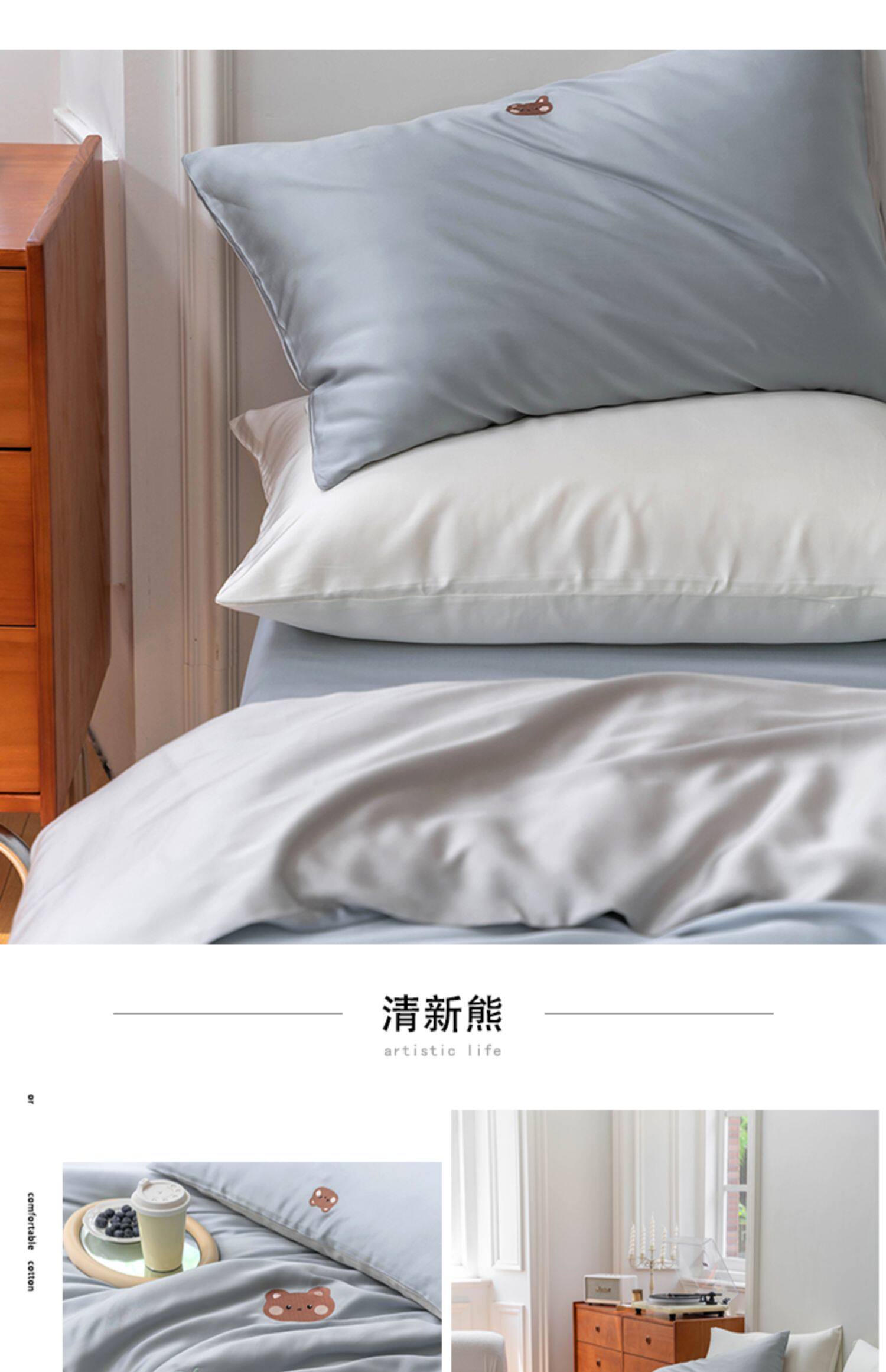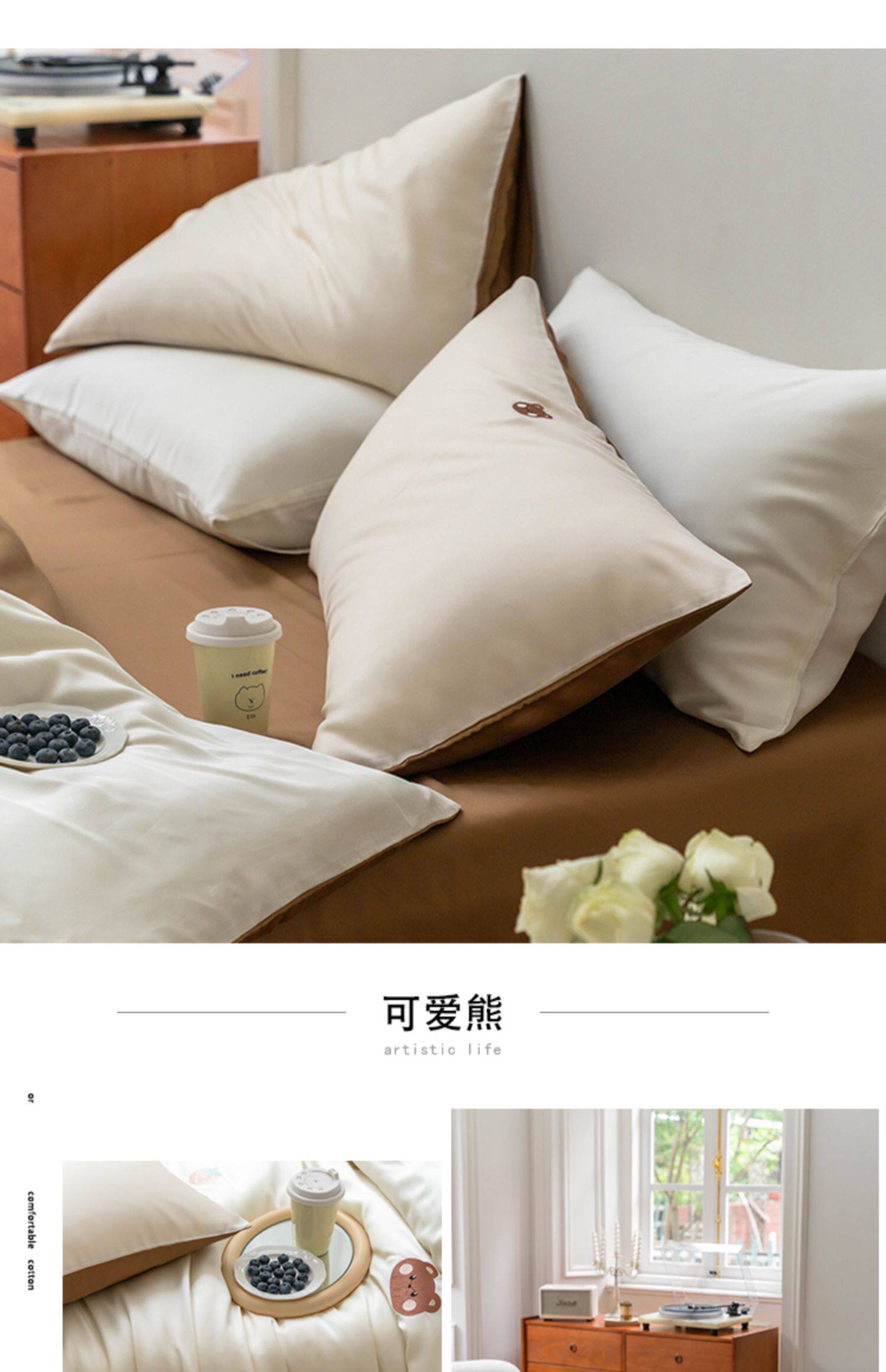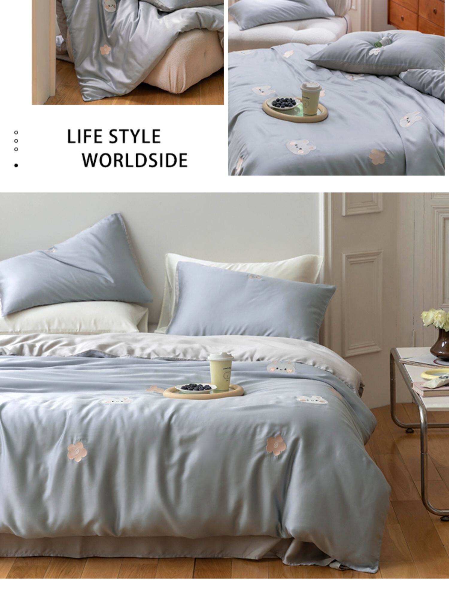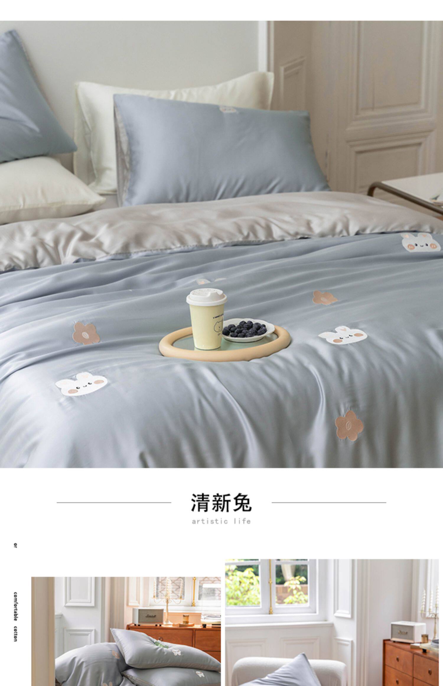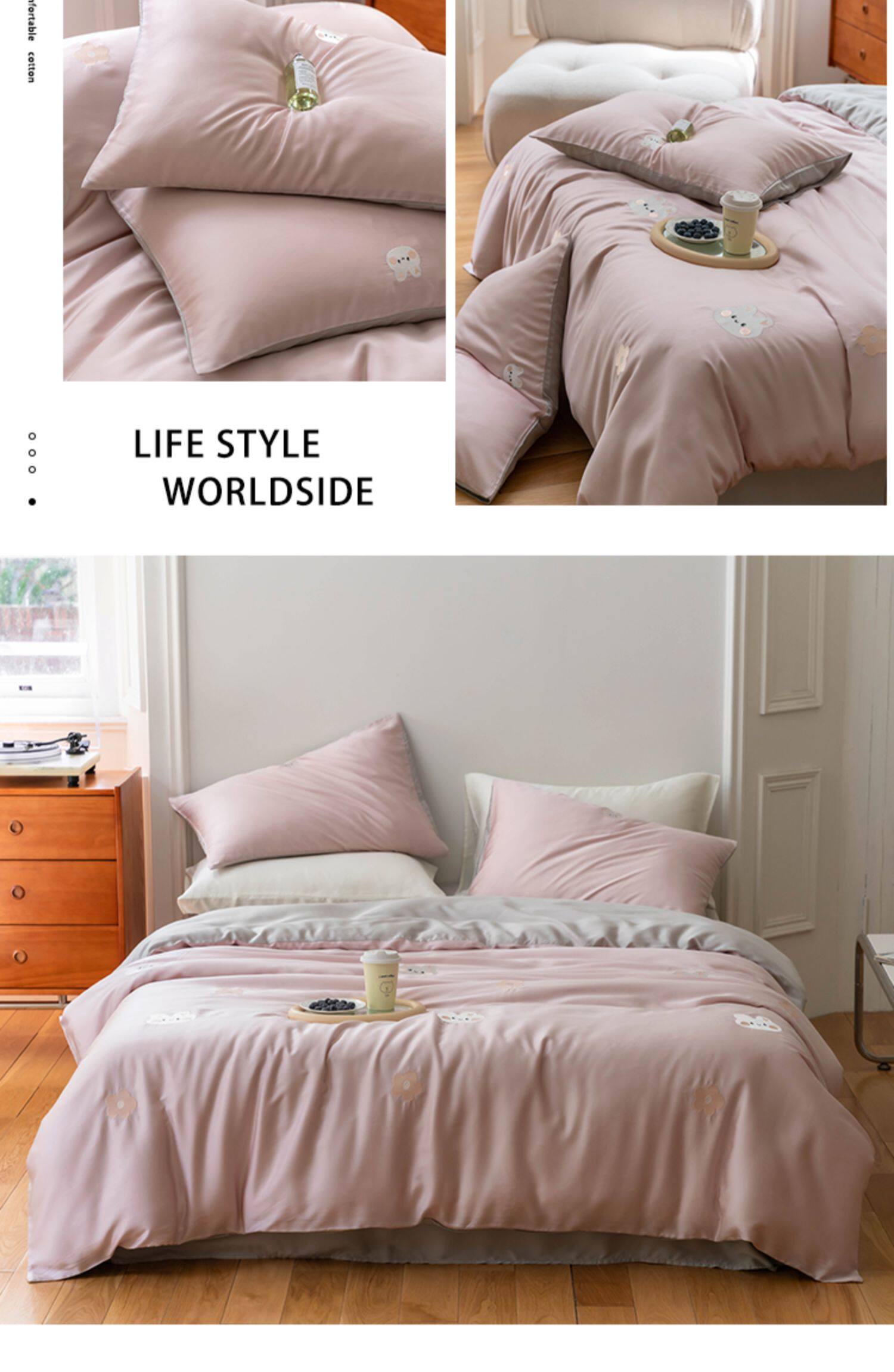 Брендовый мультяшный свежий комплект, шелковистый пододеяльник, простыня, с вышивкой, 4 предмета, постельные принадлежности