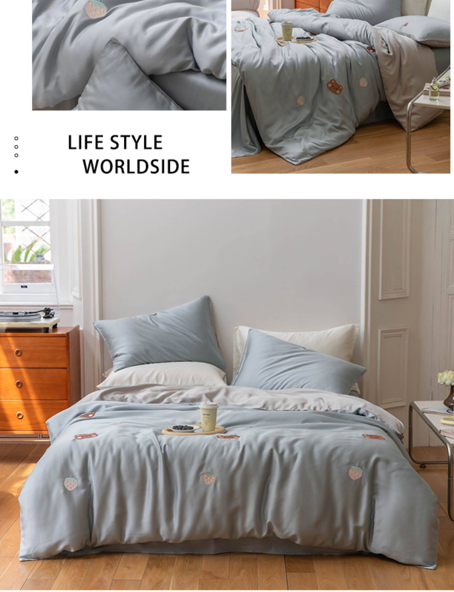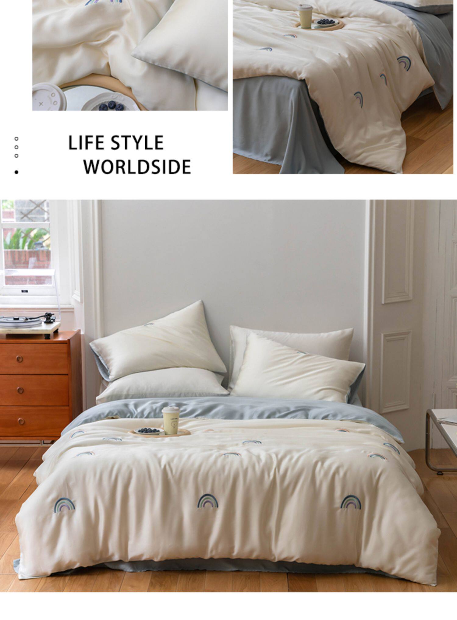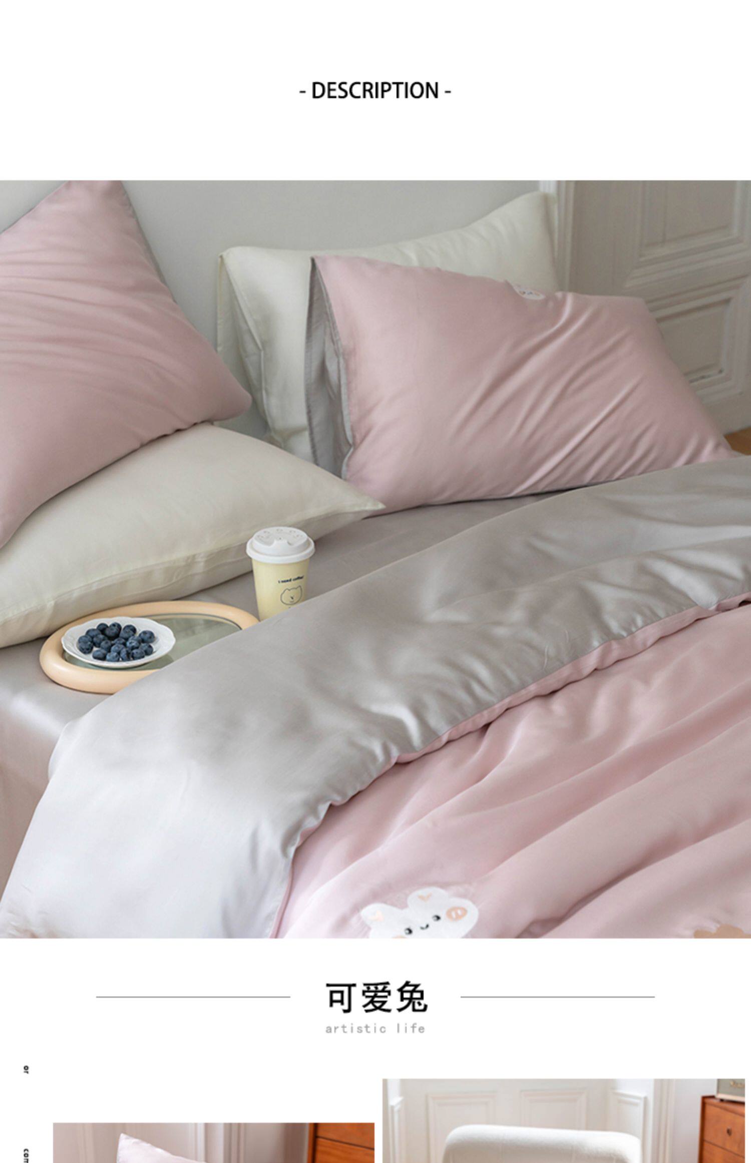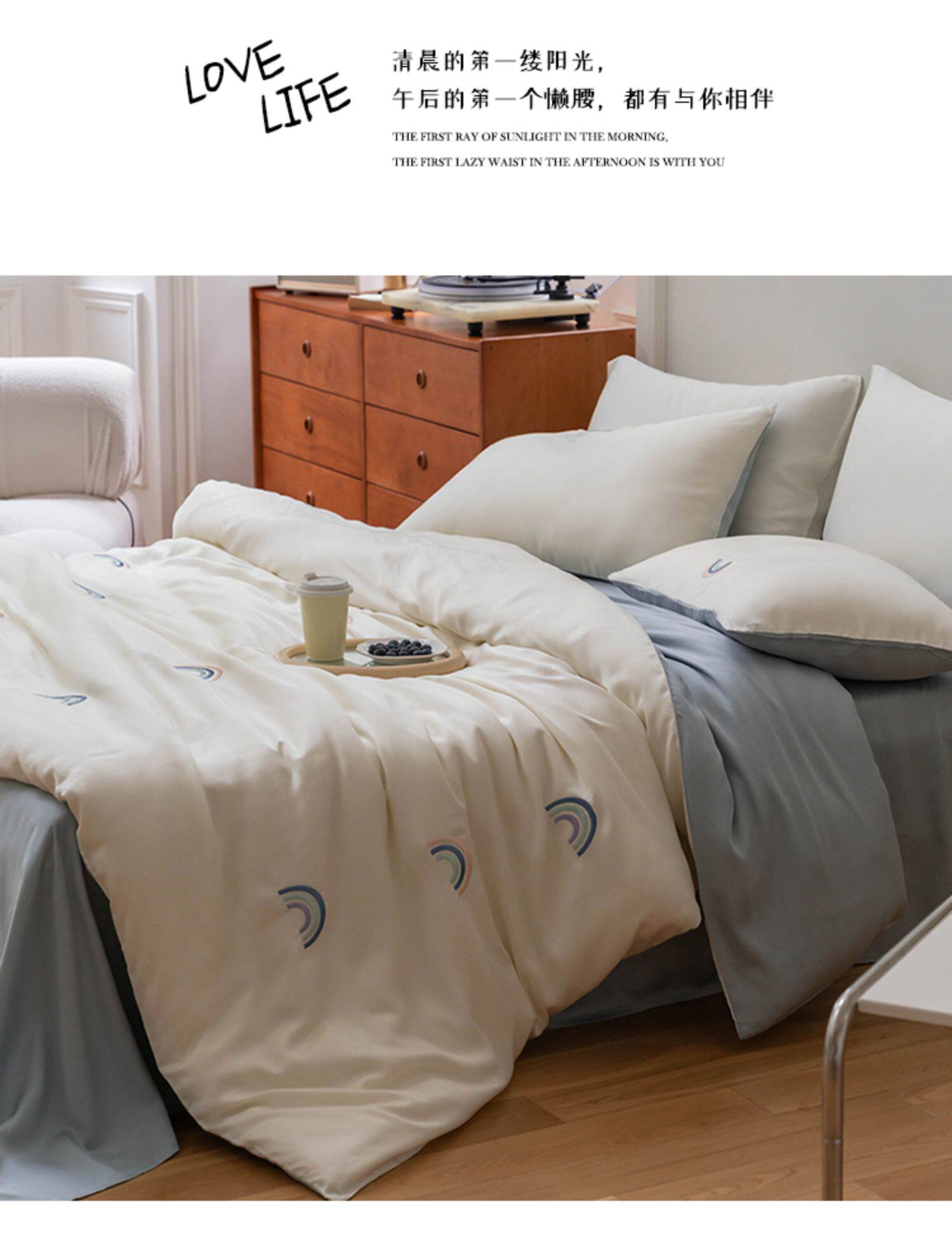 Брендовый мультяшный свежий комплект, шелковистый пододеяльник, простыня, с вышивкой, 4 предмета, постельные принадлежности