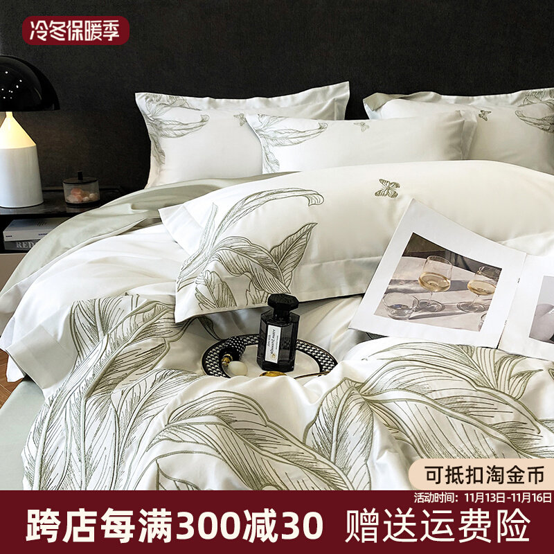 Комплект, хлопковая простыня, пододеяльник, хлопковое покрывало, изысканный стиль, легкий роскошный стиль, 4 предмета, 120 шт, с вышивкой