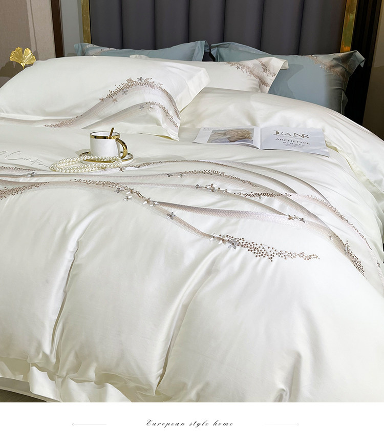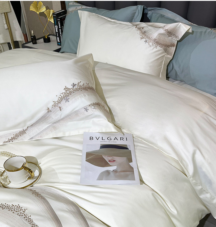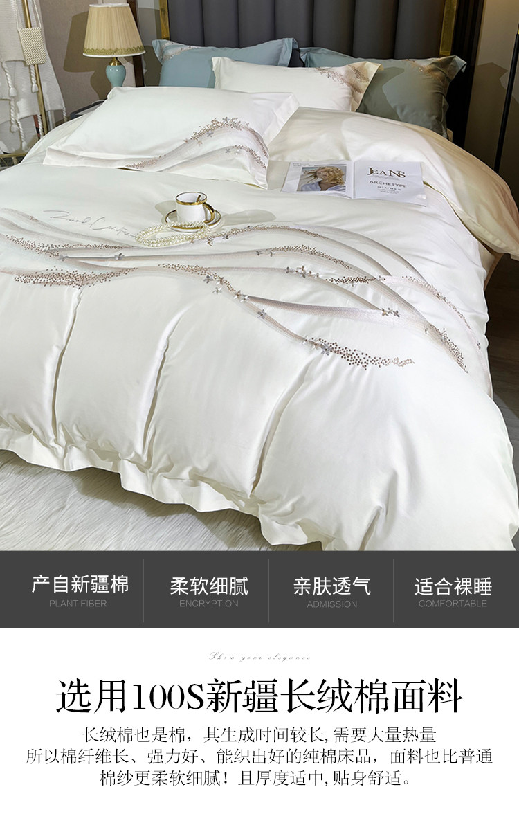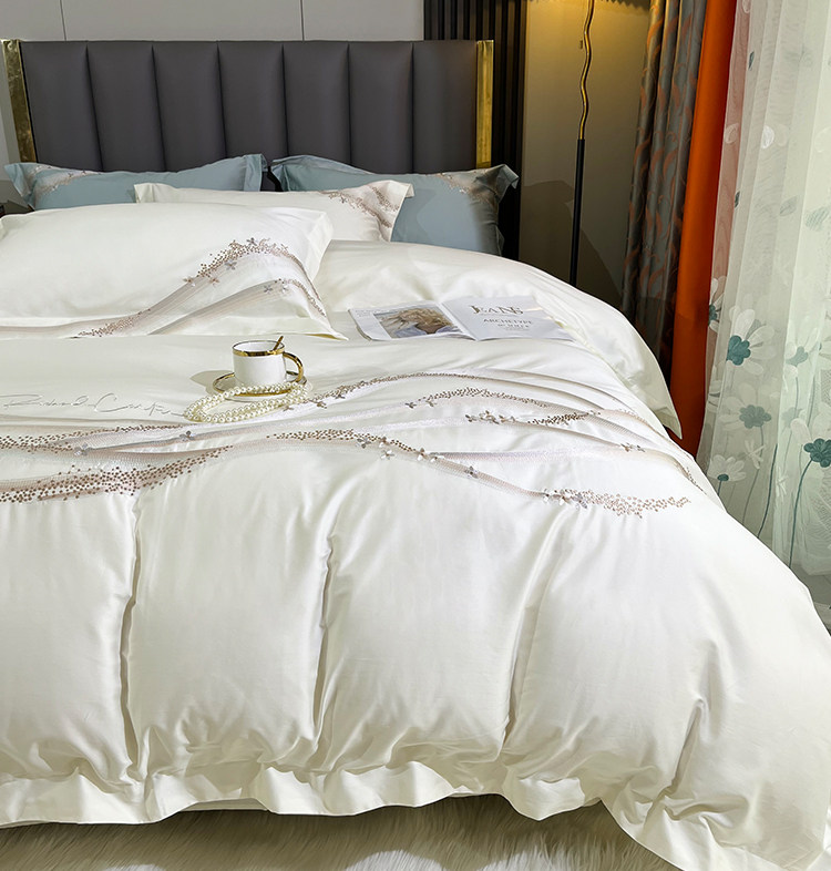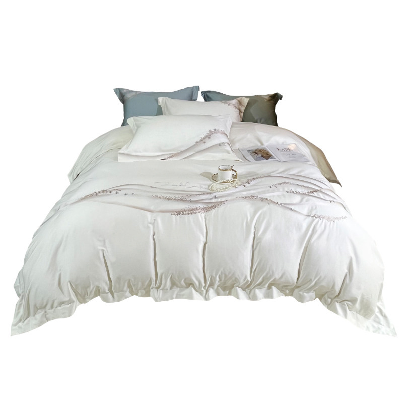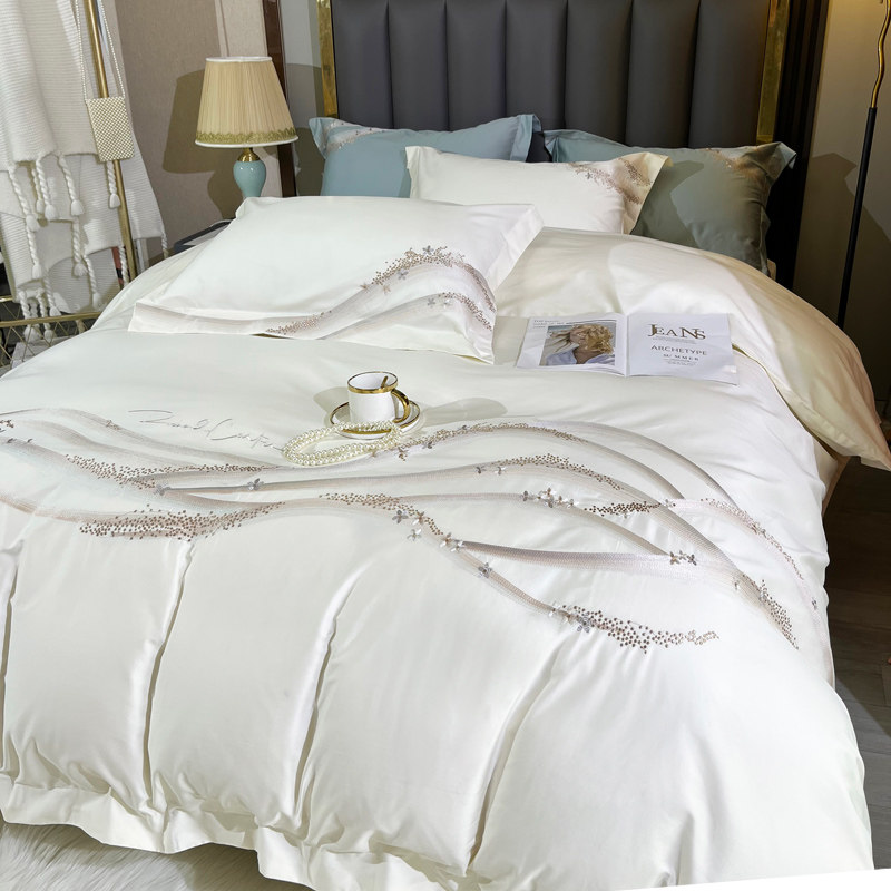 Хлопковый комплект, хлопковая простыня, пододеяльник, 100 шт, 4 предмета, простой и элегантный дизайн, легкий роскошный стиль, с вышивкой, изысканный стиль
