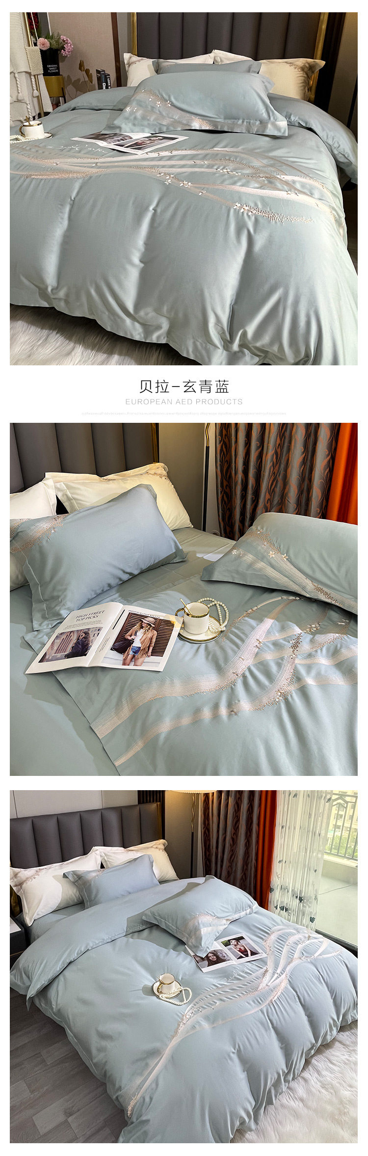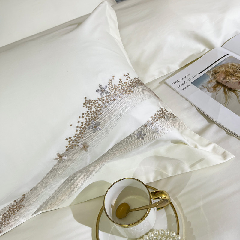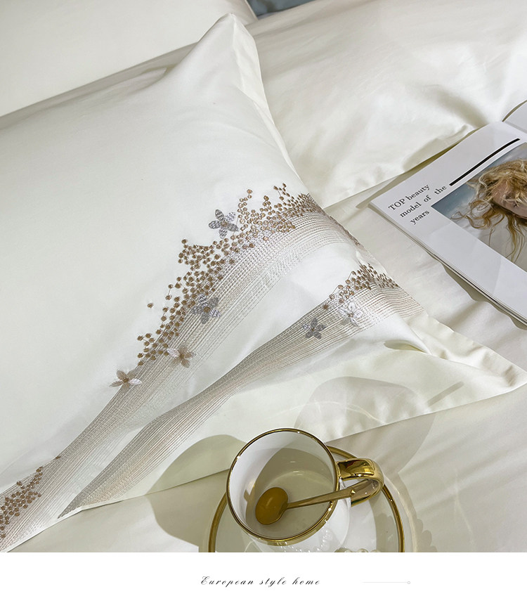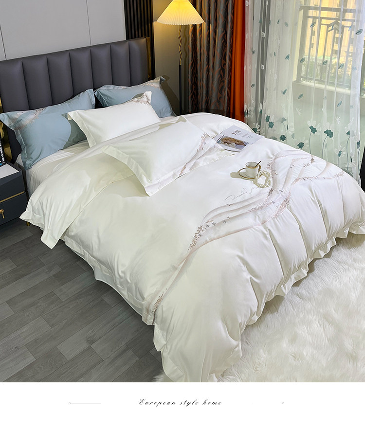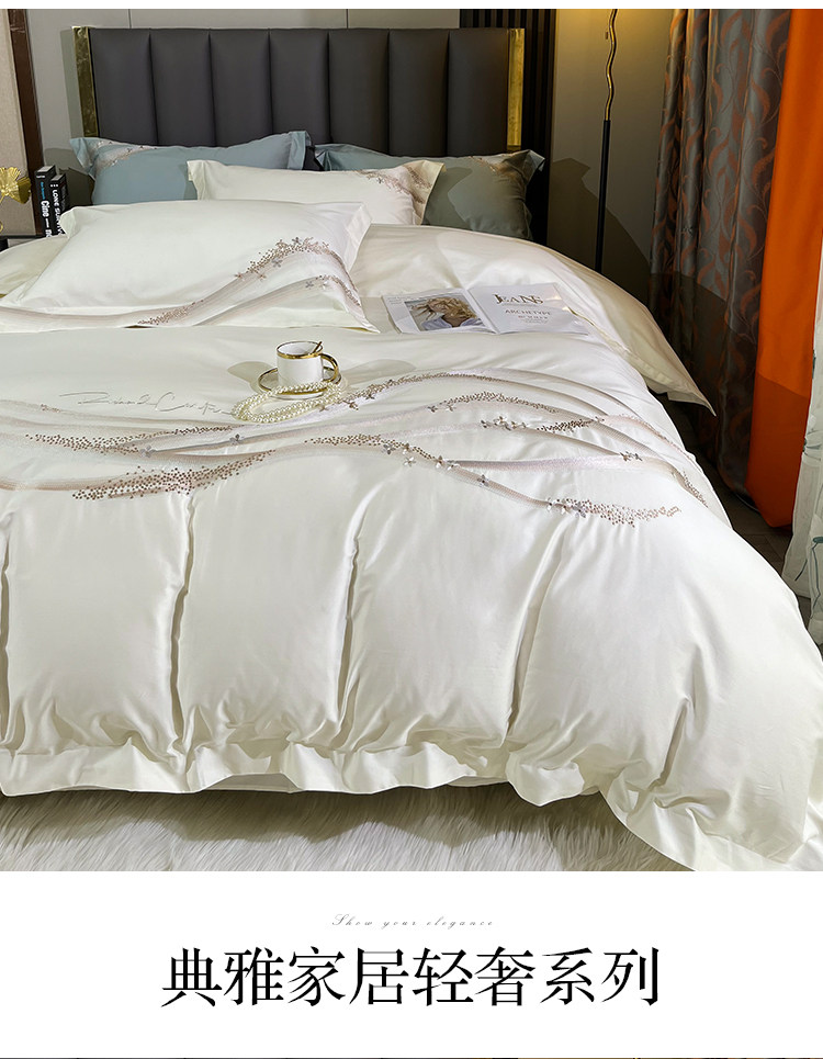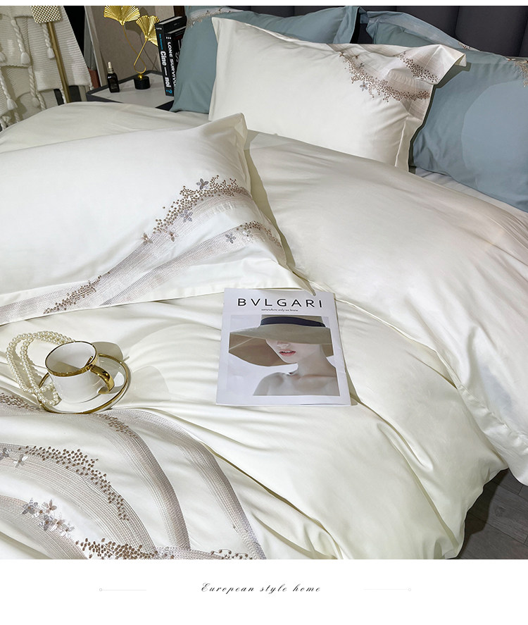 Хлопковый комплект, хлопковая простыня, пододеяльник, 100 шт, 4 предмета, простой и элегантный дизайн, легкий роскошный стиль, с вышивкой, изысканный стиль
